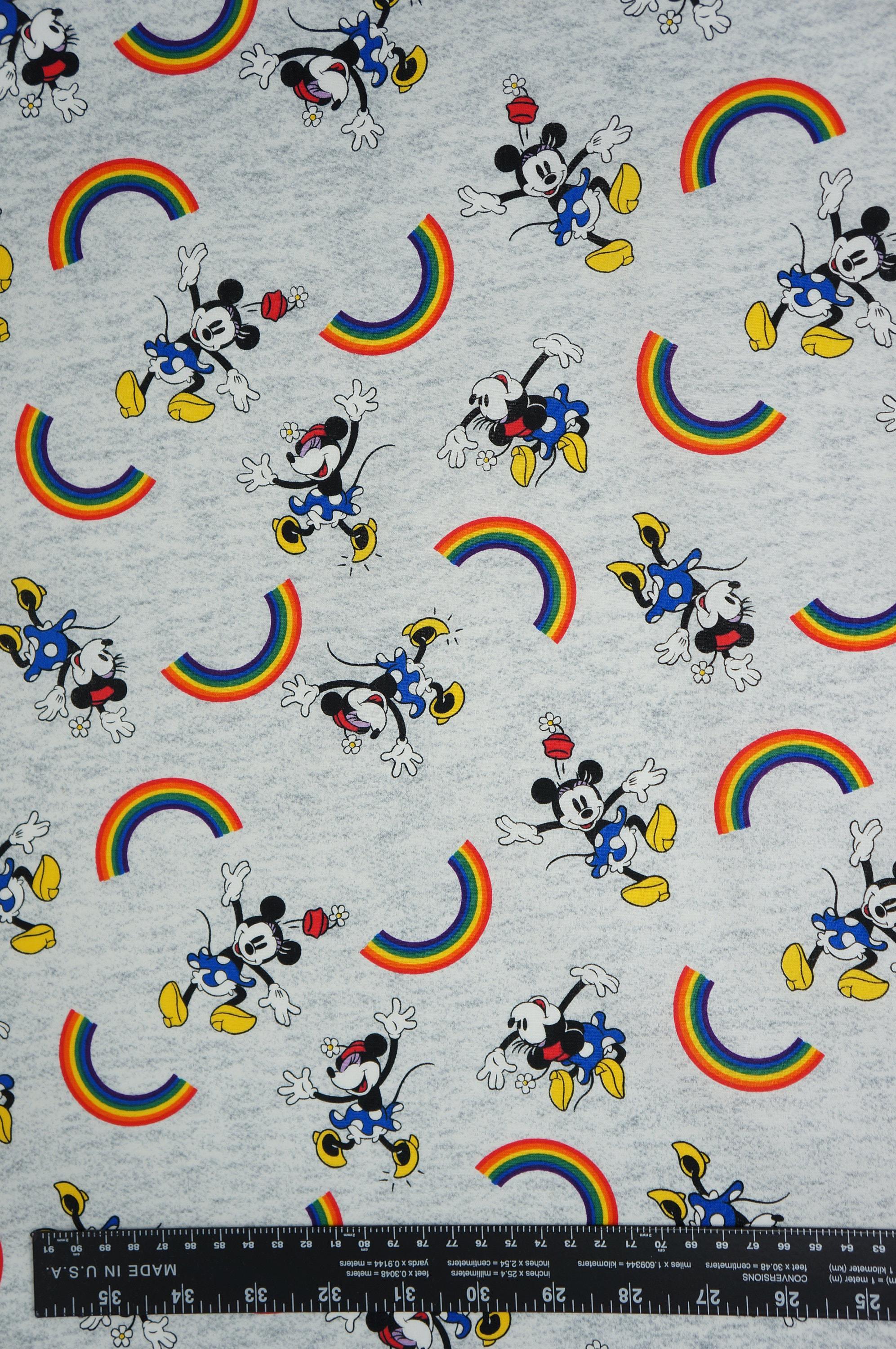 If you love Disney and Rainbows, you'll adore this Disney Pride Minnie and Rainbows Disney Licensed Cotton Fabric! This fabric features a colorful pattern of Minnie Mouse characters and rainbows on a gray background. It's perfect for making quilts, pillows, bags, and more. Show off your Disney and Pride spirit with this fun and fabulous fabric!