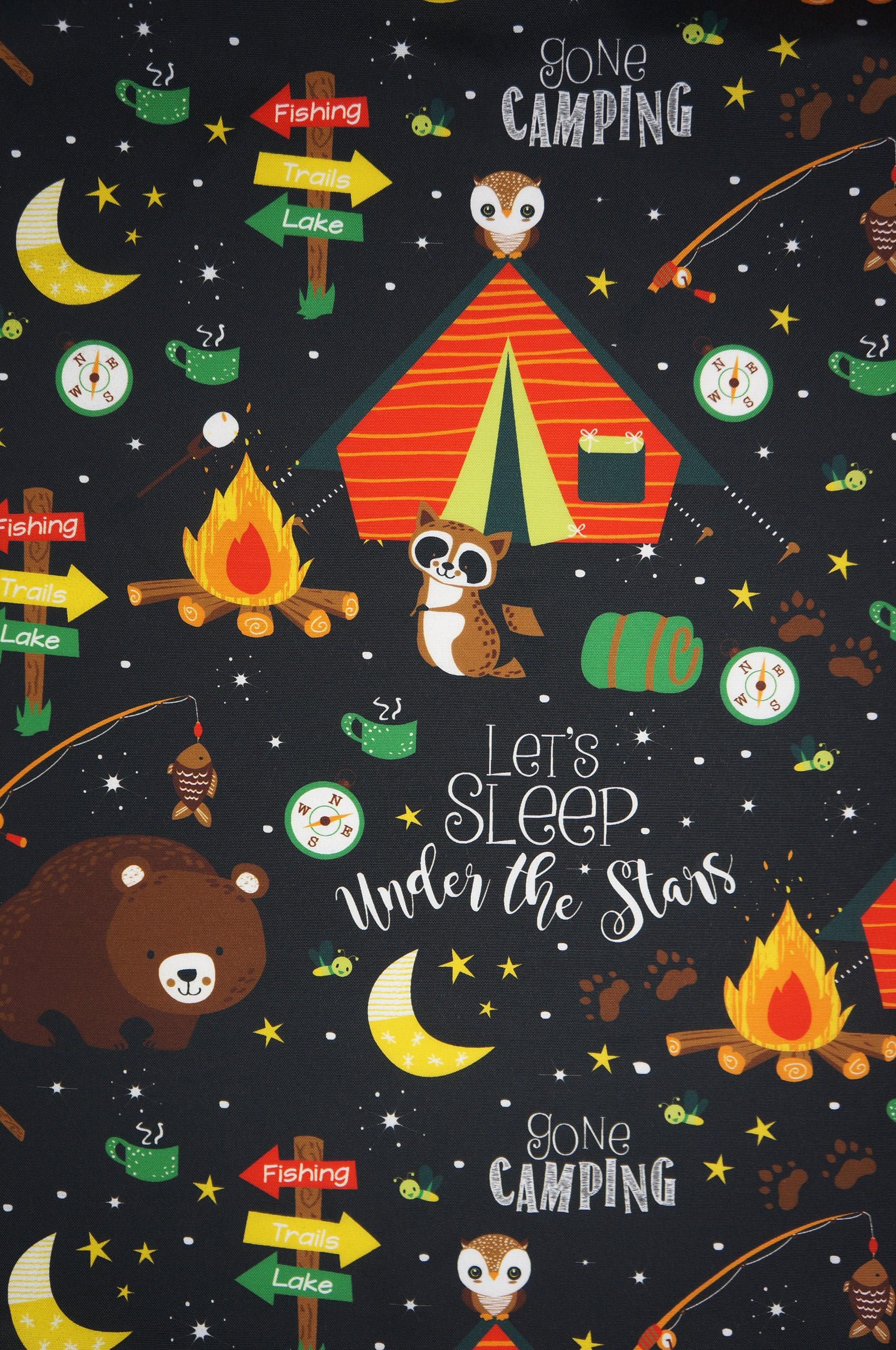 Gone Camping Bear and Racoon Outdoor Canvas Fabric 100% Polyester, Great for making Outdoor Pillows/Decor, Carrying Bags or Backpacks