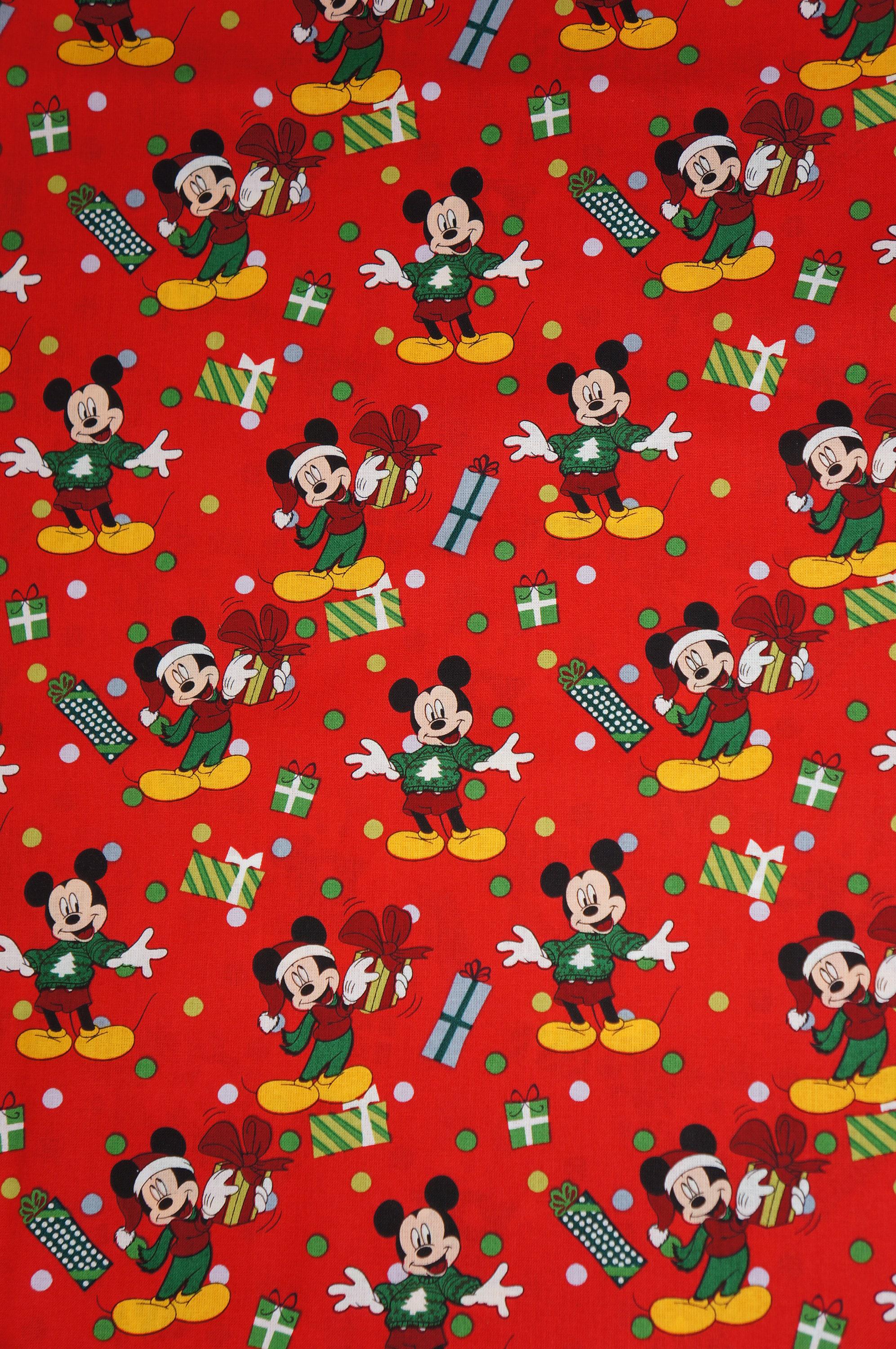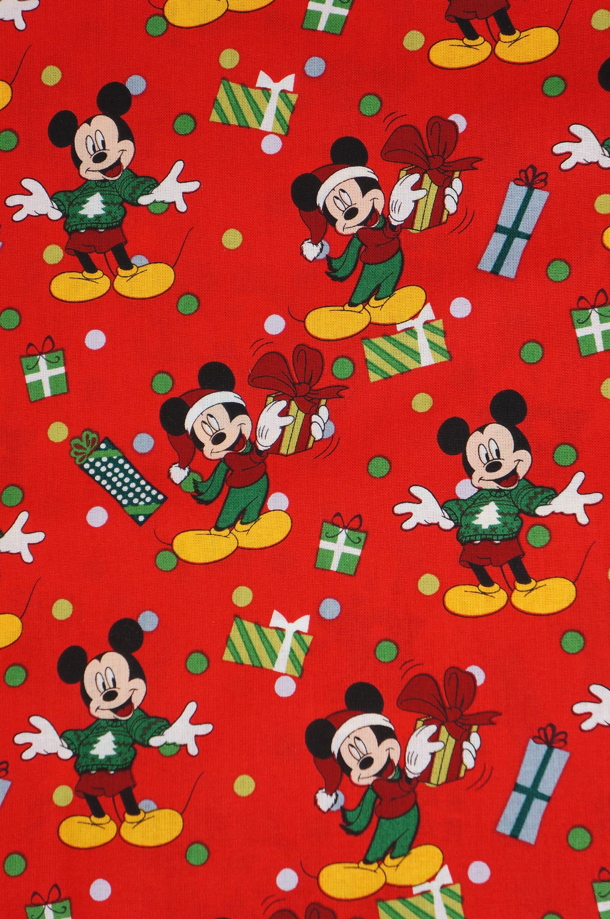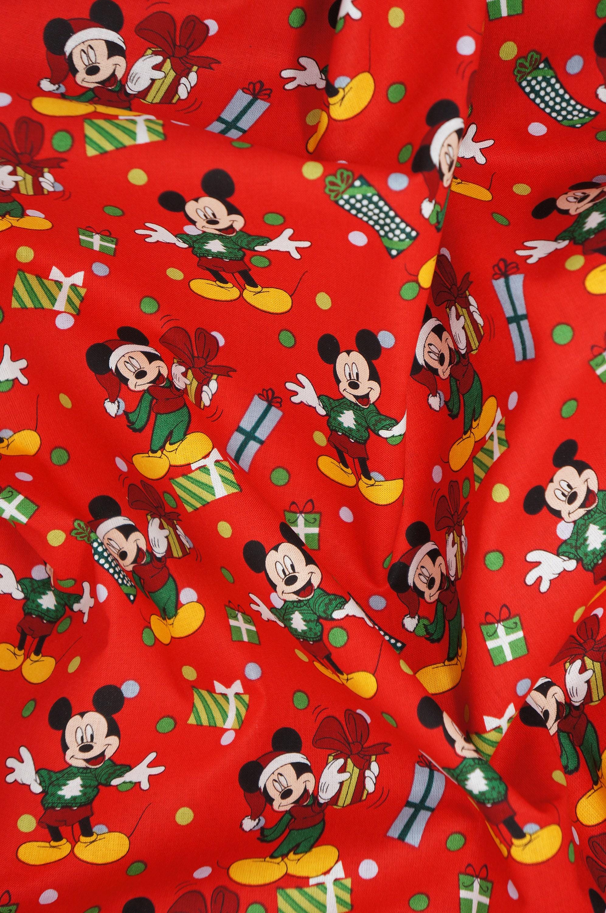 If you love Mickey Mouse and Christmas, you will adore this festive fabric! It features Mickey Mouse wearing an ugly Christmas sweater and holding presents on a red background. This fabric is 100% cotton and licensed by Disney and Springs Creative. It is perfect for making quilts, pillows, bags, masks, and more. Celebrate the holiday season with this fun and colorful novelty fabric!