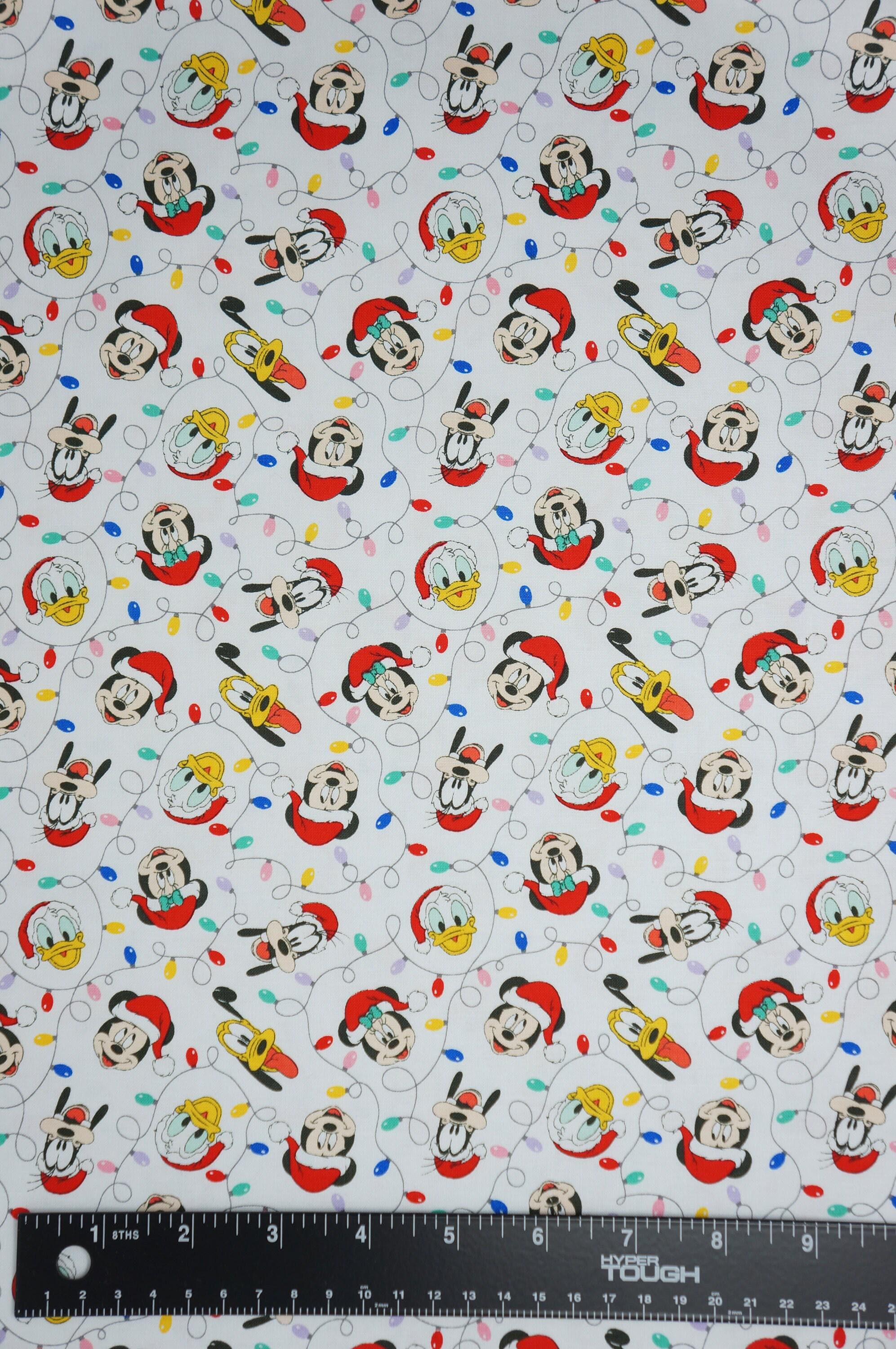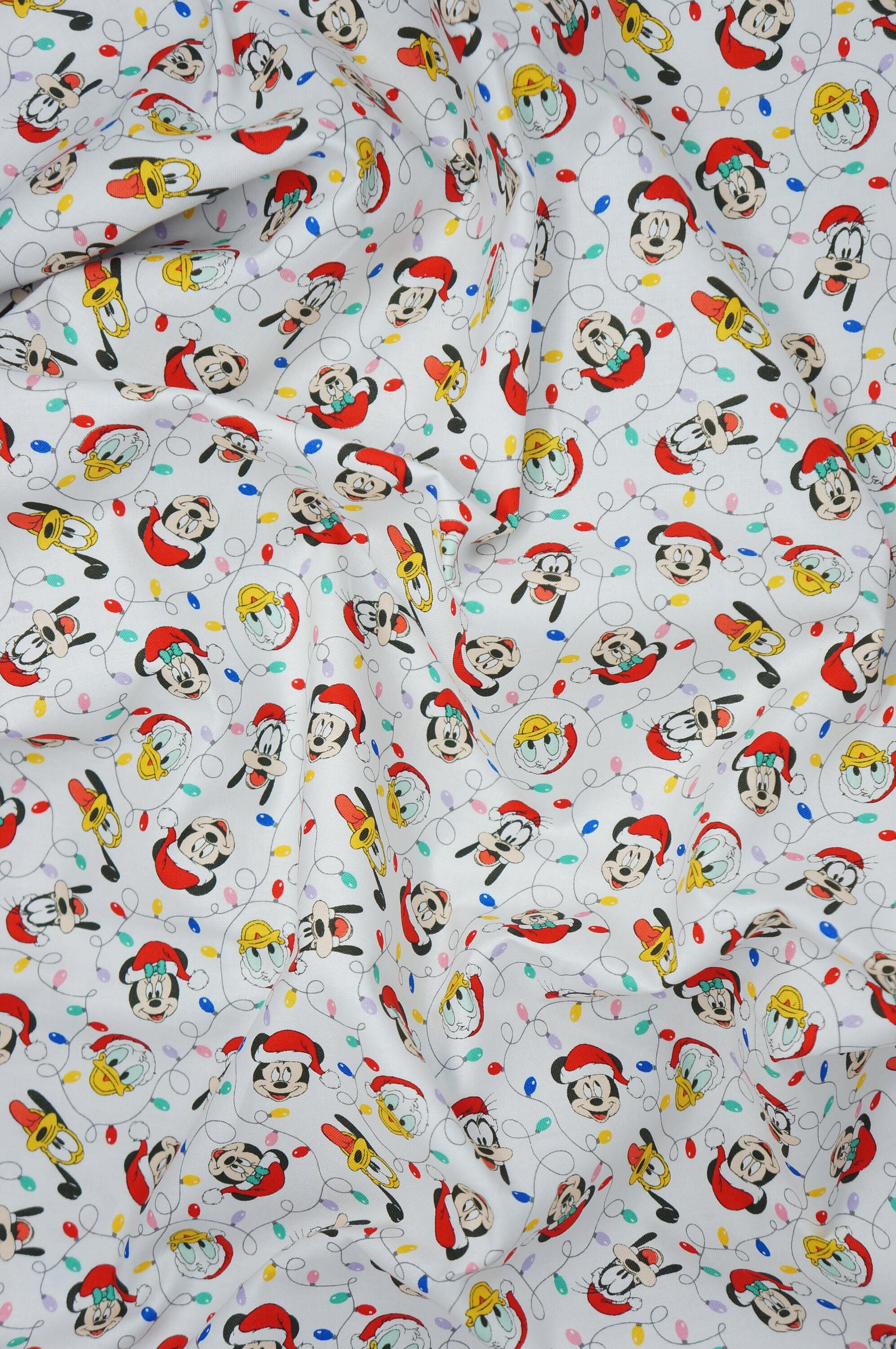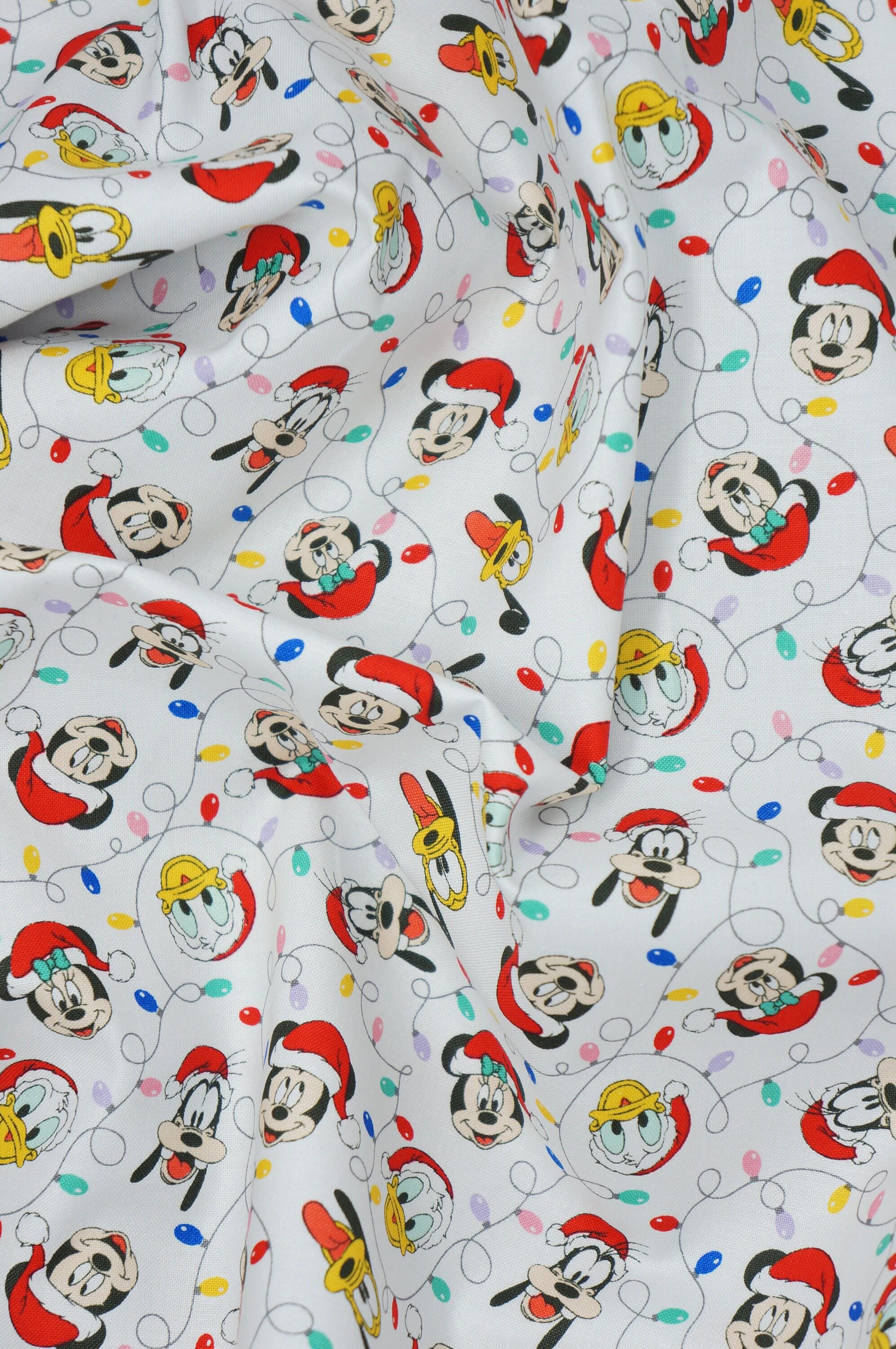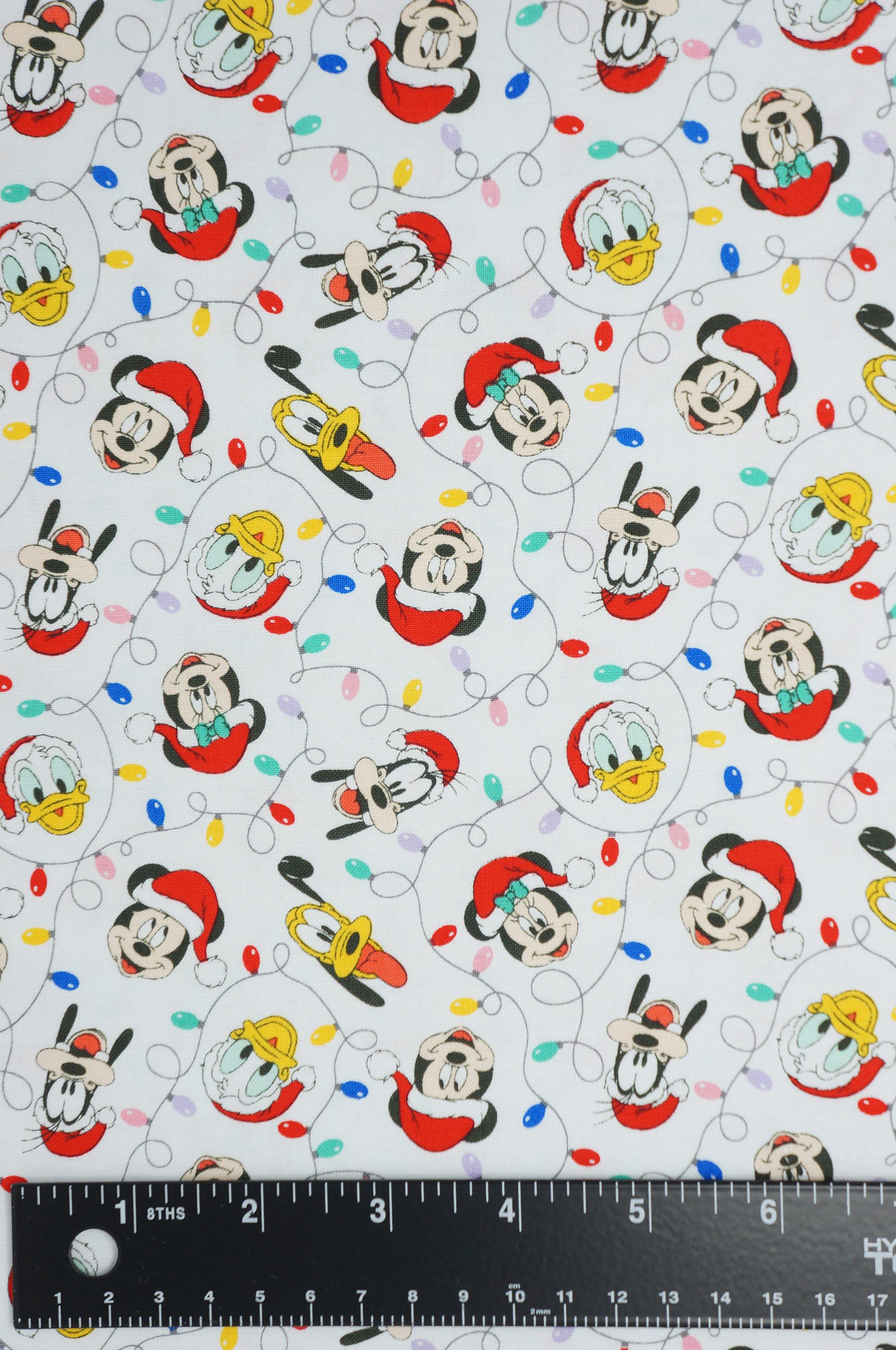 If you love Disney and Christmas, you will adore this fabric! Mickey Mouse Festive Lights is a quilting cotton fabric that features Mickey and his friends decorating a Christmas tree with colorful lights. This fabric is licensed by Camelot Fabrics and has a small print that is perfect for making quilts, pillows, bags, and more. You can use this fabric to create festive gifts for your family and friends, or to add some Disney magic to your own home. Mickey Mouse Festive Lights is a must-have for any Disney fan!