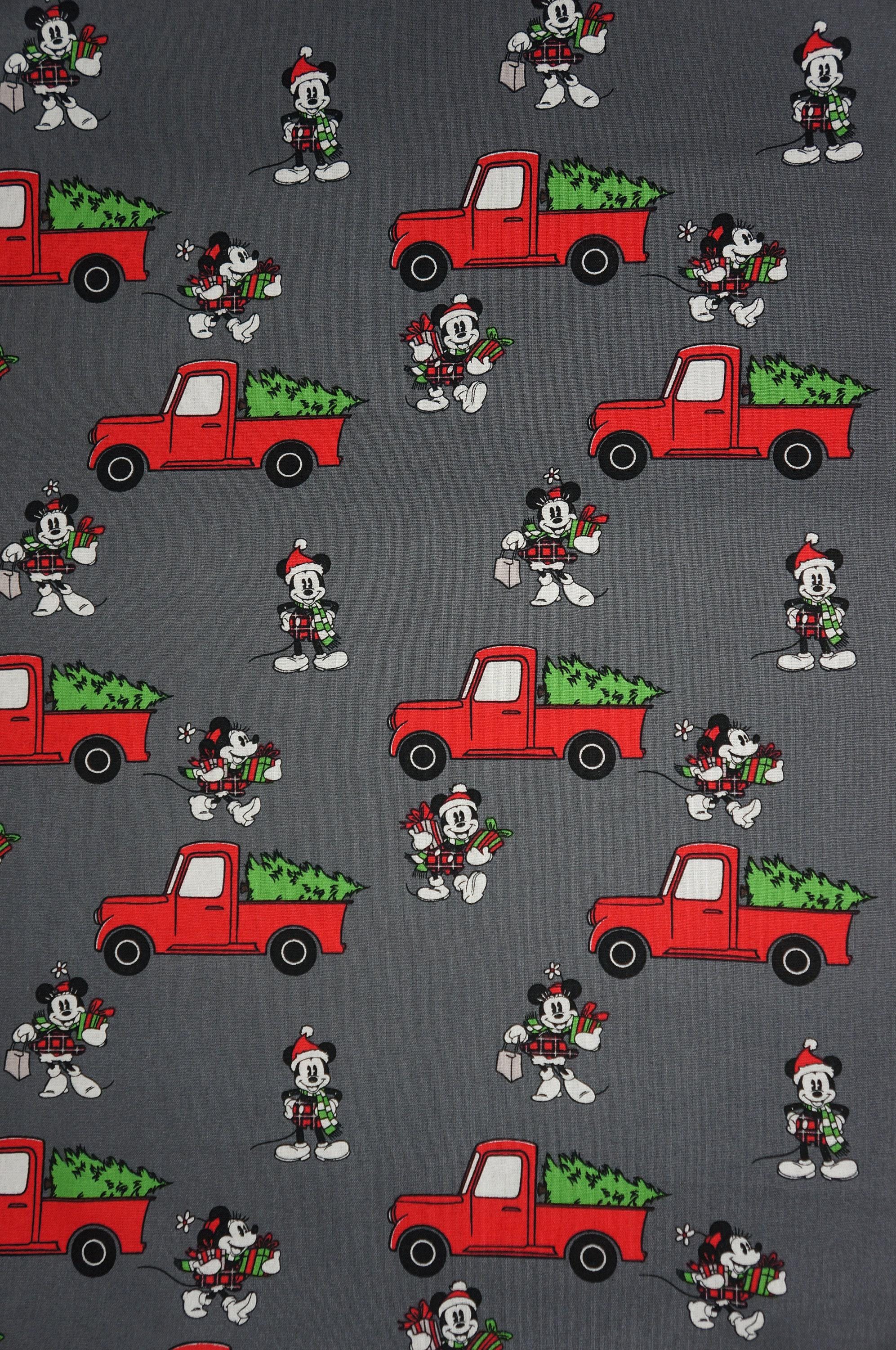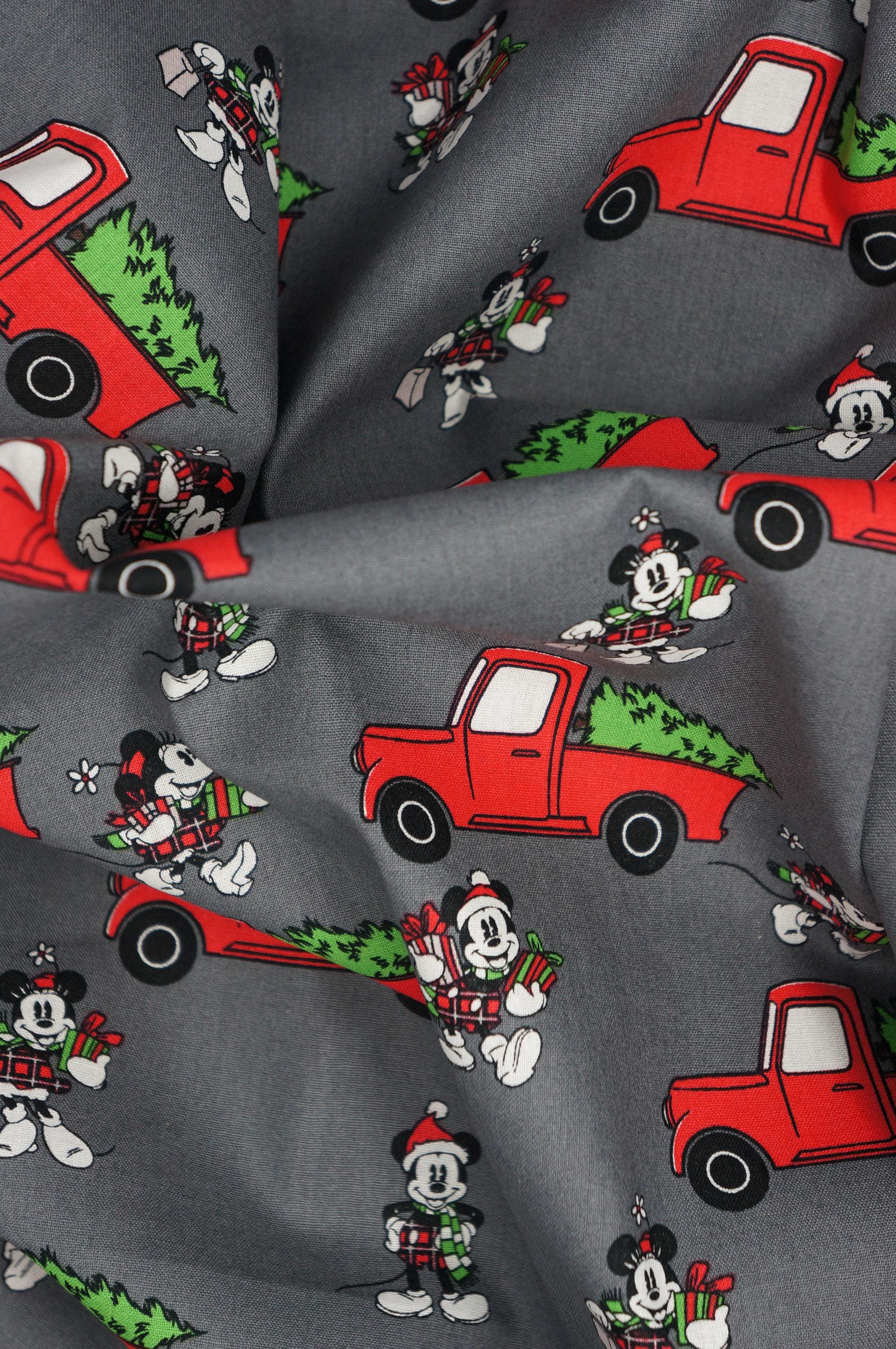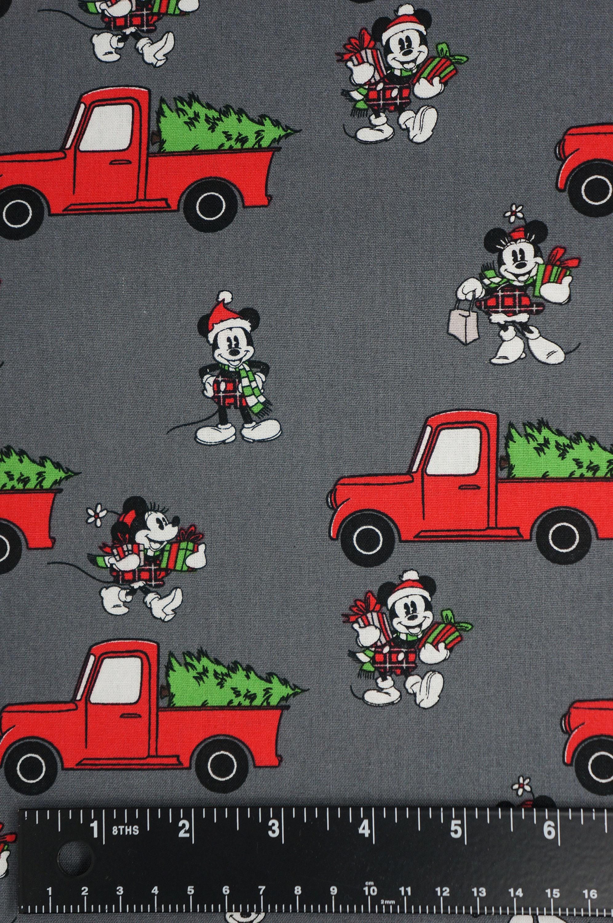 Celebrate the festive season with this adorable cotton fabric featuring Mickey and Minnie Mouse! They are having fun shopping for a Christmas tree and loading it on their red truck. This fabric is Disney licensed by Springs Creative, and it has a lovely gray background that makes the colors pop. You can use this fabric to make quilts, pillows, table runners, and more. It is soft, durable, and easy to sew. Bring some Disney magic to your home with this charming novelty fabric!