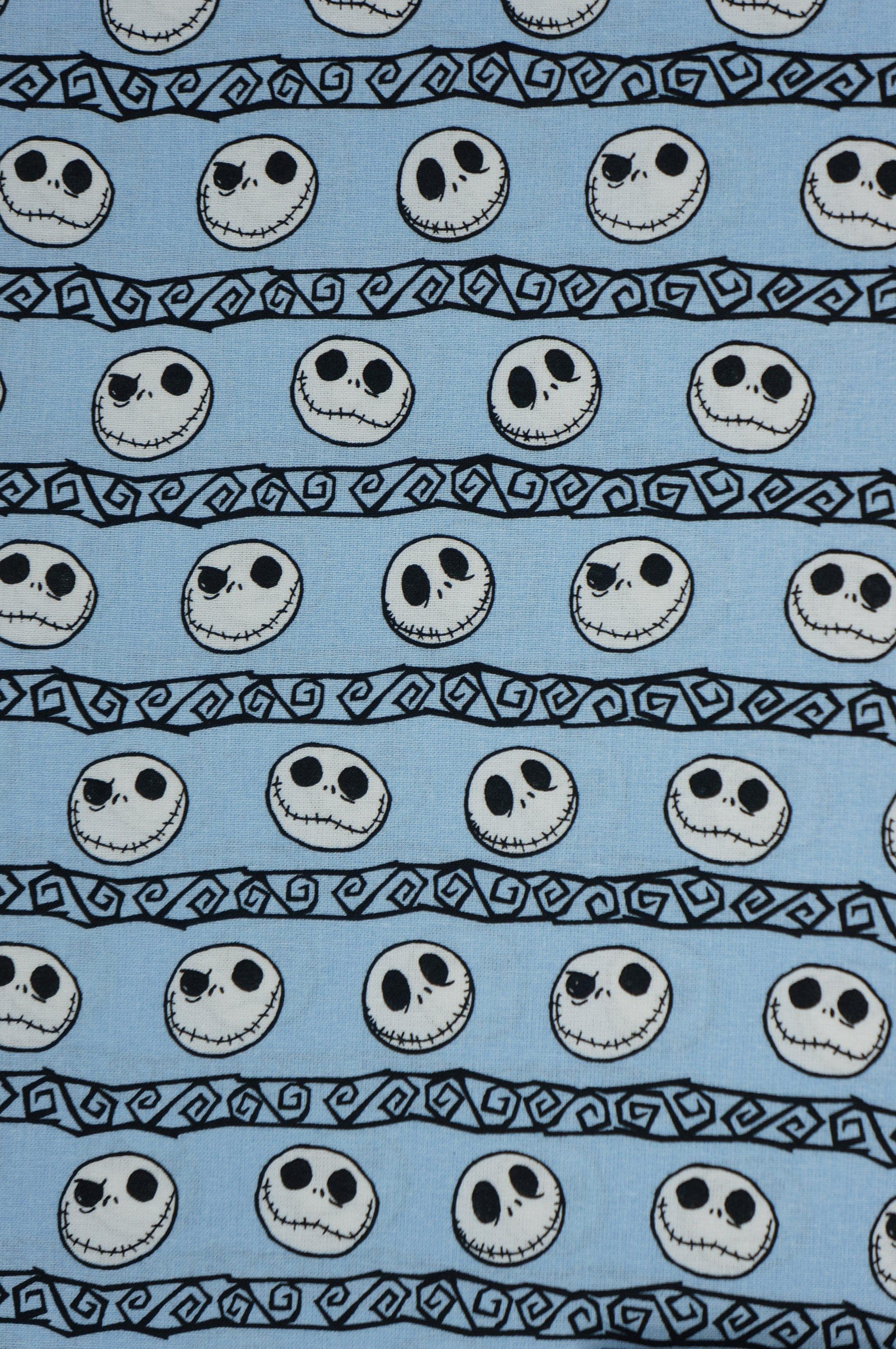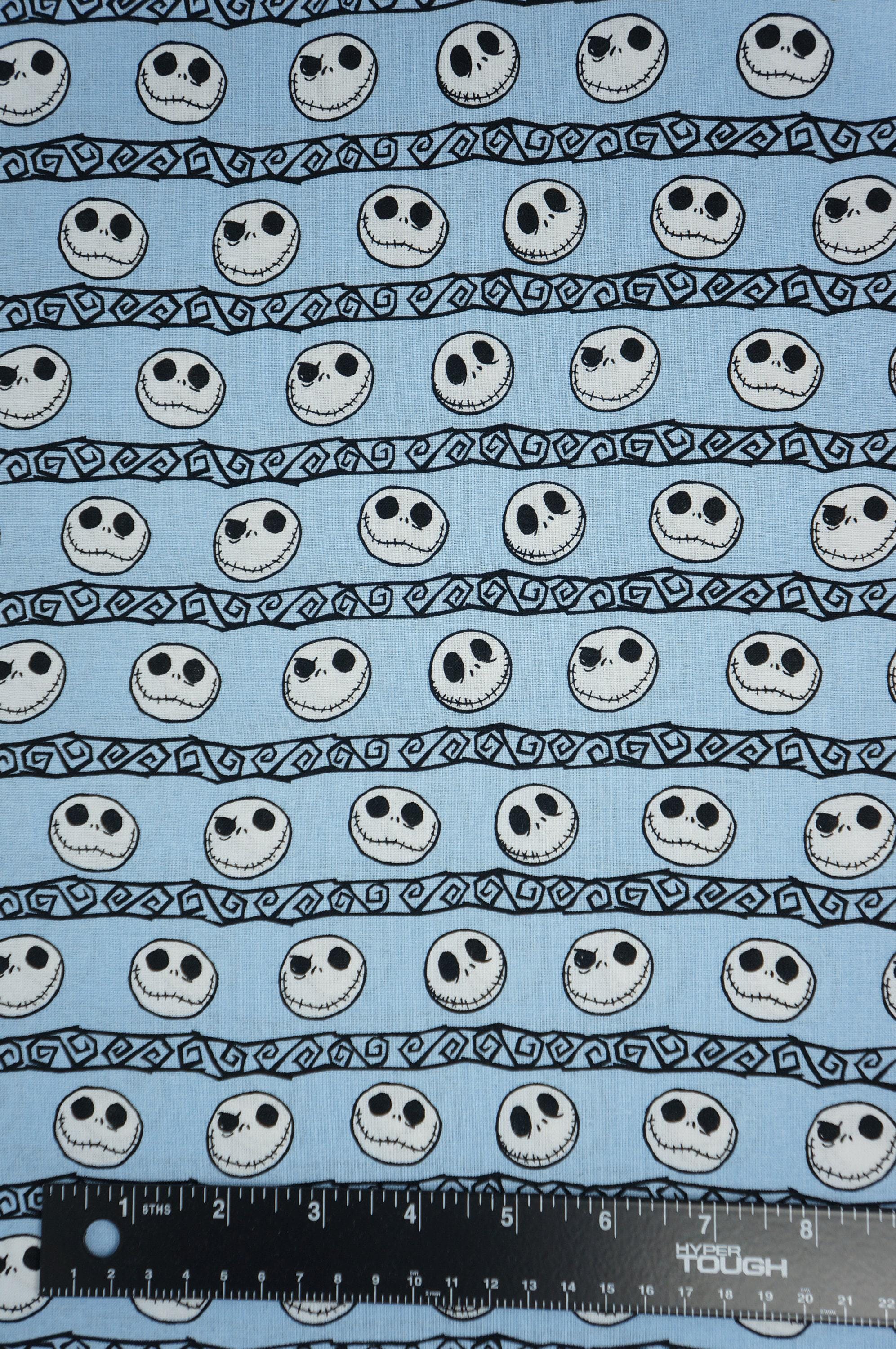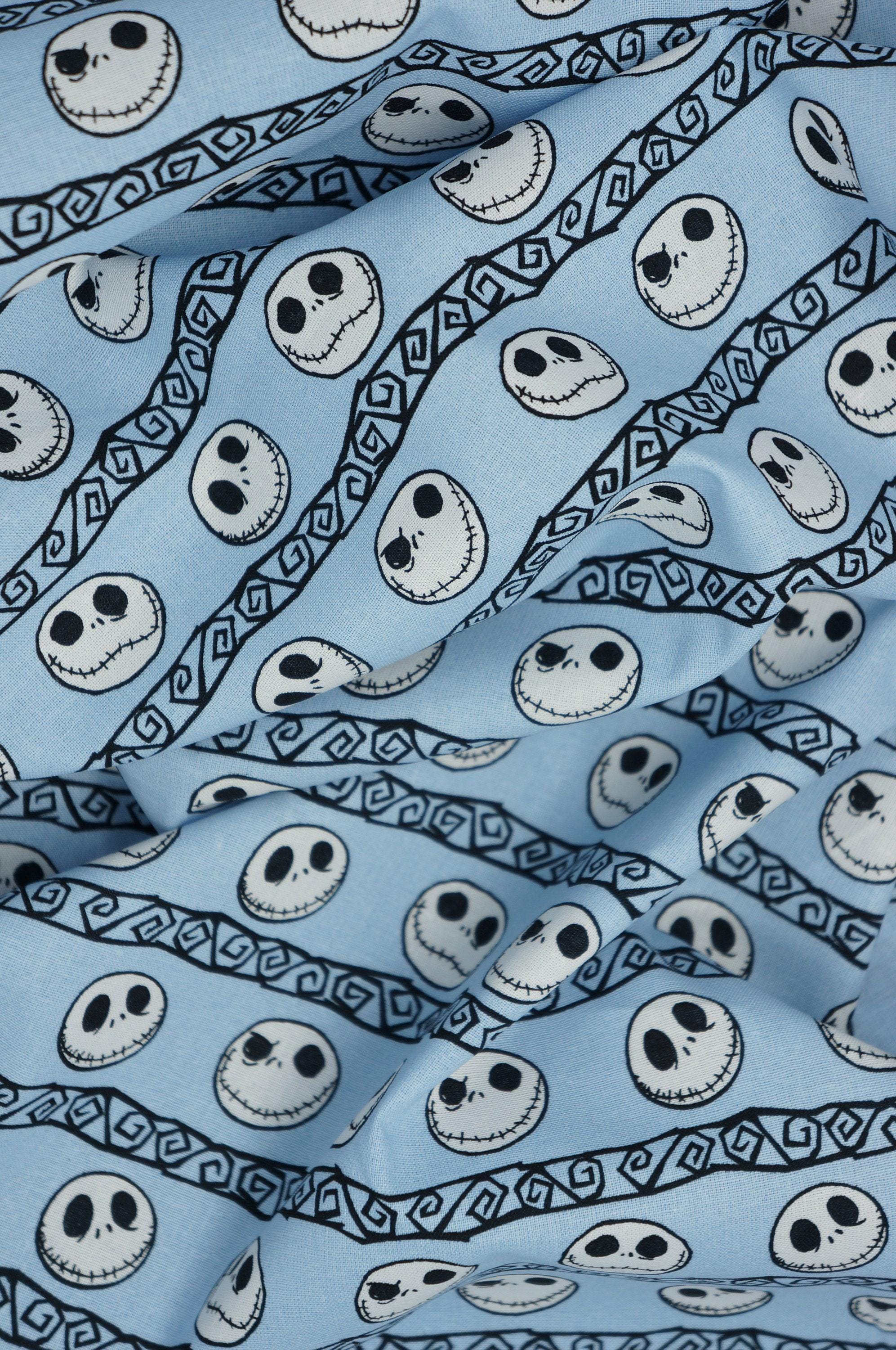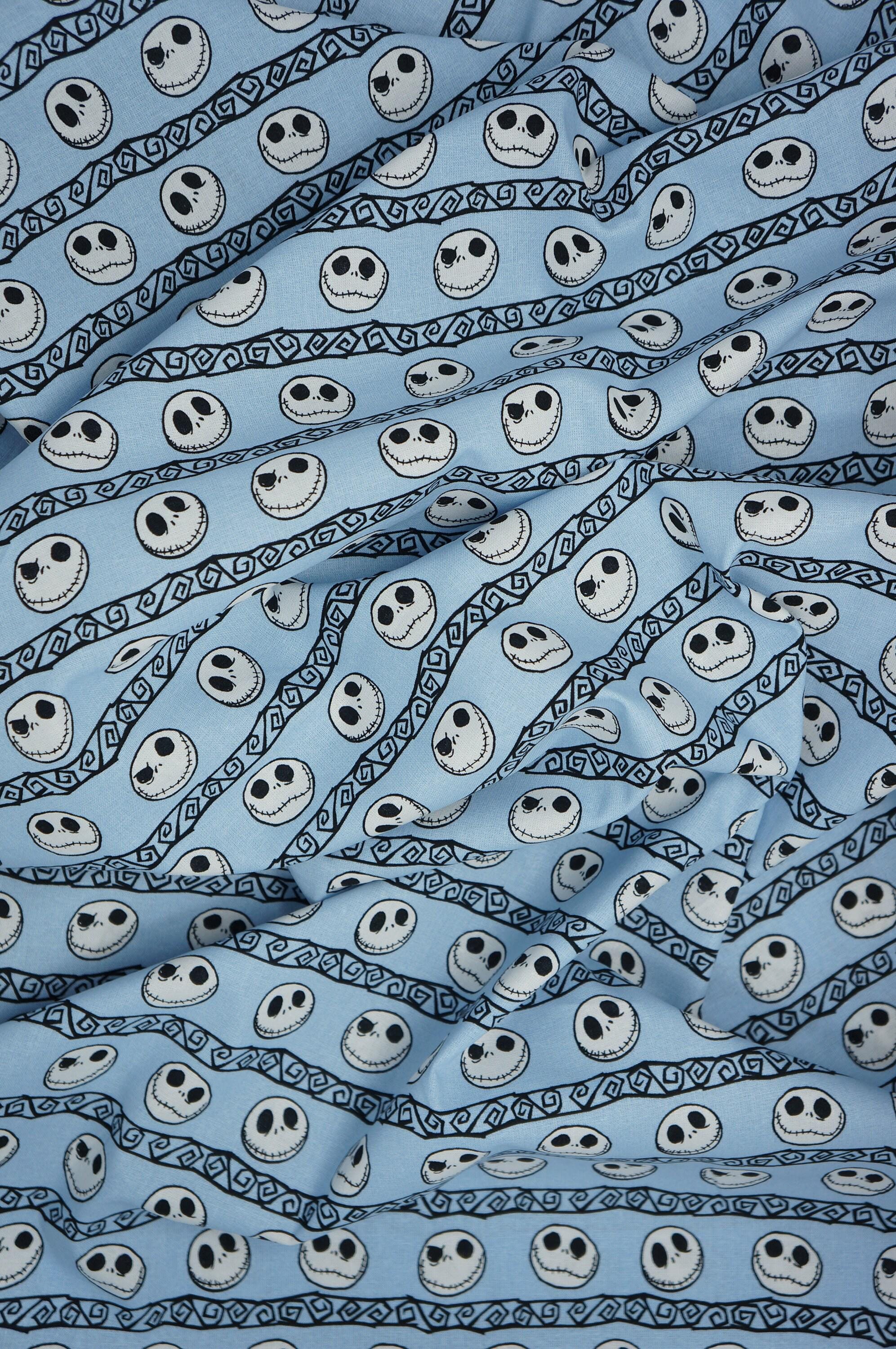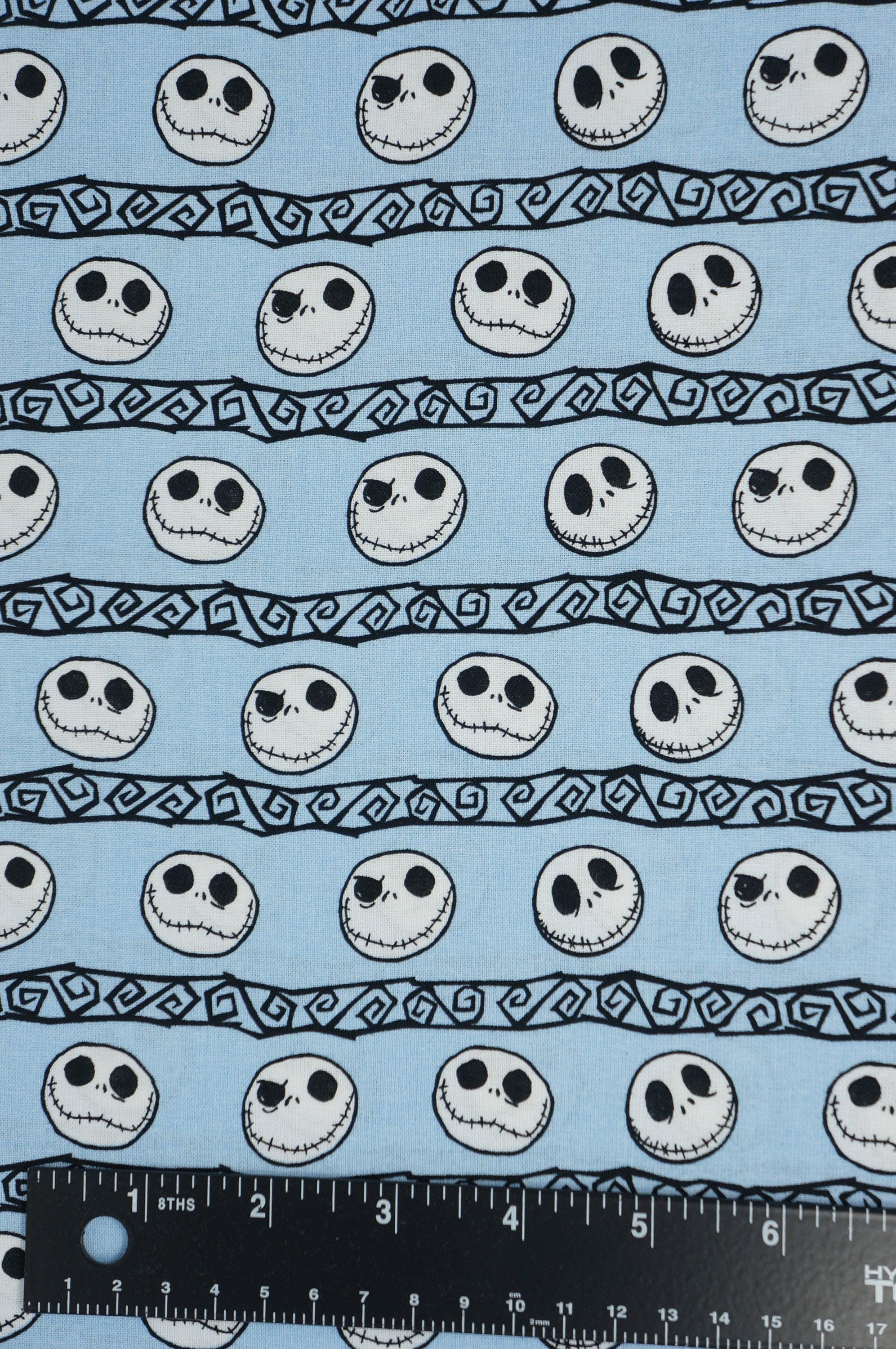 If you love The Nightmare Before Christmas, you will adore this Disney licensed novelty cotton fabric! It features Jack Skellington's many expressions on a light blue background, perfect for making spooky and fun projects. This fabric is soft, durable and easy to sew with. You can use it to create pillows, quilts, costumes, bags and more. Show off your fandom with this amazing fabric!