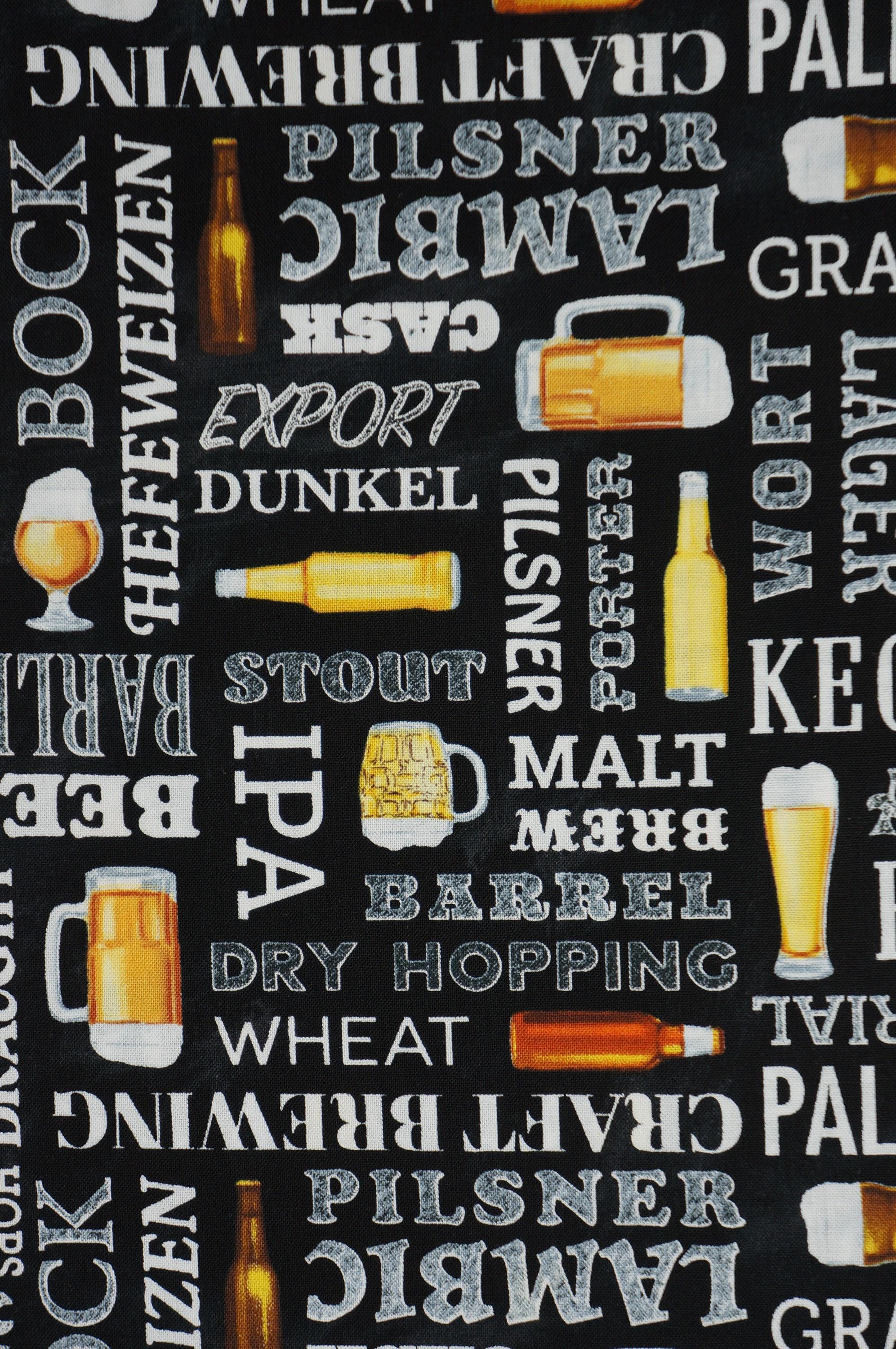 If you love beer and quilting, you'll adore this fabric from the George McCartney Collection for Timeless Treasures! Grab Me A Beer on Black features colorful bottles and glasses of beer along with fun beer descriptive words on a black background, perfect for making fun and cozy quilts, pillows, bags, and more. This fabric is made of 100% cotton and has a soft and smooth feel. Order yours today and get ready to cheers with your friends!