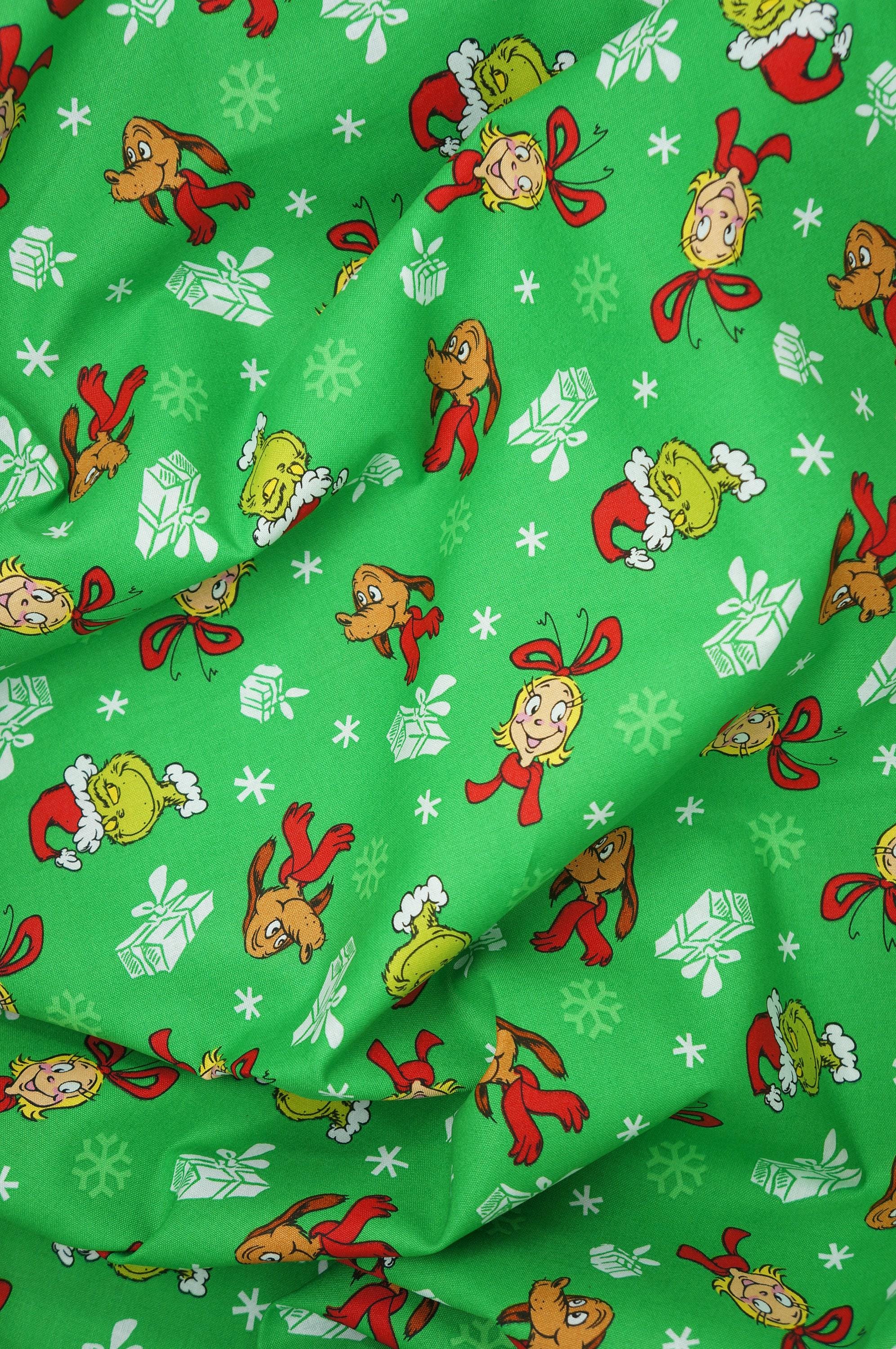 Are you a fan of the Grinch? If so, you will adore this Grinch Fabric from Robert Kaufman! This festive fabric features the grumpy green Grinch, his faithful dog Max and Cindy Lou Who on a bright green background with white presents, wreaths and snowflakes. This fabric is perfect for making quilts, pillows, bags, and more. It is made of 100% cotton and has a soft and smooth feel. You can use this fabric to create unique gifts for your friends and family, or to decorate your own home with some Grinchy charm. Don't miss this opportunity to get your hands on this amazing Grinch Fabric from Robert Kaufman. Order yours today and have a Merry Grinchmas!