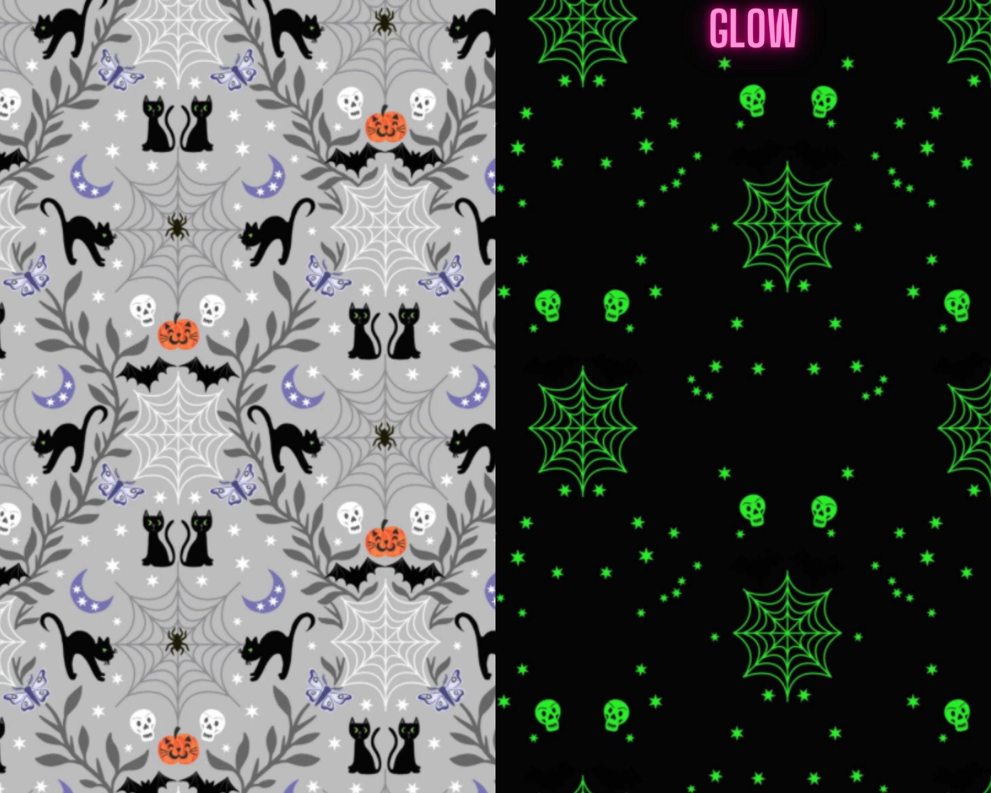 Are you ready to spook up your home with some amazing glow in the dark bats? These adorable Halloween bats come in three colors: bluish purple, black or gray. They are made of high-quality quilting cotton fabric by Lewis & Irene, a renowned brand in the quilting world. You can use them to make pillows, curtains, table runners, wall hangings and more. They will glow brightly in the dark and create a fun and festive atmosphere for your Halloween party. Don't miss this chance to get these unique and beautiful glow in the dark bats!