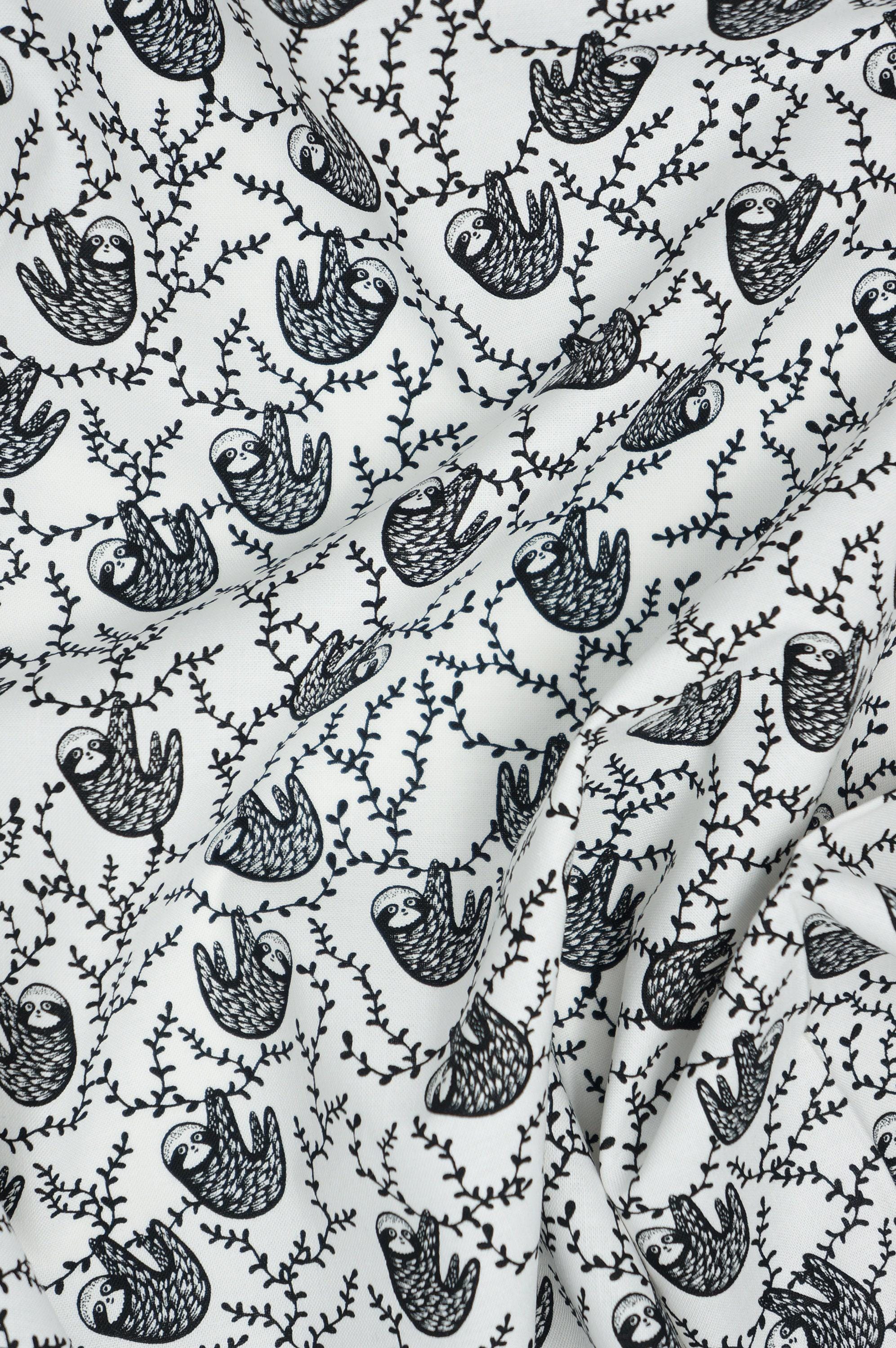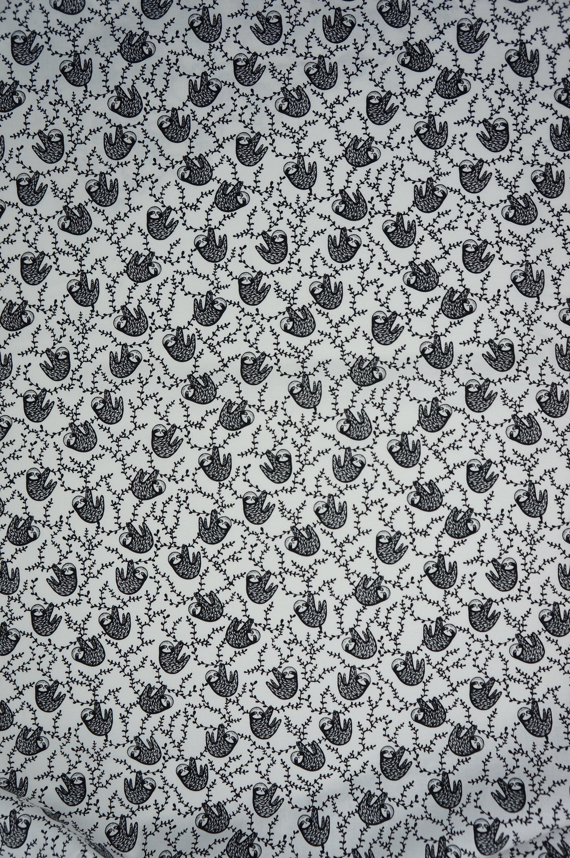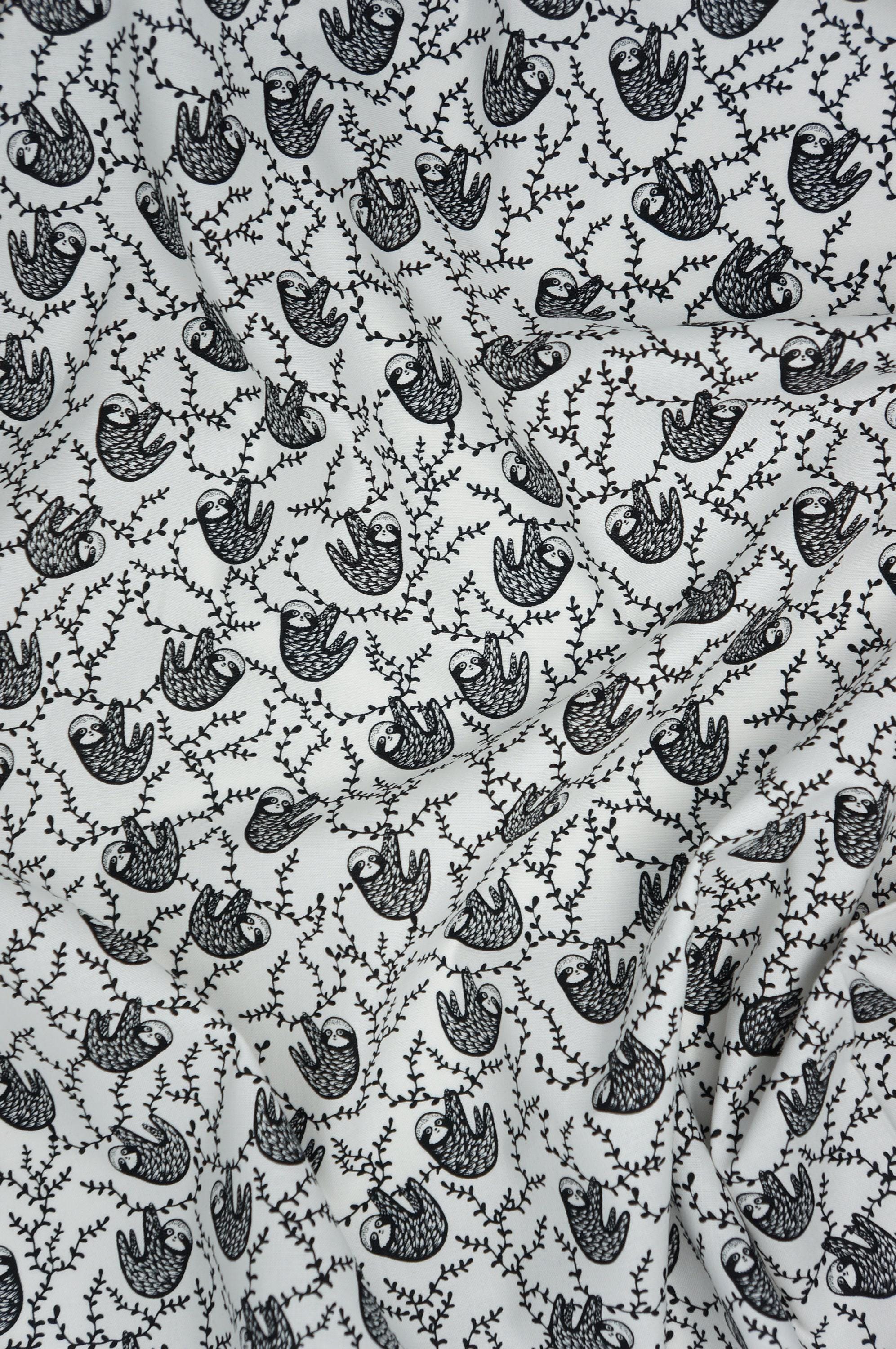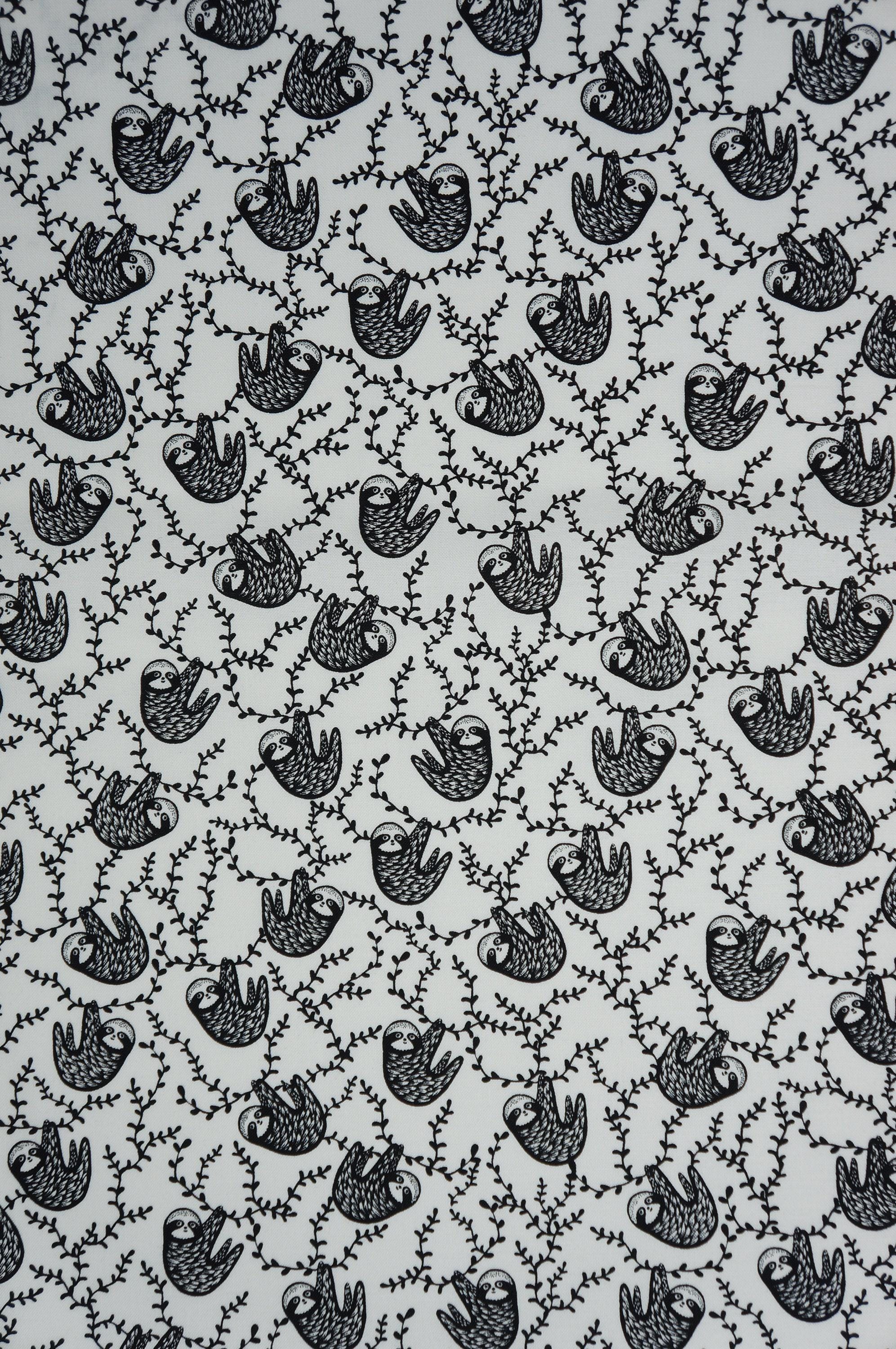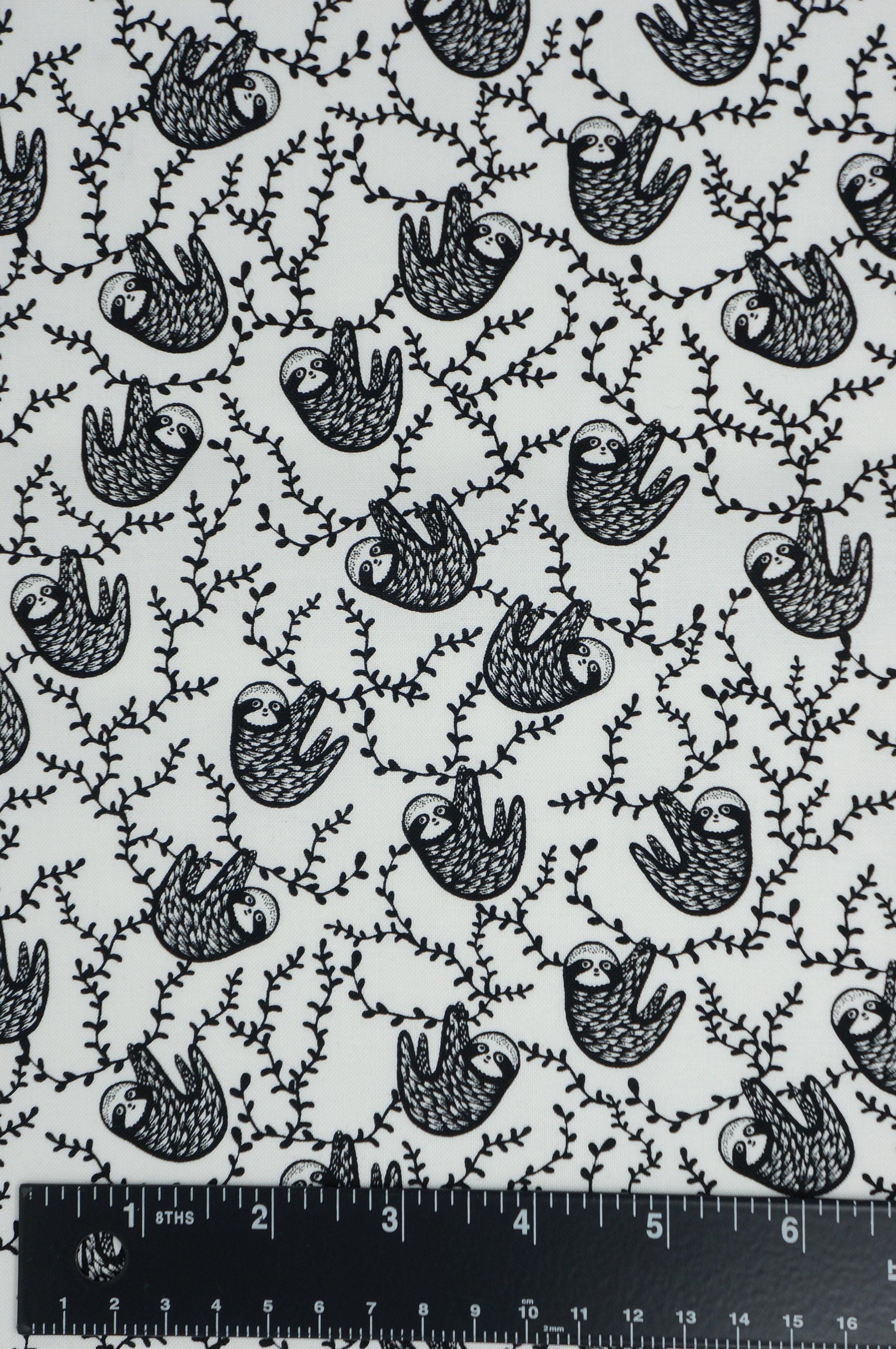 If you love sloths and quilting, you will adore this fabric! Black and White Sloths By Dear Stella Quilting Cotton Fabric features small print sloths hanging from branches on a white background. This fabric is part of the ABC Menagerie by Wee Gallery Collection, which showcases cute and whimsical animals in black and white. This fabric is perfect for making quilts, pillows, bags, and more. You will love how soft and durable this cotton fabric is. Order yours today and get ready to create some amazing projects with these adorable sloths!