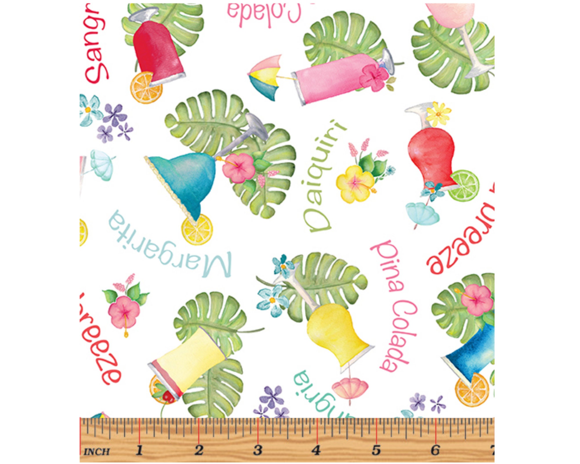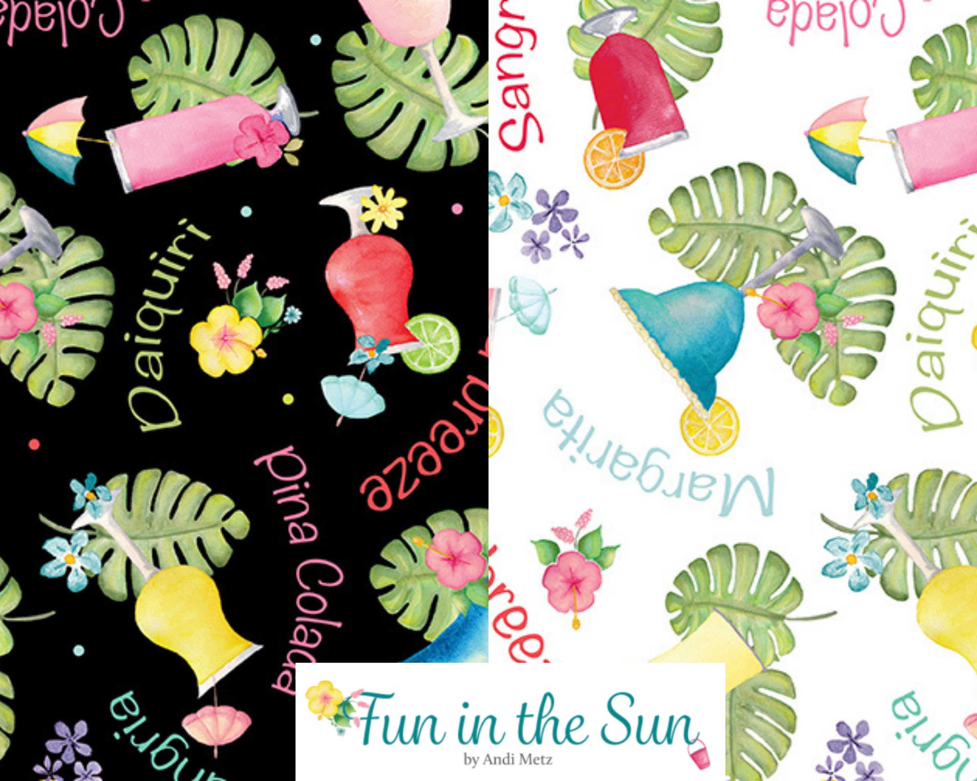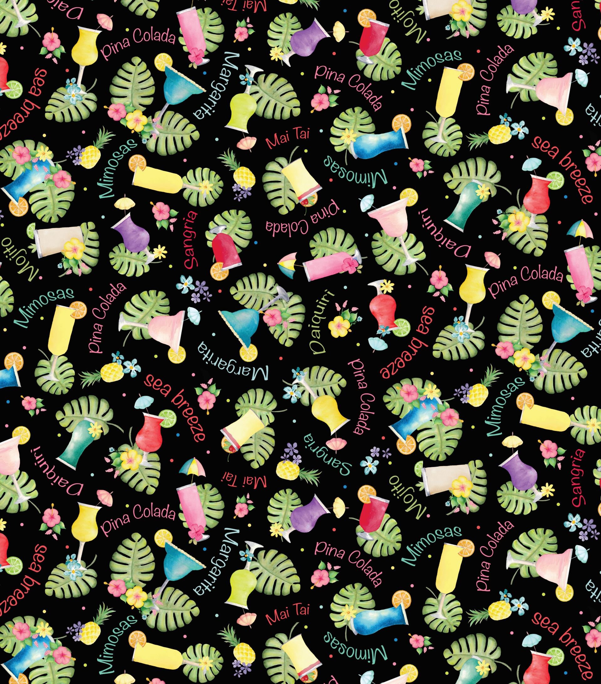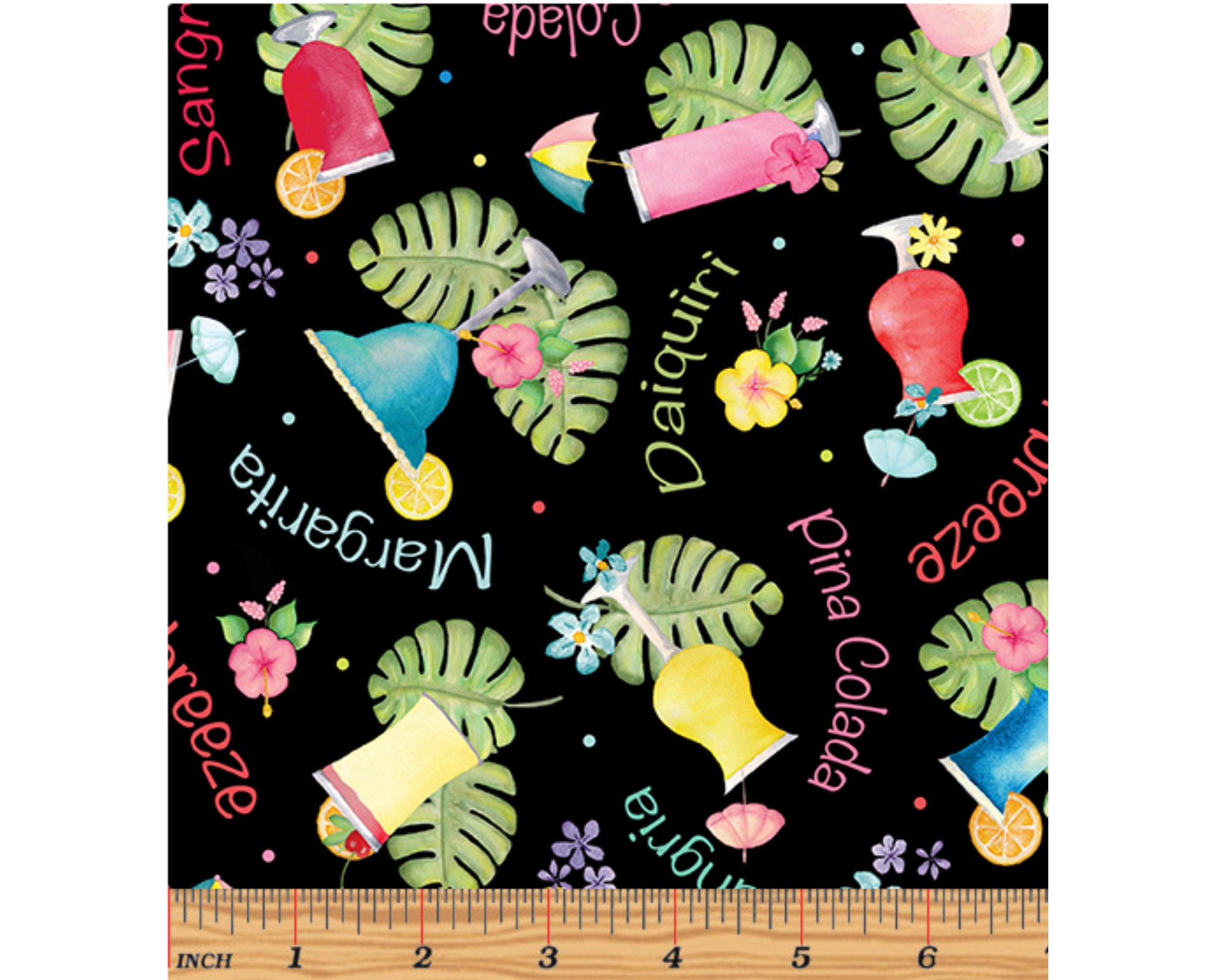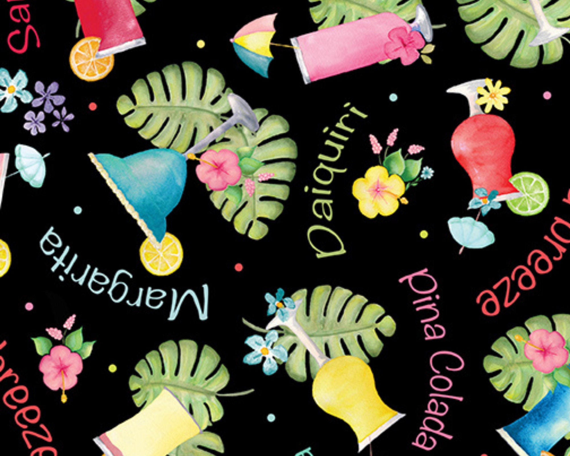 Fabric Names: Tropical Drinks White 1259209B, Tropical Drinks Black 1259212B