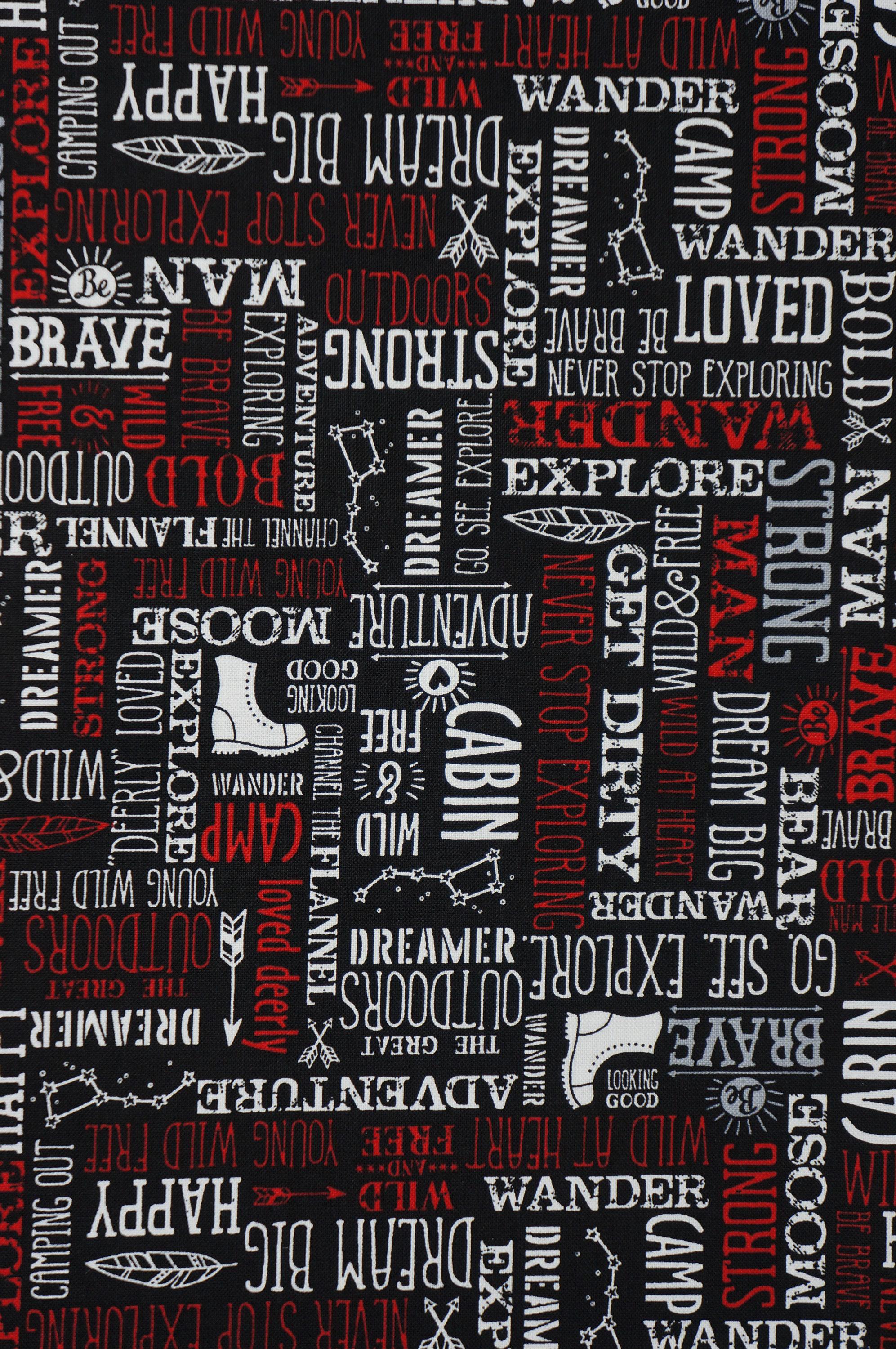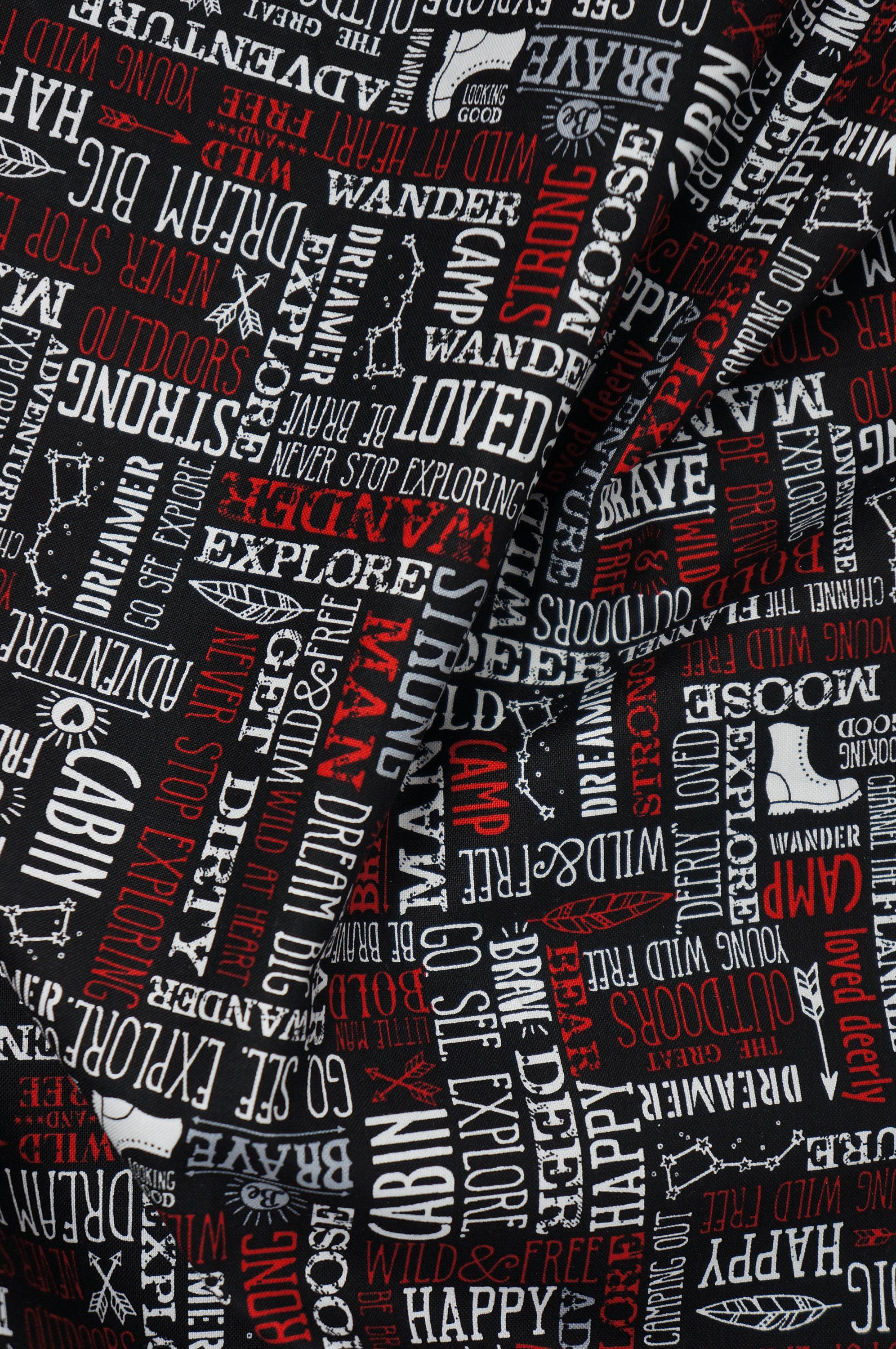 If you love adventure and quilting, you will adore this fabric! Adventure Words Blender Quilting Cotton Fabric by Riley Blake is a fun red and white text print that features outdoor-themed words and icons, such as boots, constellations, and feathers. It is part of the Wild at Heart Collection by Lori Whitlock, which celebrates the spirit of exploration and camping. This fabric is great for quilting, apparel and home decor projects that need some extra charm and whimsy. Whether you are making a quilt for your adventure nursery, a pillow for your explorer couch, or a tote bag for your camping trip, you will love working with this fabric. It is 100% cotton and 43" wide. Order yours today and get ready for some wild at heart sewing!