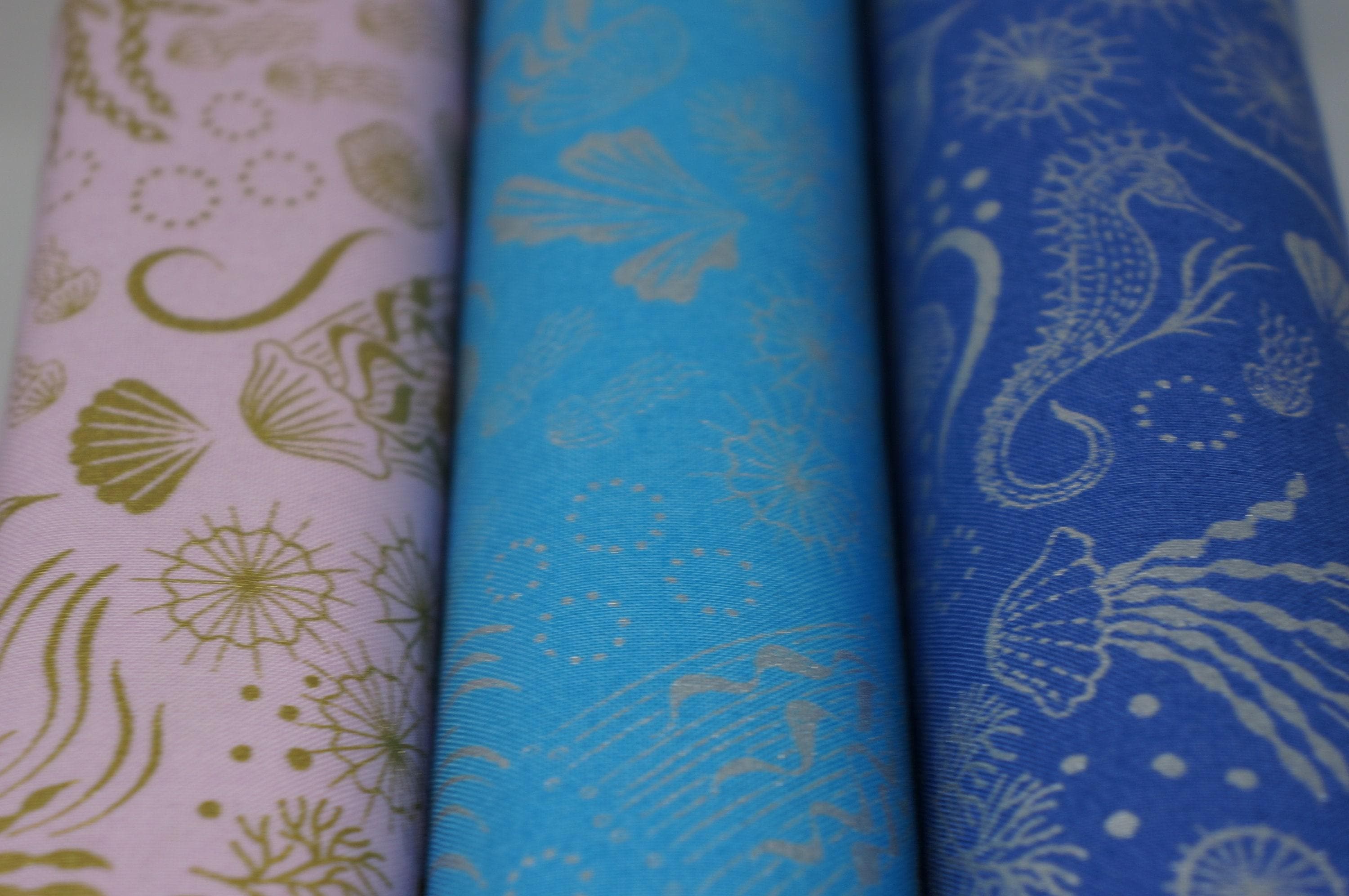 Are you looking for a fun and fabulous fabric to brighten up your quilting projects? Look no further than Jellyfish and Seahorse Fabric, Metallic Moontide by Lewis and Irene Quilting Cotton Fabric! This stunning fabric features metallic jellyfish and seahorses on a various backgrounds, creating a magical underwater theme. Whether you want to make a quilt, a pillow, a tote bag, or anything else, this fabric will add some sparkle and whimsy to your creations. Dive into the ocean of possibilities with Jellyfish and Seahorse Fabric, Metallic Moontide by Lewis and Irene Quilting Cotton Fabric!