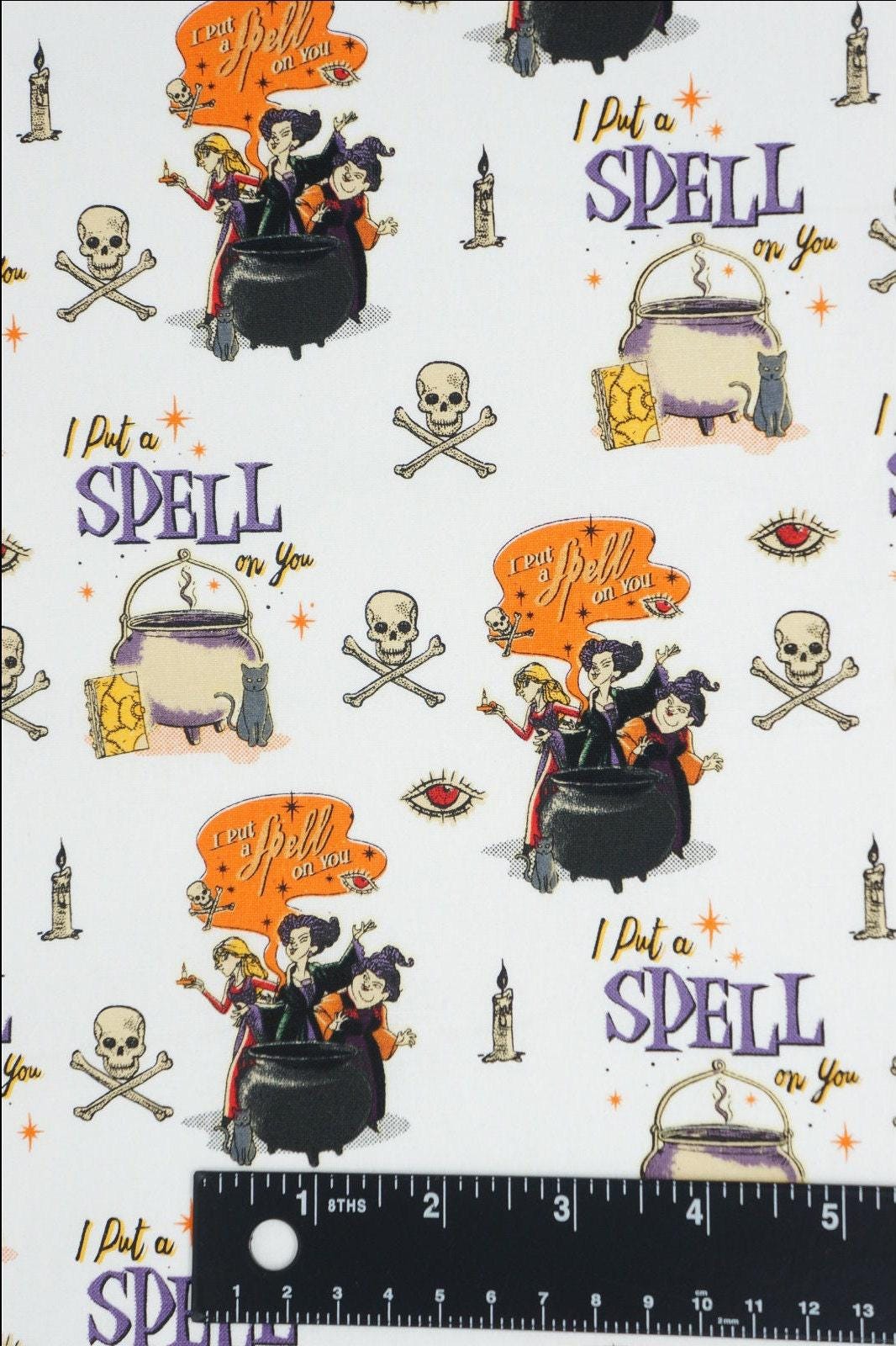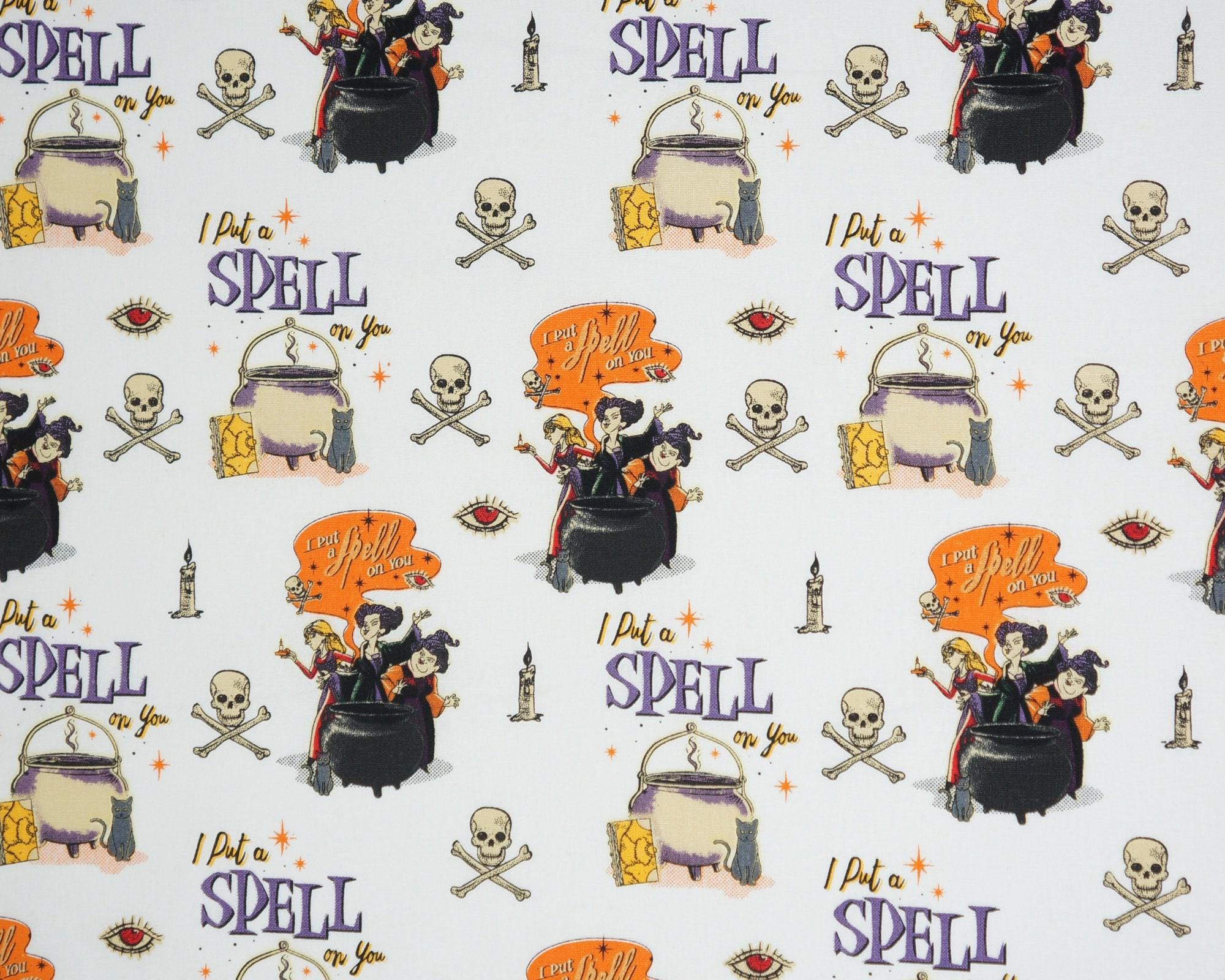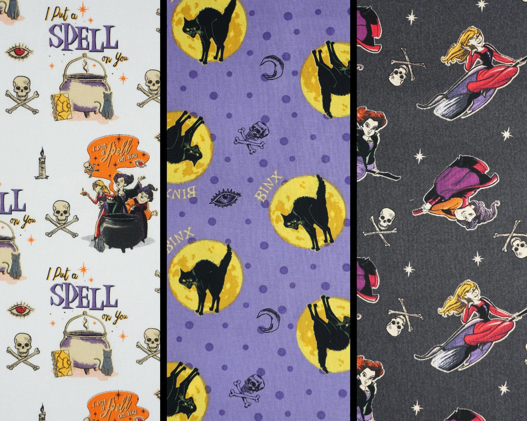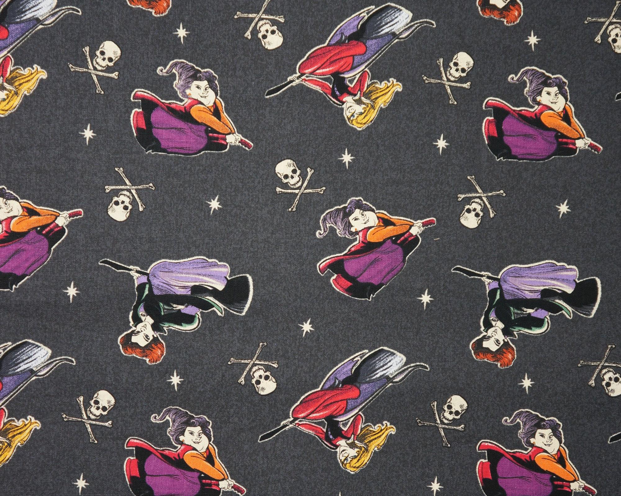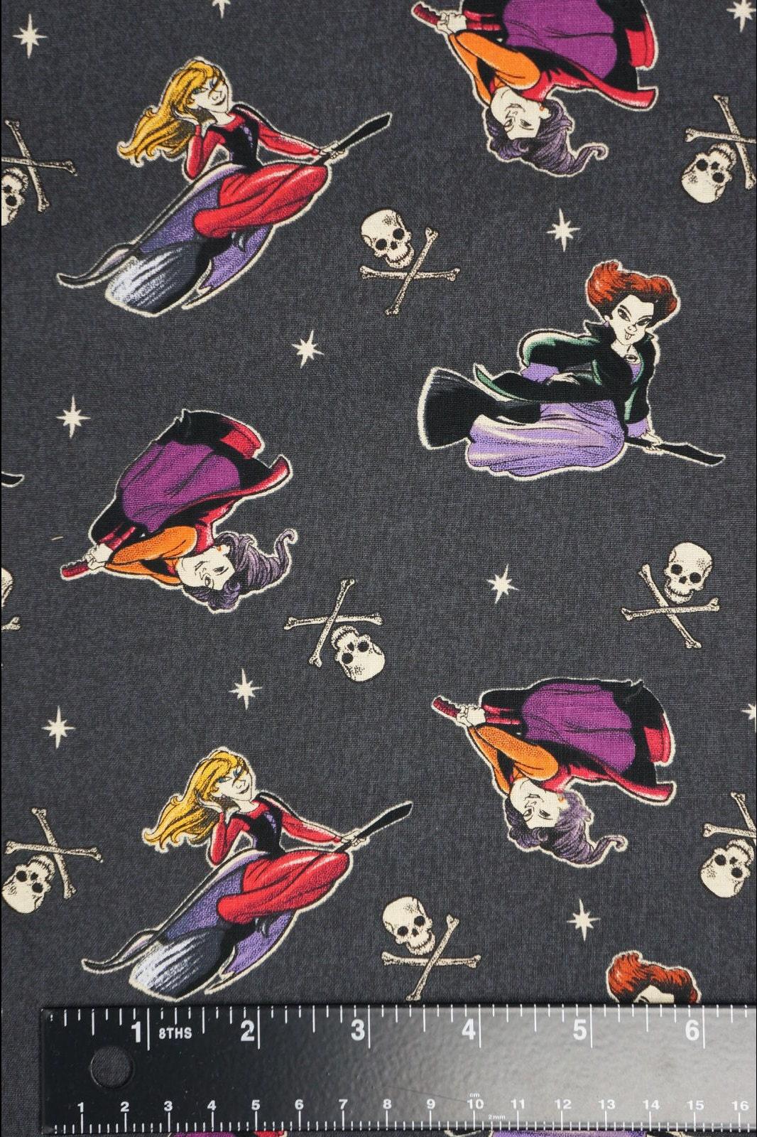 If you love Hocus Pocus, you'll adore this fabric featuring the three witches and Binx the cat from the classic Disney movie. This fabric is made of 100% cotton and is perfect for quilting, crafting, or decorating. You can use it to make pillows, bags, costumes, or anything else you can imagine. Choose from one of the three fun designs! The fabric is licensed by Disney and Springs Creative, so you can be sure of its quality and authenticity. Don't miss this chance to get your hands on this magical Hocus Pocus fabric!