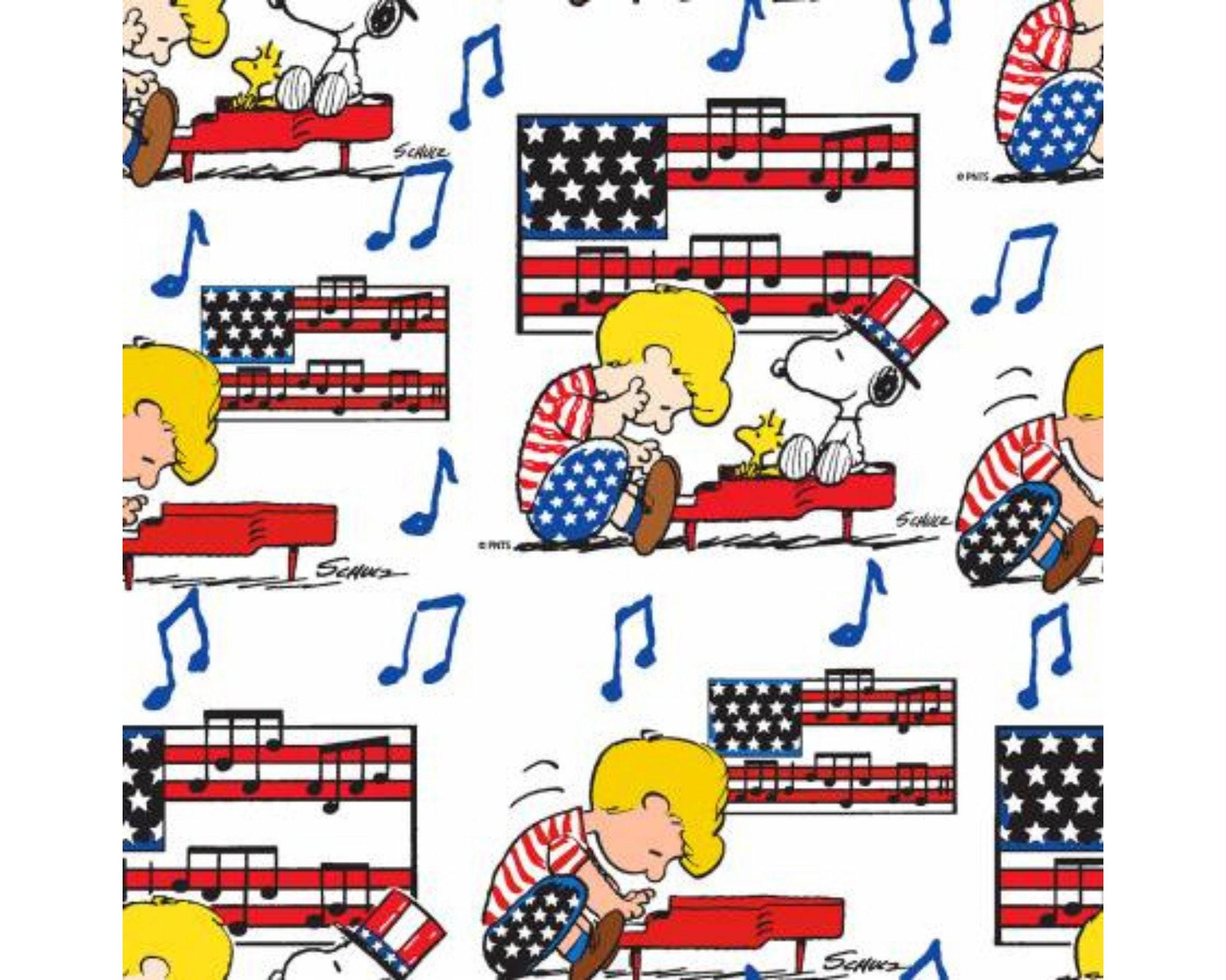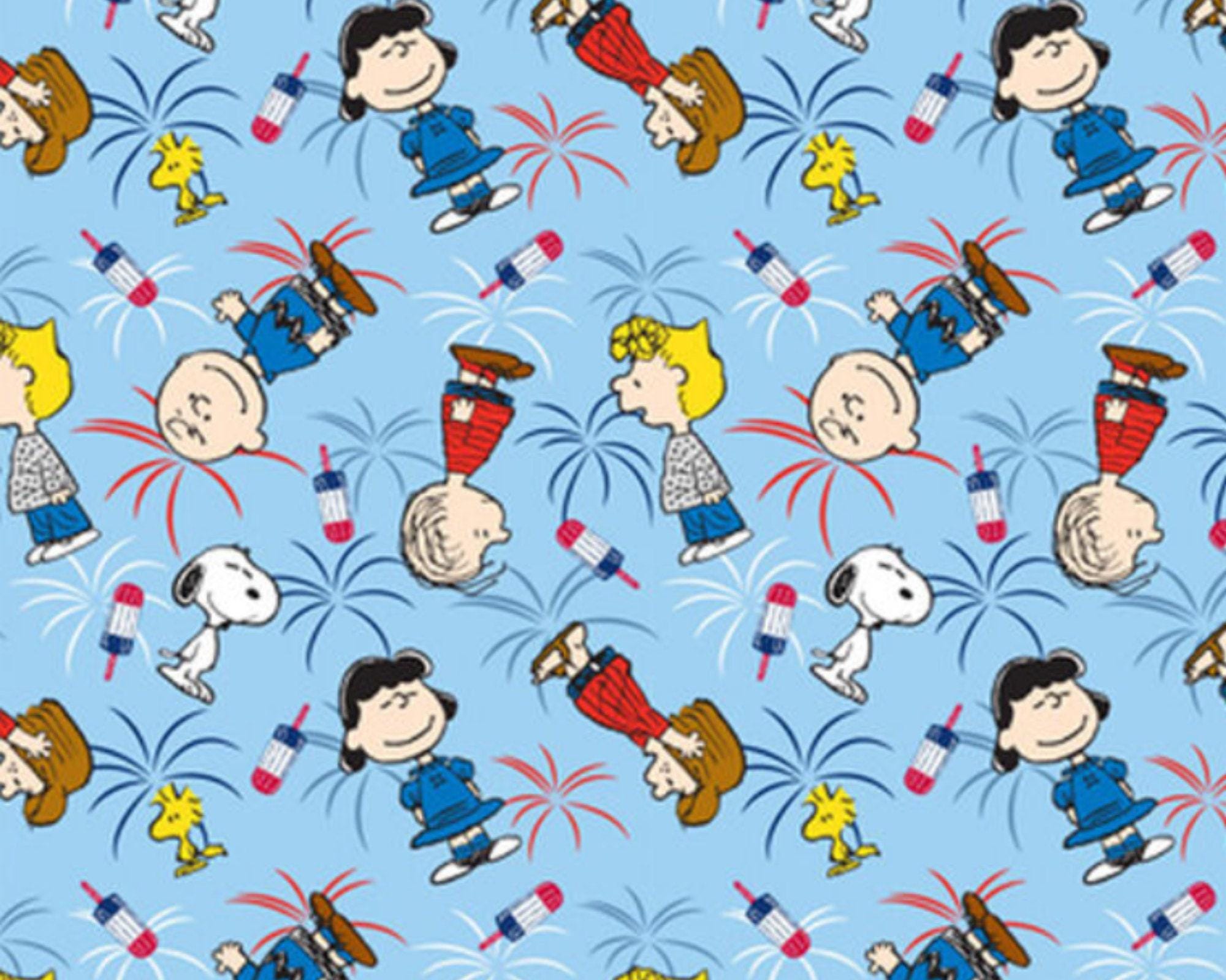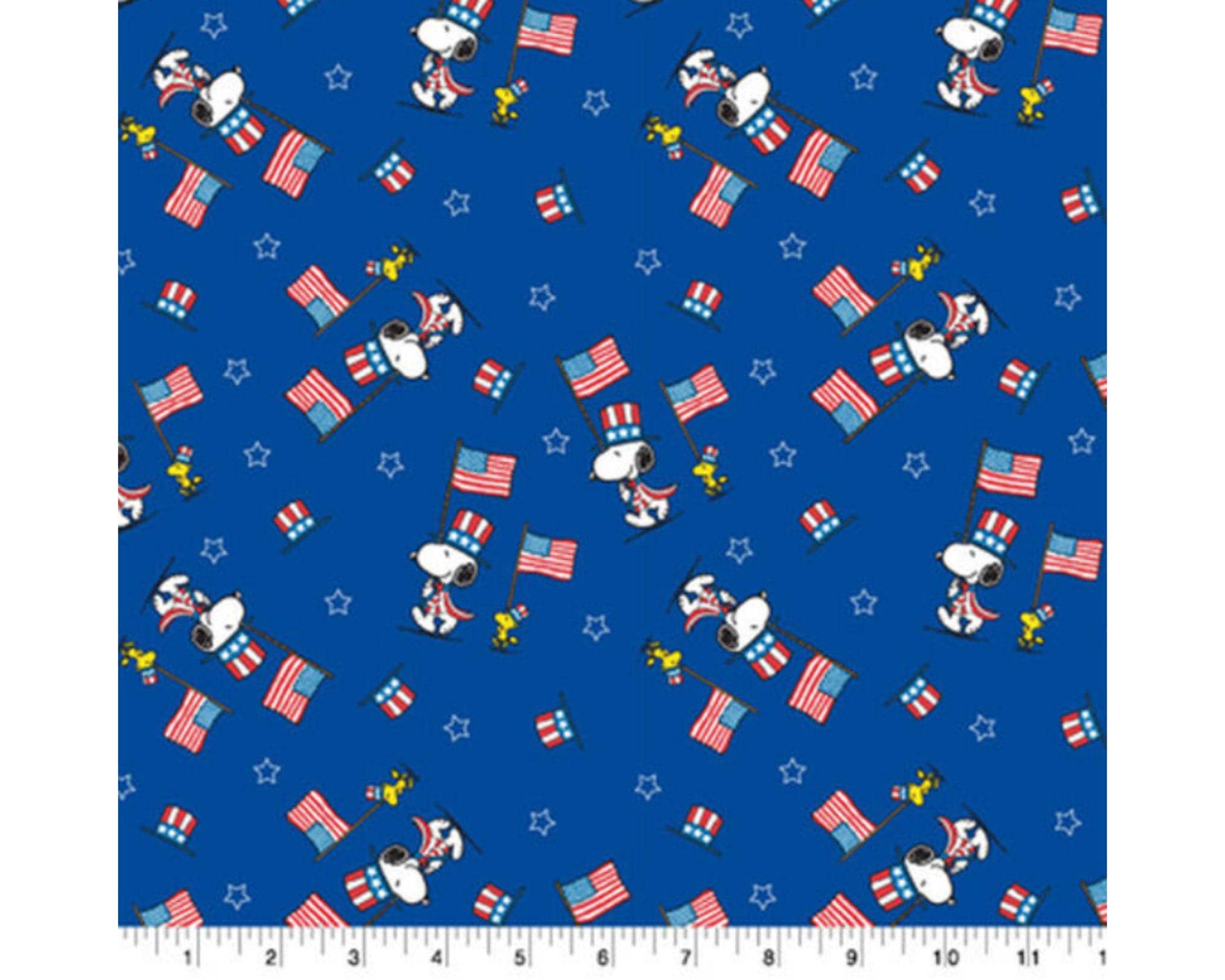 Celebrate the 4th of July with this adorable Patriotic Snoopy Fabric by Springs Creative! This licensed cotton fabric features Snoopy and his friends dressed in red, white and blue, holding flags and fireworks. It's perfect for making quilts, pillows, bags, masks and more. Show your love for America and Peanuts with this fun and festive fabric! There are 4 Designs to choose from.