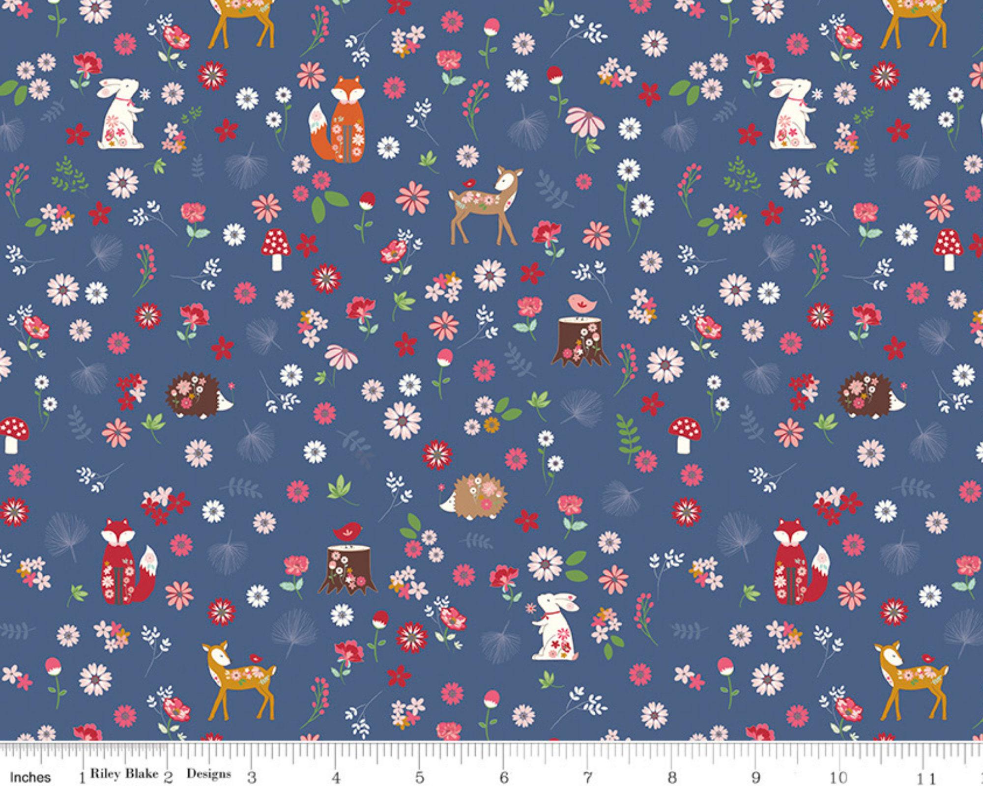If you love woodland animals and whimsical designs, you will adore Enchanted Meadow by Beverly McCullough for Riley Blake Designs! This fabric collection features cute and colorful forest friends on a denim blue or songbird mint background. You can find flowers, mushrooms, hedgehogs, rabbits, birds, foxes, and deer on this soft and durable quilting cotton fabric. Enchanted Meadow is perfect for making quilts, pillows, bags, clothing, and more. Bring some magic and charm to your sewing projects with this enchanting fabric collection!