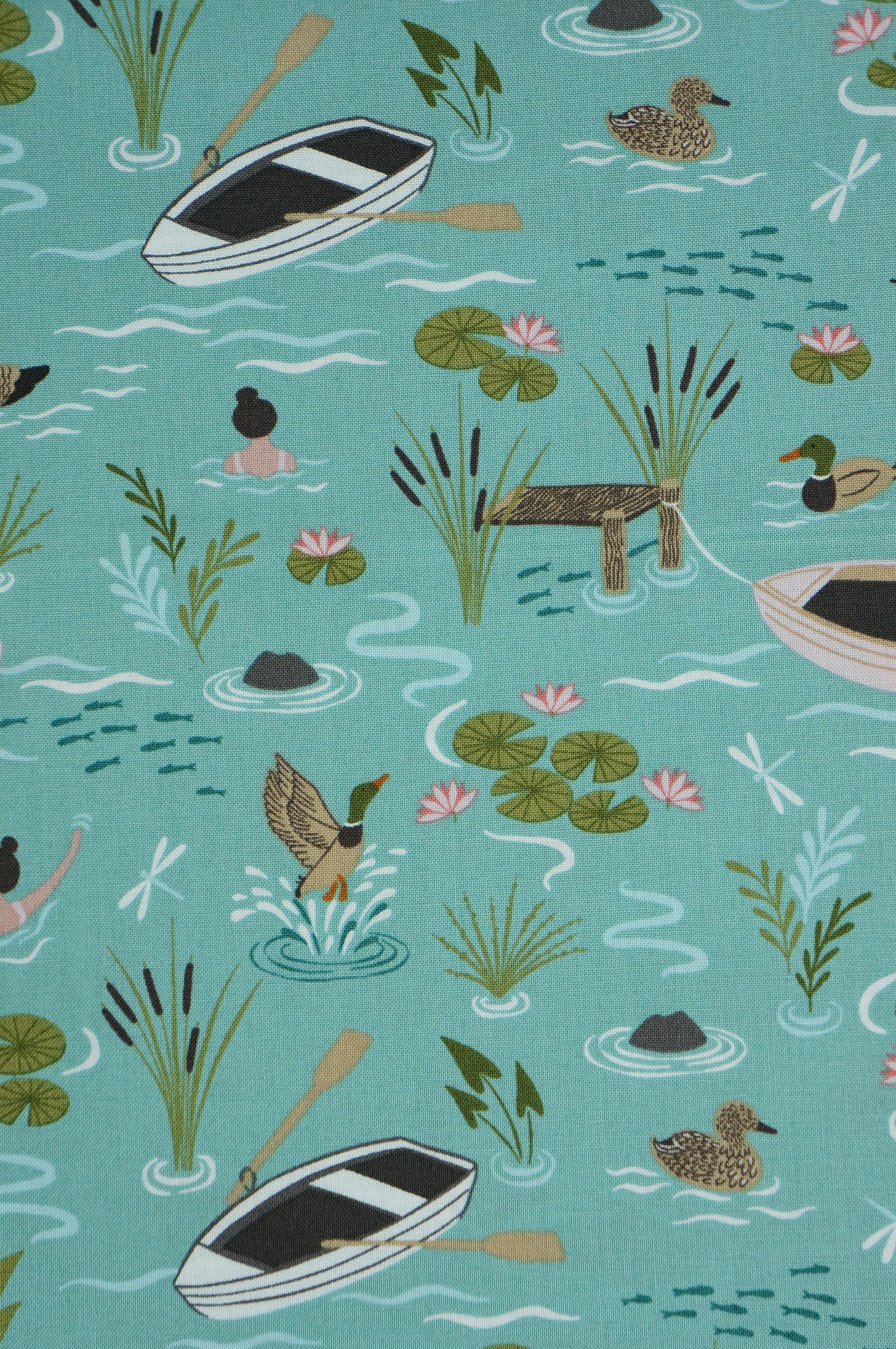 If you love the lake life, you'll adore this fabric! Lake Life Fabric is a quilting cotton fabric that features a charming print of people and animals enjoying a dip in the lake on a sunny day. The blue green color is bright and cheerful, perfect for creating quilts, pillows, bags, and more. Lake Life Fabric is part of the A Dip in the Lake collection by Lewis and Irene, a family-run British company that designs high-quality fabrics with a touch of whimsy. Order yours today and bring some lake life into your home!
