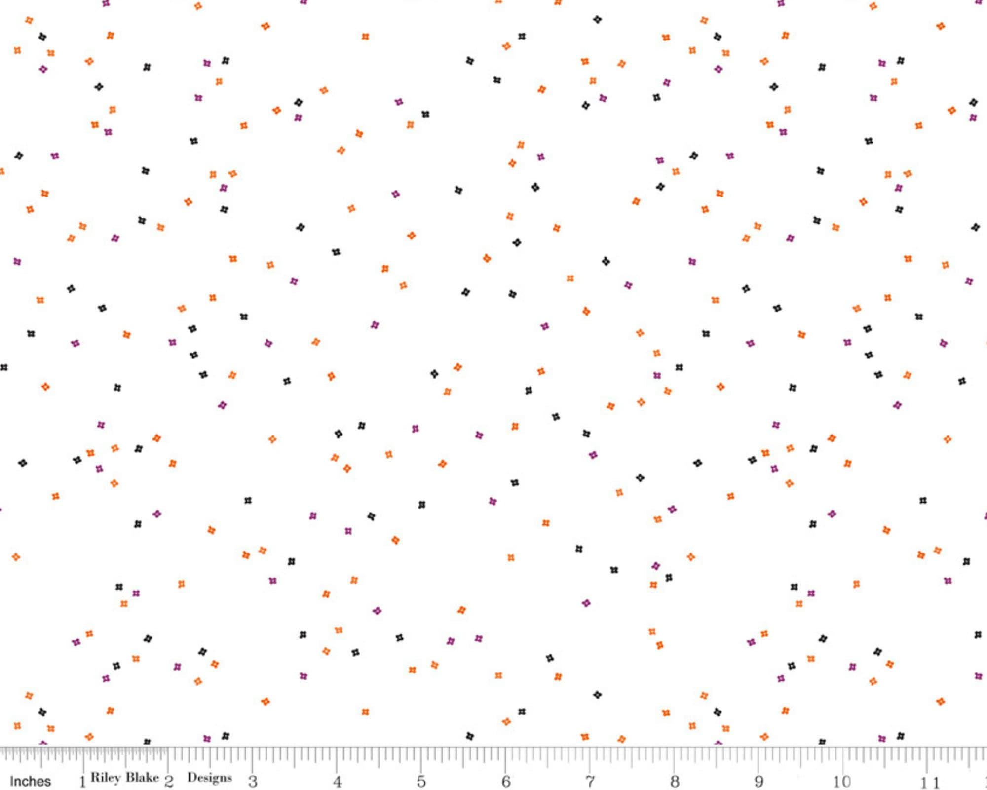 Celebrate Halloween with this festive fabric from Riley Blake Designs! This quilting cotton fabric features adorable confetti blossoms in black, orange, and purple on a crisp white background. Designed by Christopher Thompson, this fabric is part of the Halloween Blender collection that mixes and matches with other Riley Blake fabrics. Whether you're making a quilt, a costume, or a home decor item, this fabric will add some spooky charm to your project!
