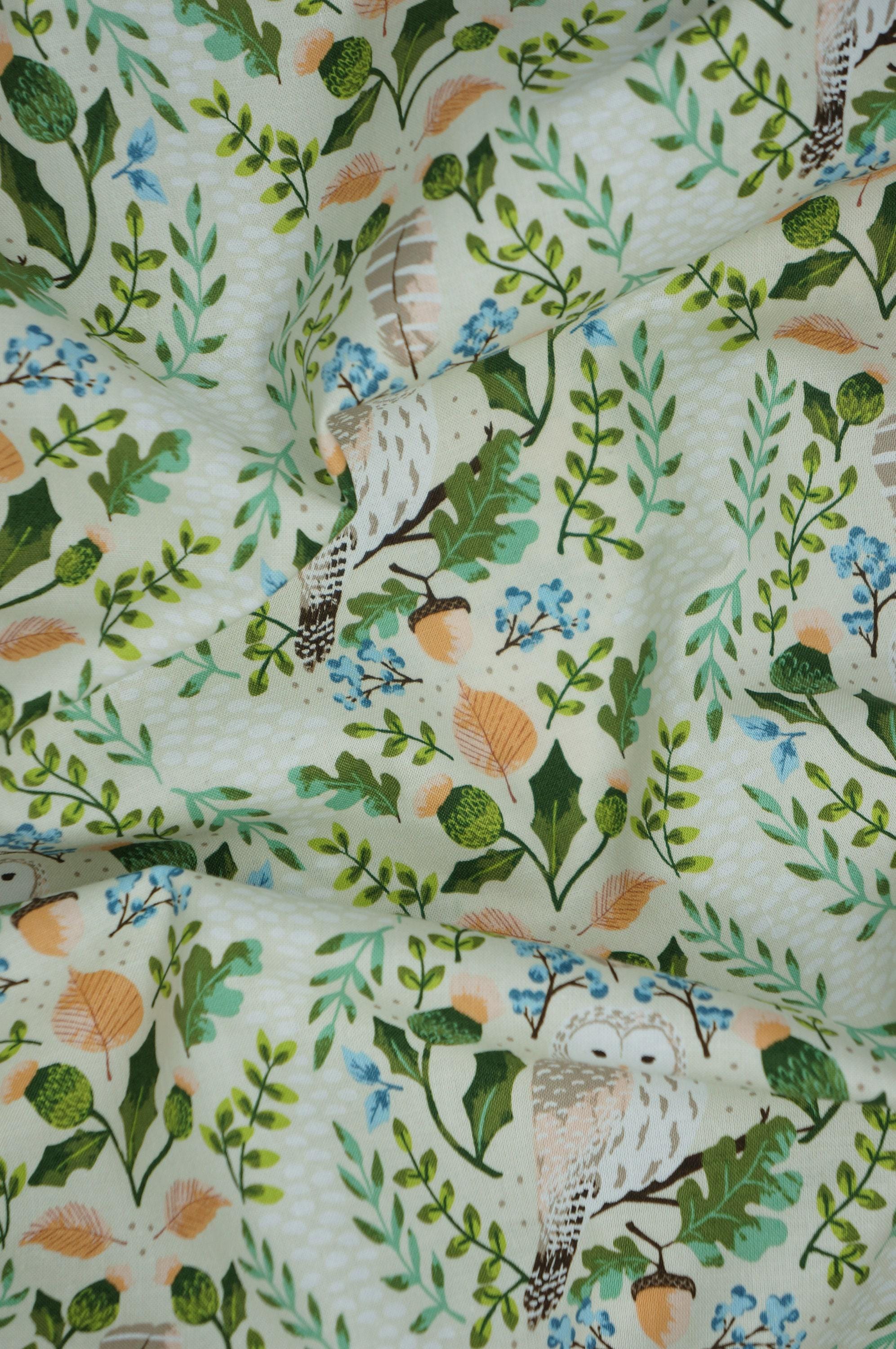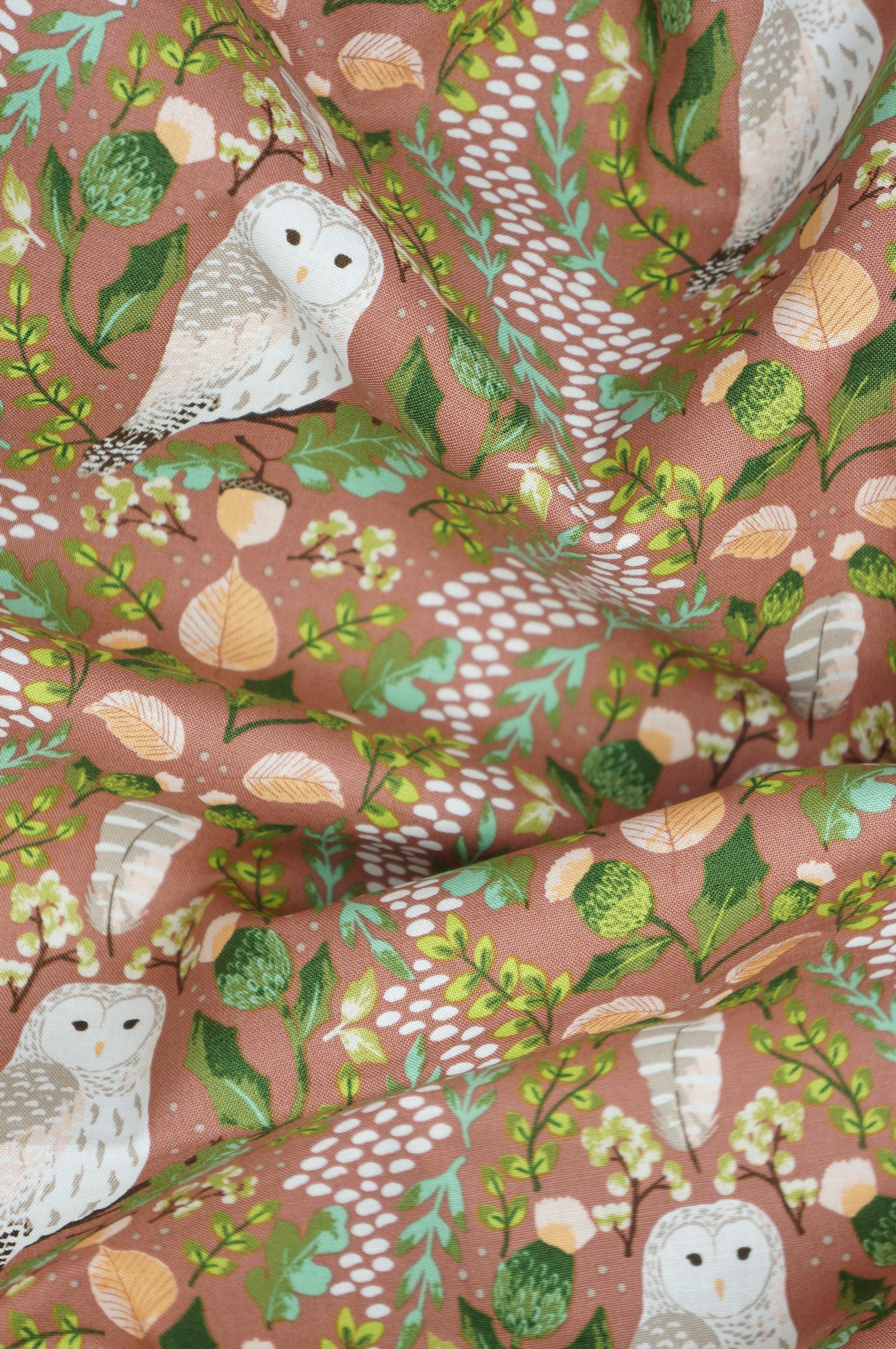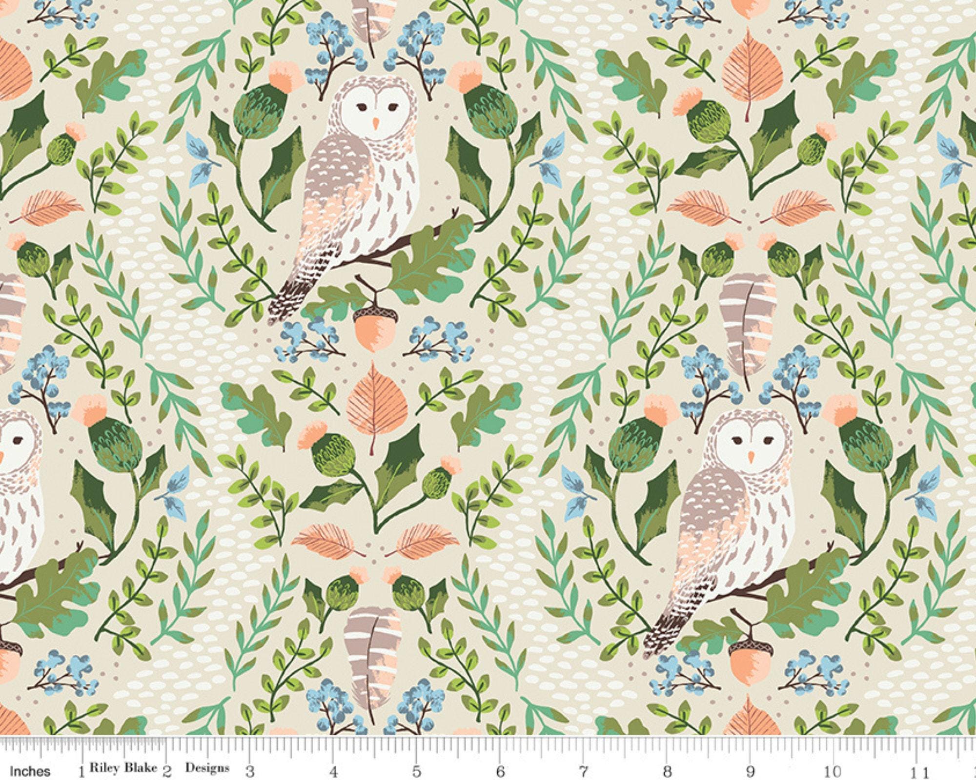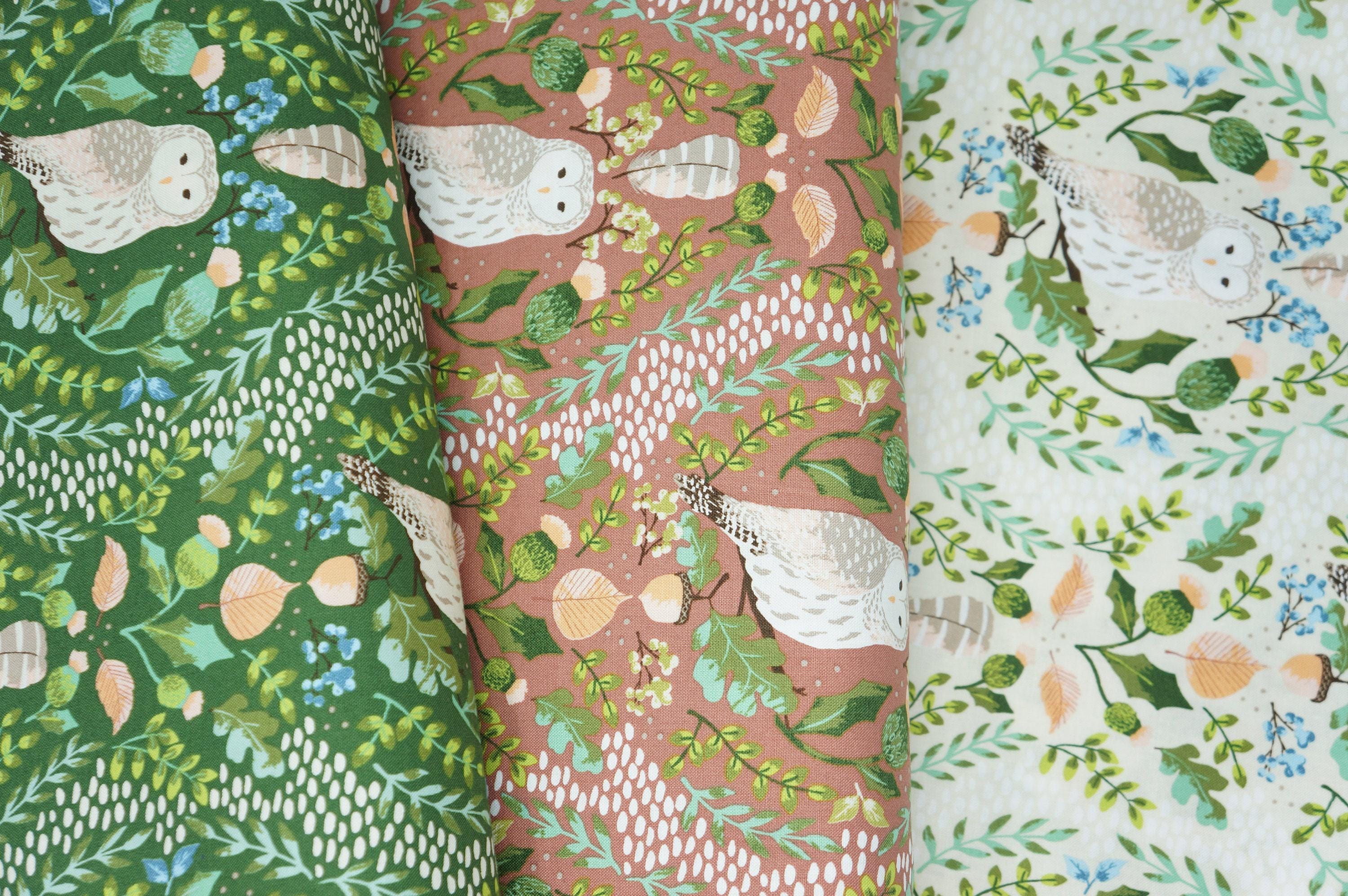 Wildwood Wander by Katherine Lenius for Riley Blake Designs is great for quilting, apparel and home decor. If you love owls and nature, you will adore this owl fabric designed by Katherine Lenius from Riley Blake Designs! This quilting cotton fabric features a whimsical print of hidden owls among the flowers and leaves of a wildwood. You can choose from three beautiful colors: green, rose or cream. This fabric is perfect for making quilts, pillows, bags, curtains, and more. It is soft, durable, and easy to sew with. You can order this fabric by the yard or by the half yard. Add some charm and magic to your sewing projects with this owl fabric from Riley Blake!