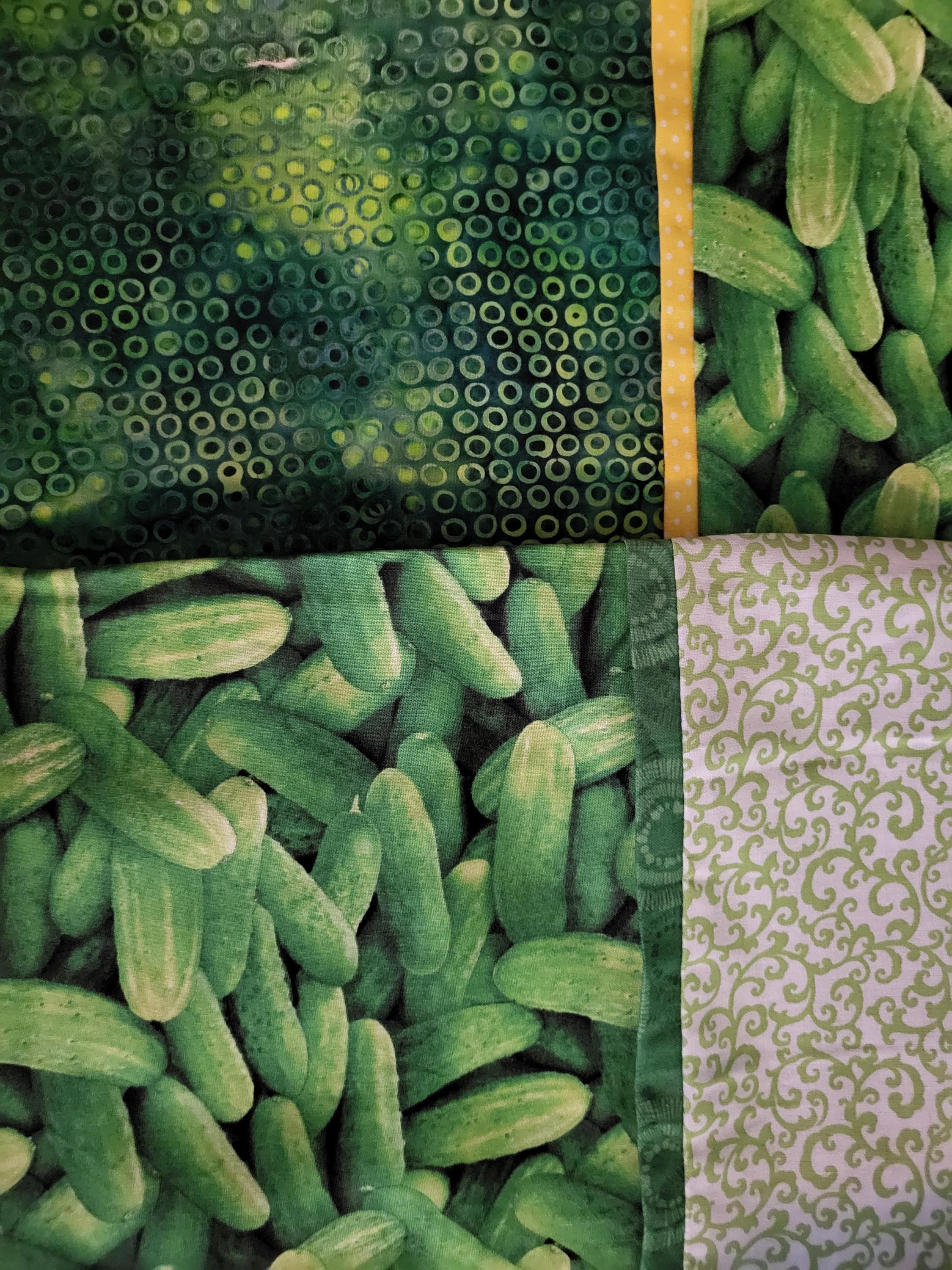 If you love pickles, you'll love this pickle fabric! This fabric features green pickles by Elizabeth Studios. It's perfect for quilting, sewing, crafting and more. You can use it to make pillows, aprons, bags, table runners, placemats and anything else you can imagine. This fabric is fresh and fun, just like pickles! Order yours today and get ready to pickle up your projects!