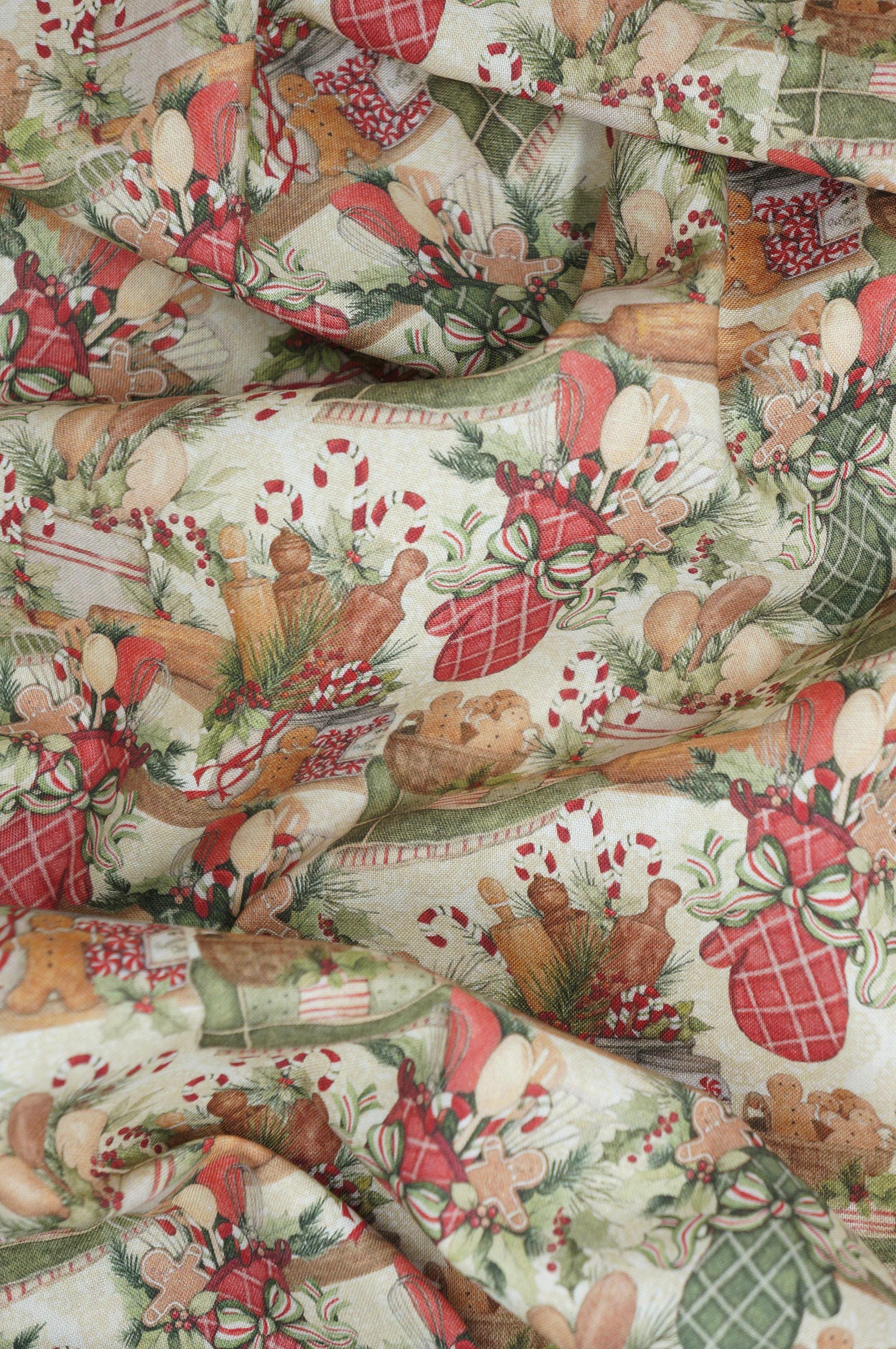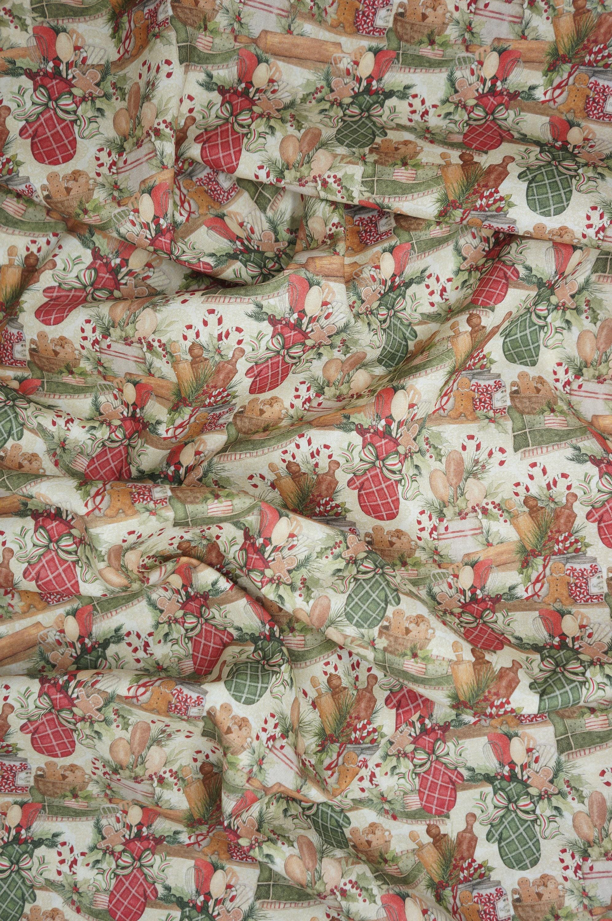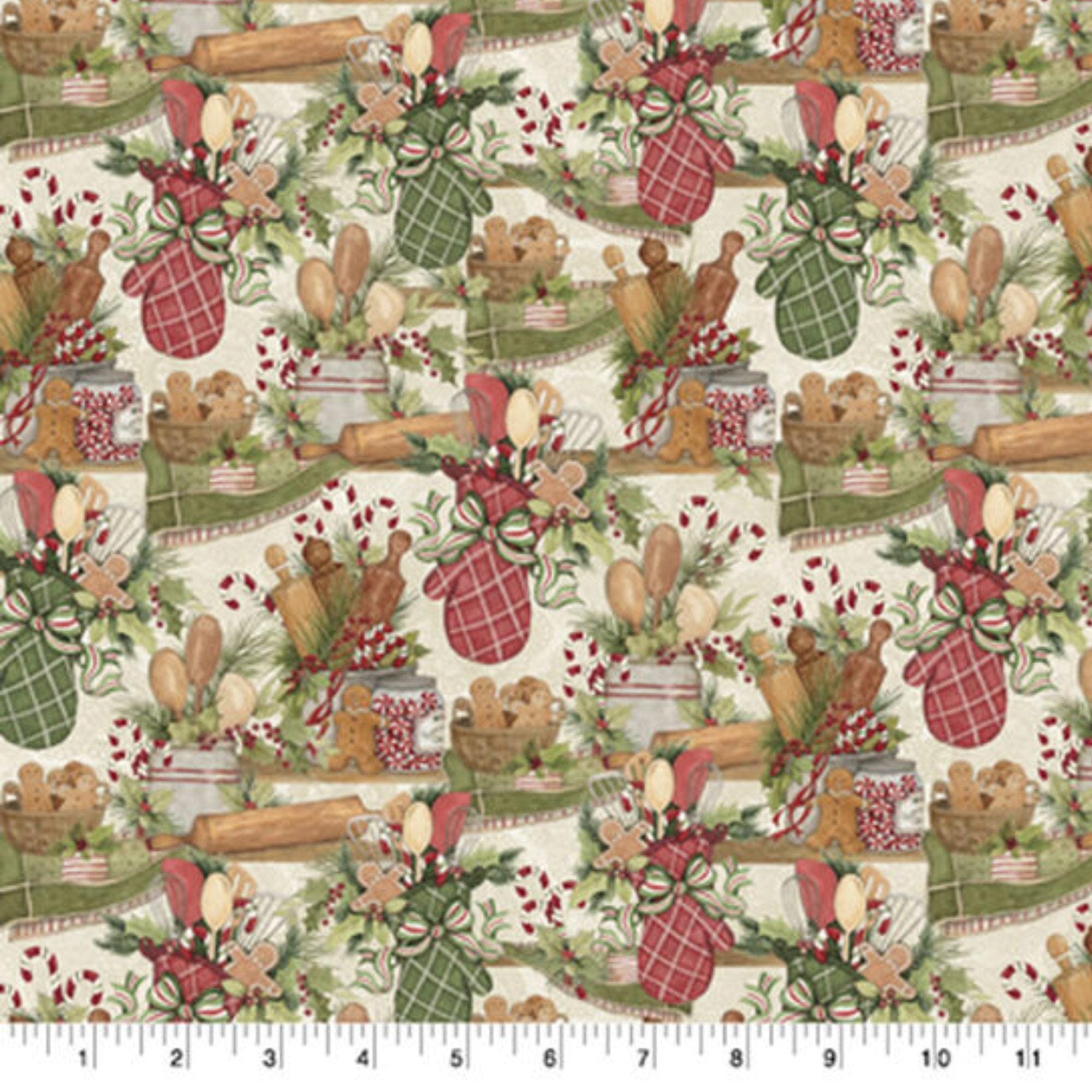If you love baking and decorating gingerbread cookies, you will adore this Christmas Baking Fabric. This festive fabric features a gingerbread kitchen scene with cute gingerbread people, oven mitts, candy canes, and more. The fabric is designed by Susan Winget for Springs Creative, a trusted brand in Novelty cotton fabrics. The fabric is made of 100% cotton and is perfect for quilting, crafting, home decor, and more. You can use this fabric to make aprons, table runners, placemats, pillows, and other cozy items for your kitchen. This fabric will add a touch of sweetness and joy to your holiday cooking and baking.