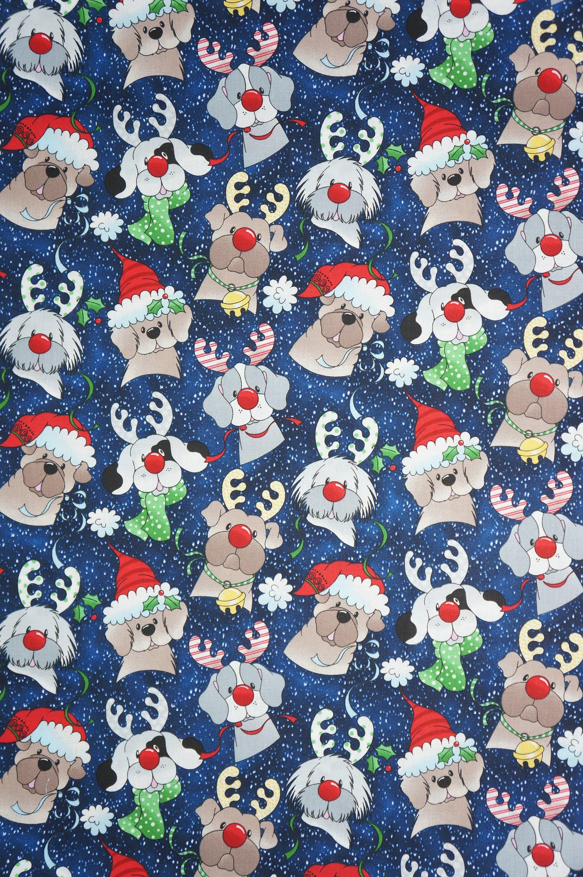 If you love dogs and Christmas, you will adore this festive fabric! This Christmas Reindeer Pups by Fabric Traditions features cute pups dressed up with reindeer antlers on a dark blue background with white flecks. This novelty cotton fabric is perfect for making quilts, pillows, stockings, ornaments, and more. You can also use it to wrap gifts for your furry friends or make them cozy outfits. This Reindeer Dog Fabric is a fun and cheerful way to celebrate the holiday season with your canine companions!
