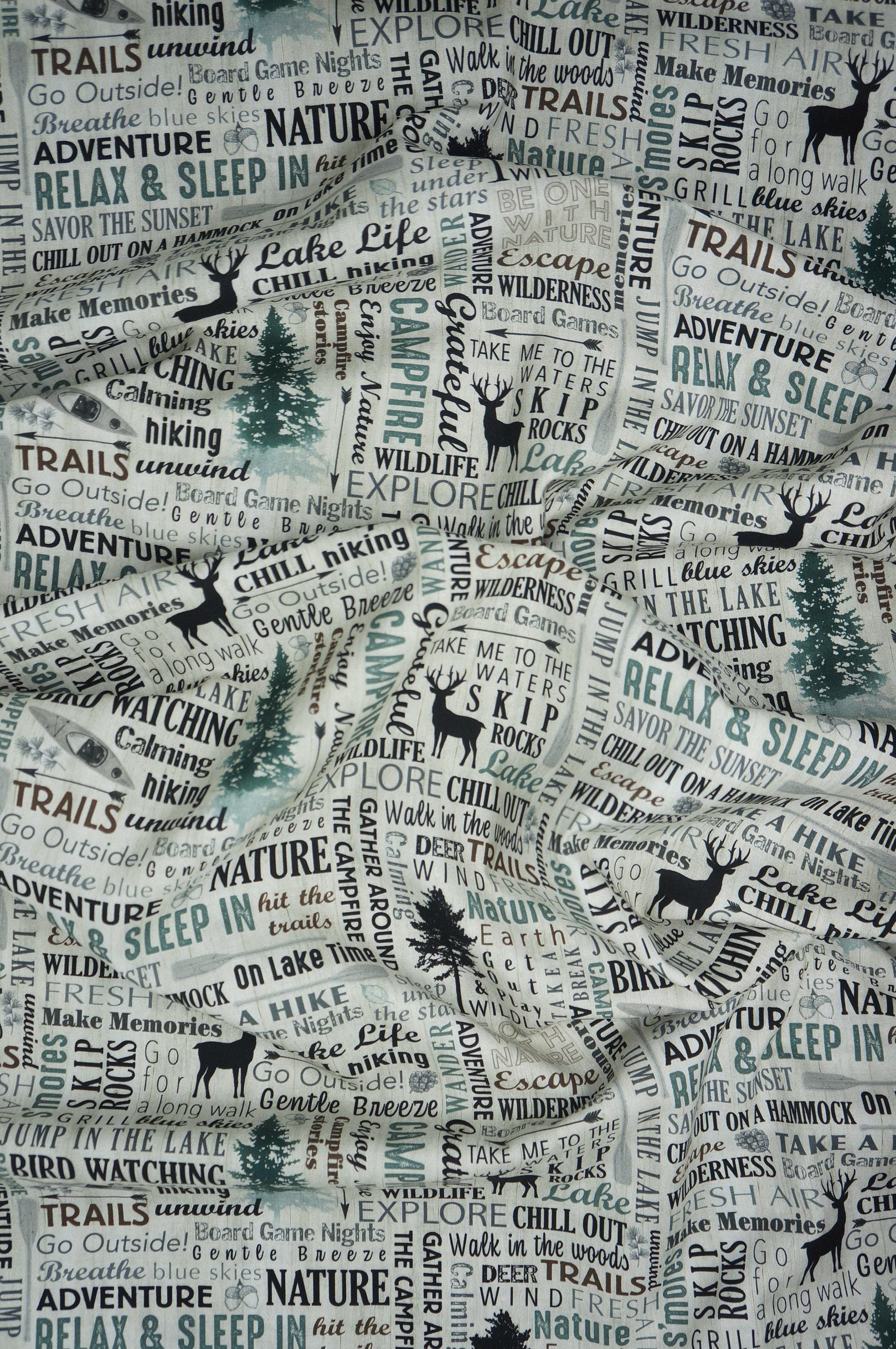 Transform your lake house haven into a cozy retreat with our enchanting Lake House Words Fabric! Designed by Timeless Treasures, this delightful quilting cotton fabric features charming lake house words on a soothing beige background adorned with subtle green and black accents of deer, trees and evergreens, bringing the serene beauty of lakeside living into your home décor or crafting projects. Whether you're stitching up cushions, quilts, or tote bags, this fabric embodies the essence of lakeside bliss. Dive into creativity and infuse your space with the tranquil vibes of the waterfront, making every day feel like a lakeside getaway.