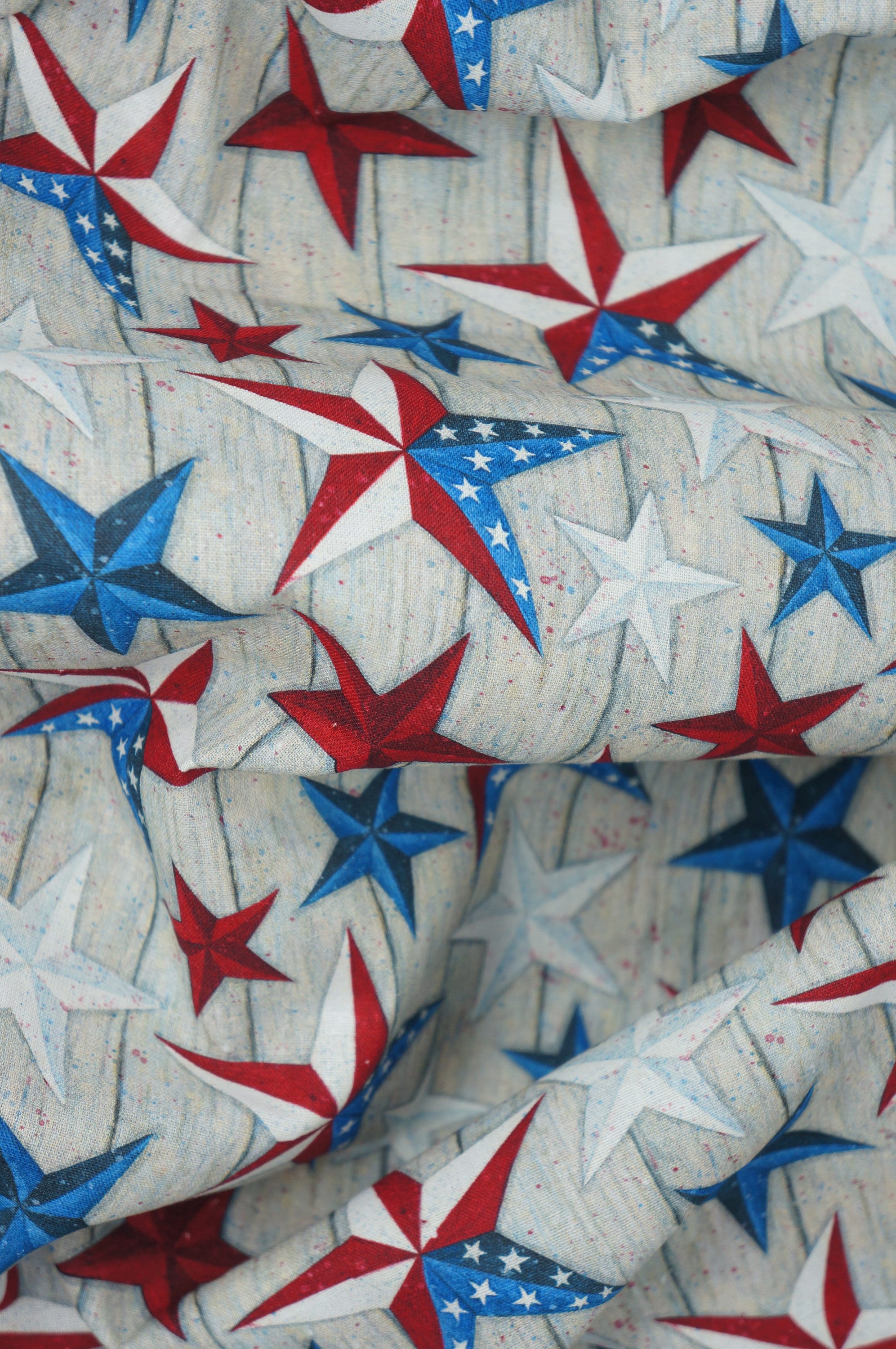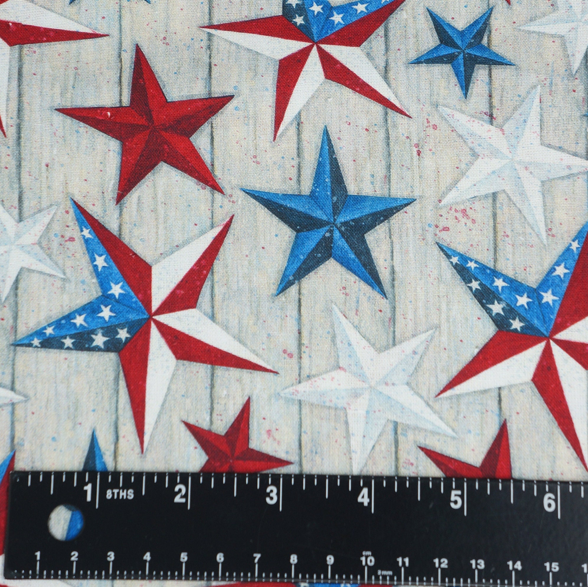Unleash your inner patriot with the stunning Patriotic Texas Stars Fabric! Designed by the renowned Susan Winget for Springs Creative, this novelty cotton fabric is a celebration of American spirit. Each yard bursts with vibrant red, white, and blue stars, proudly patterned across a backdrop of rustic farmhouse boards that evoke a sense of heartwarming nostalgia. Perfect for quilts, apparel, or charming home decor. Craft your way to a star-spangled creation today and let every stitch tell a story of heritage and pride!