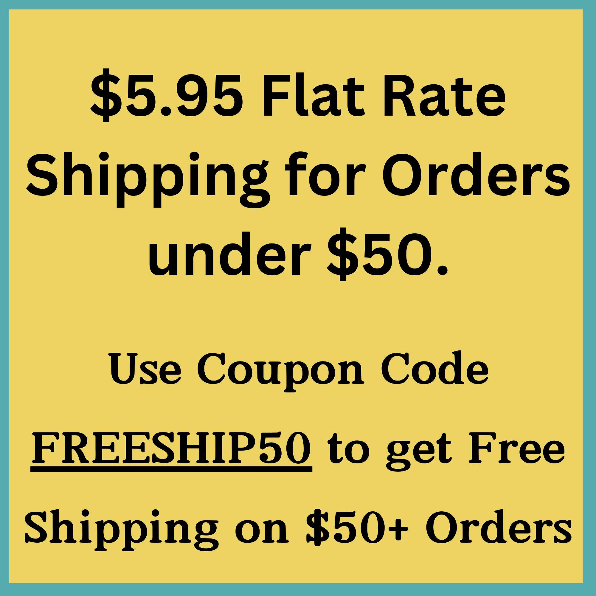 NEW!!! Flat Rate Shipping of $5.95. If you buy more than $49.99 shipping is FREE with coupon code FREESHIP50!