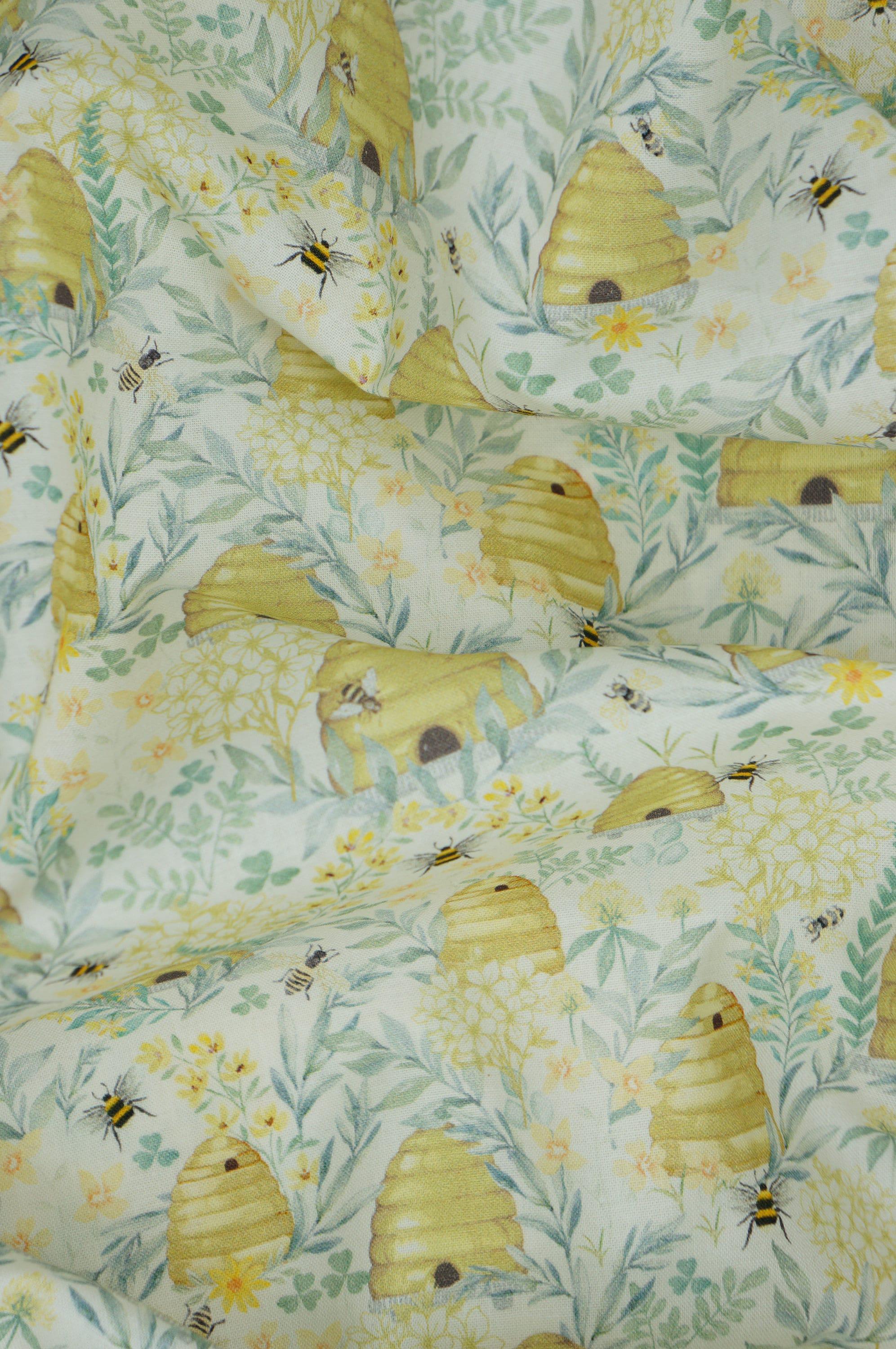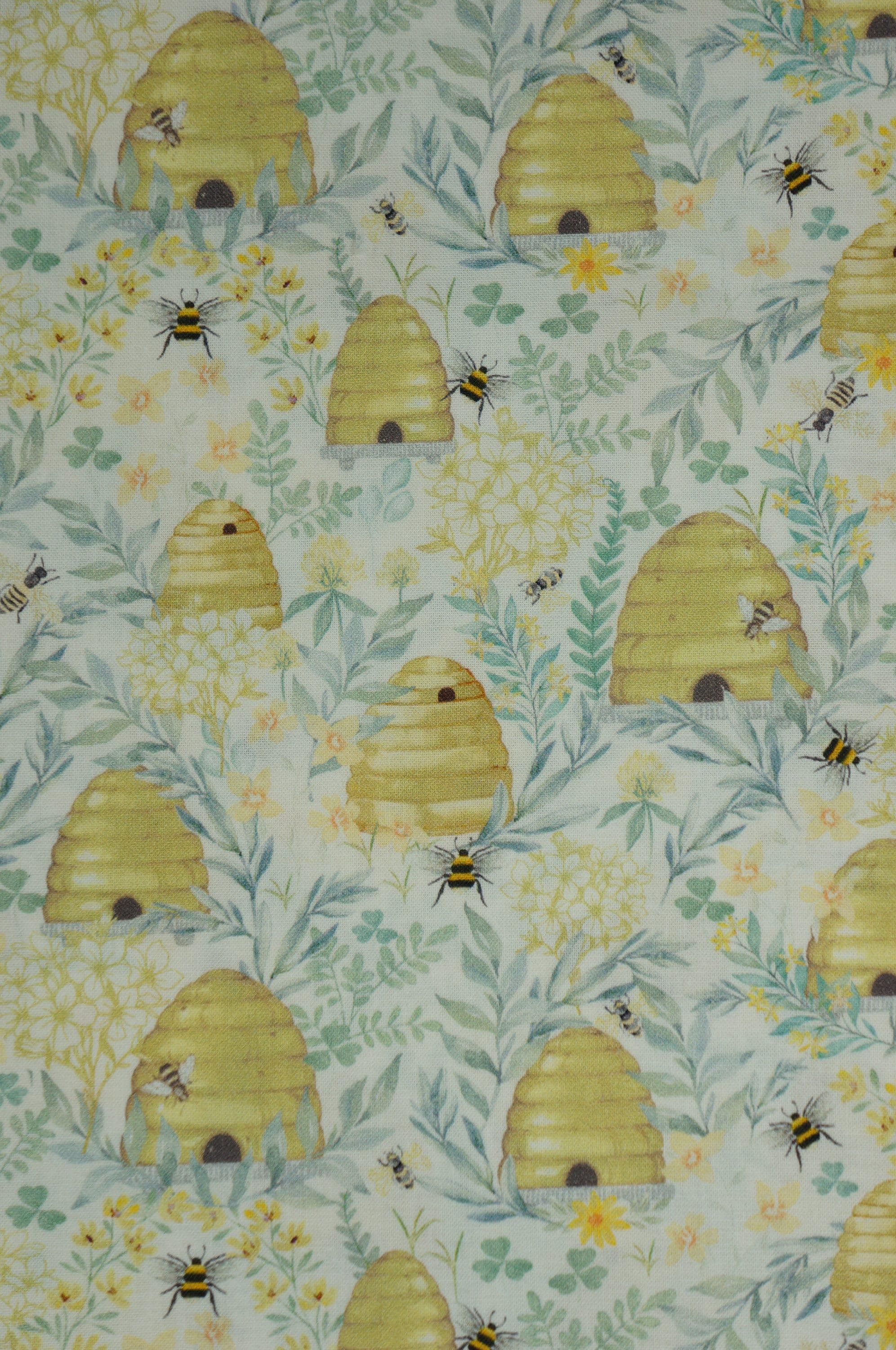 If you love bees and honey, you will adore this Honey Bee Fabric from the Home Sweet Home Collection by Timeless Treasures called Beehive Grove. This digitally printed quilting cotton fabric features a charming design of sage and yellows on a cream background, with cute details like bees, a beehive and floral accents. This fabric is perfect for quilting, sewing, crafting and more. It is soft, durable and easy to work with. Add some sweetness to your projects with this Honey Bee Fabric!