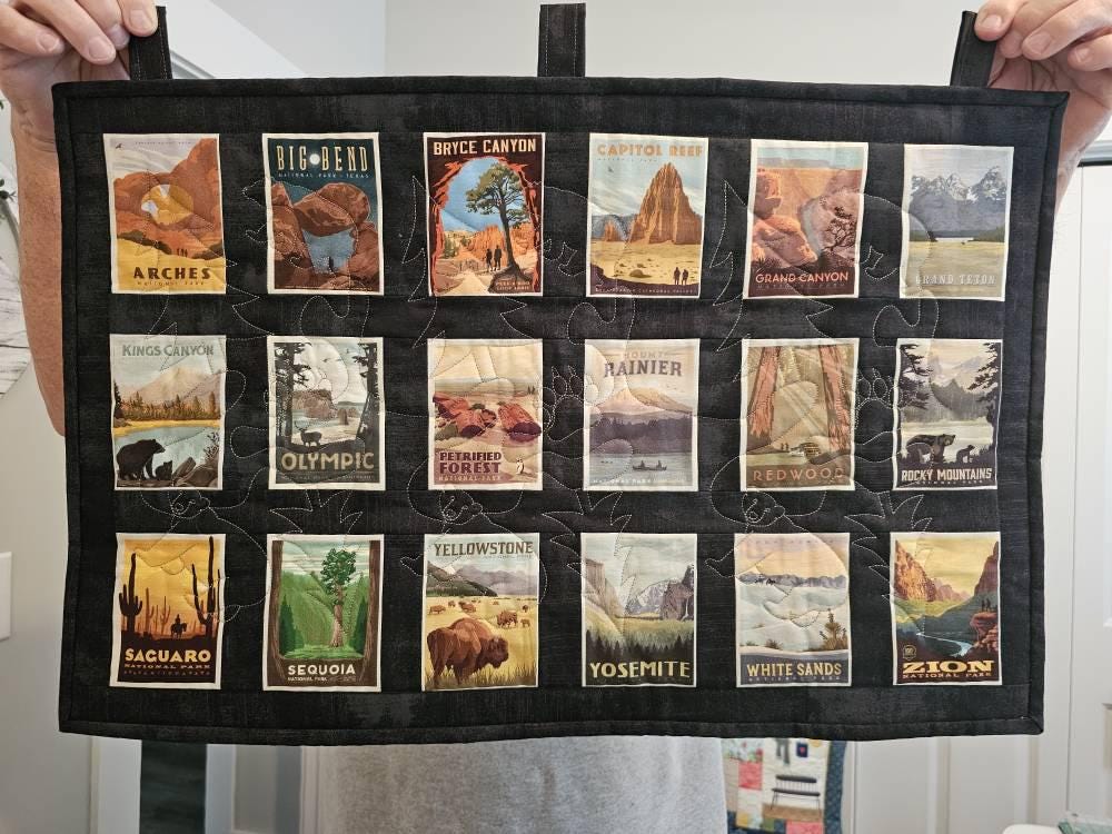 *All 63 National Parks are shown on the fabric. Please note that the image is missing New River Gorge National Park. It is on the actual fabric that you will receive. The last row of posters shows repeats of Acadia, Biscayne, Bryce Canyon, Crater Lake, Death Valley, Grand Canyon and Kings Canyon national parks but the scene on their poster is different. Each poster design is only shown one time.