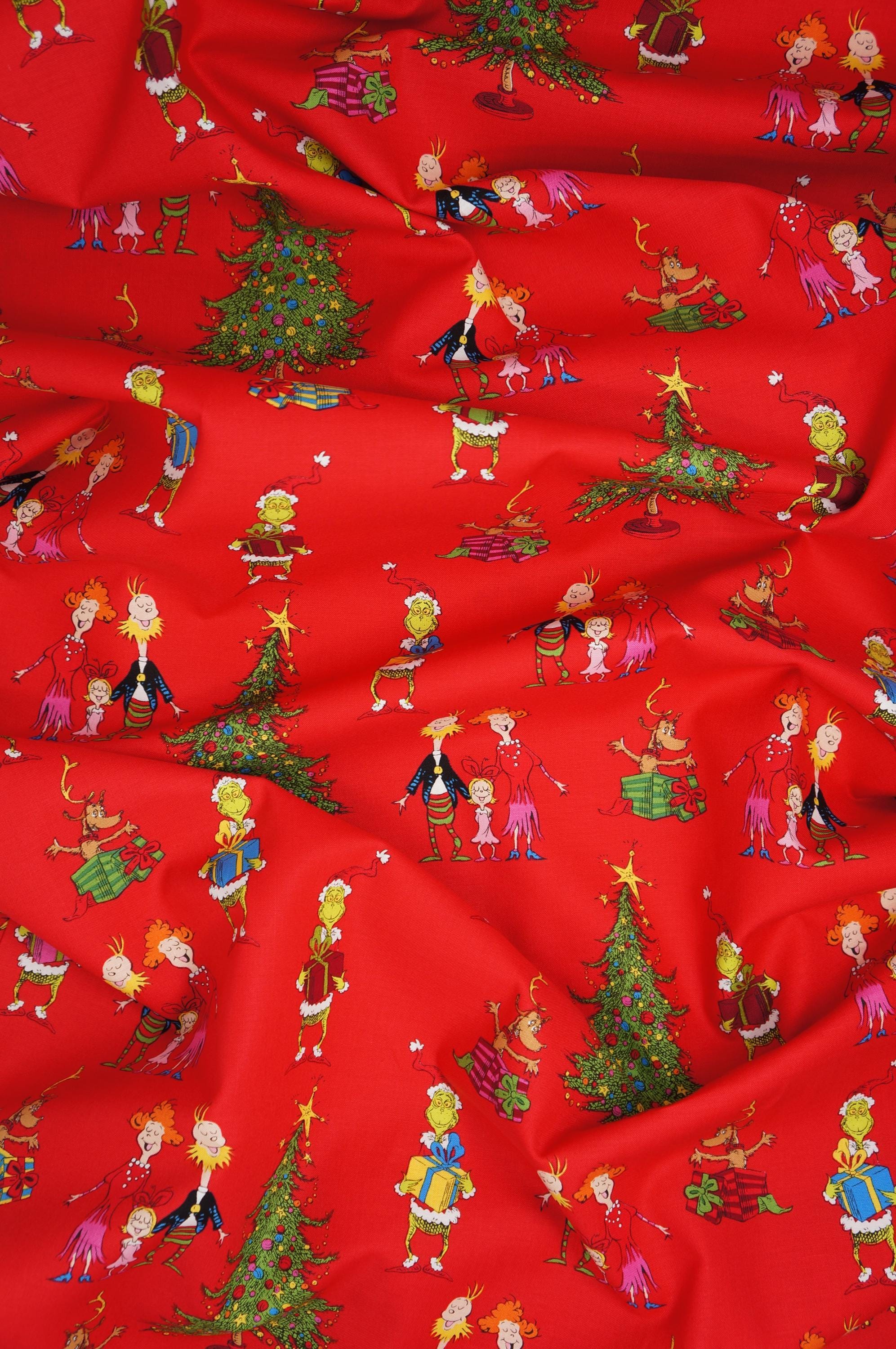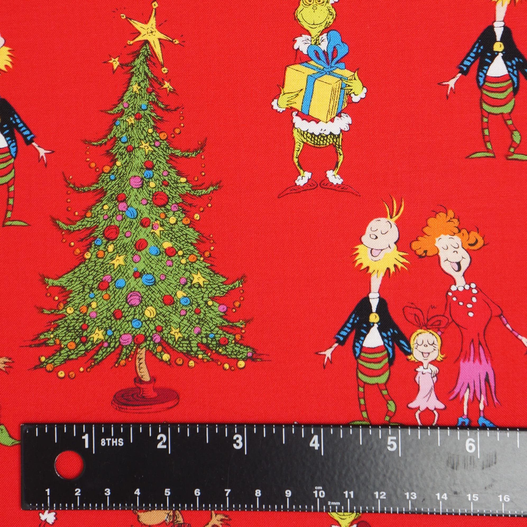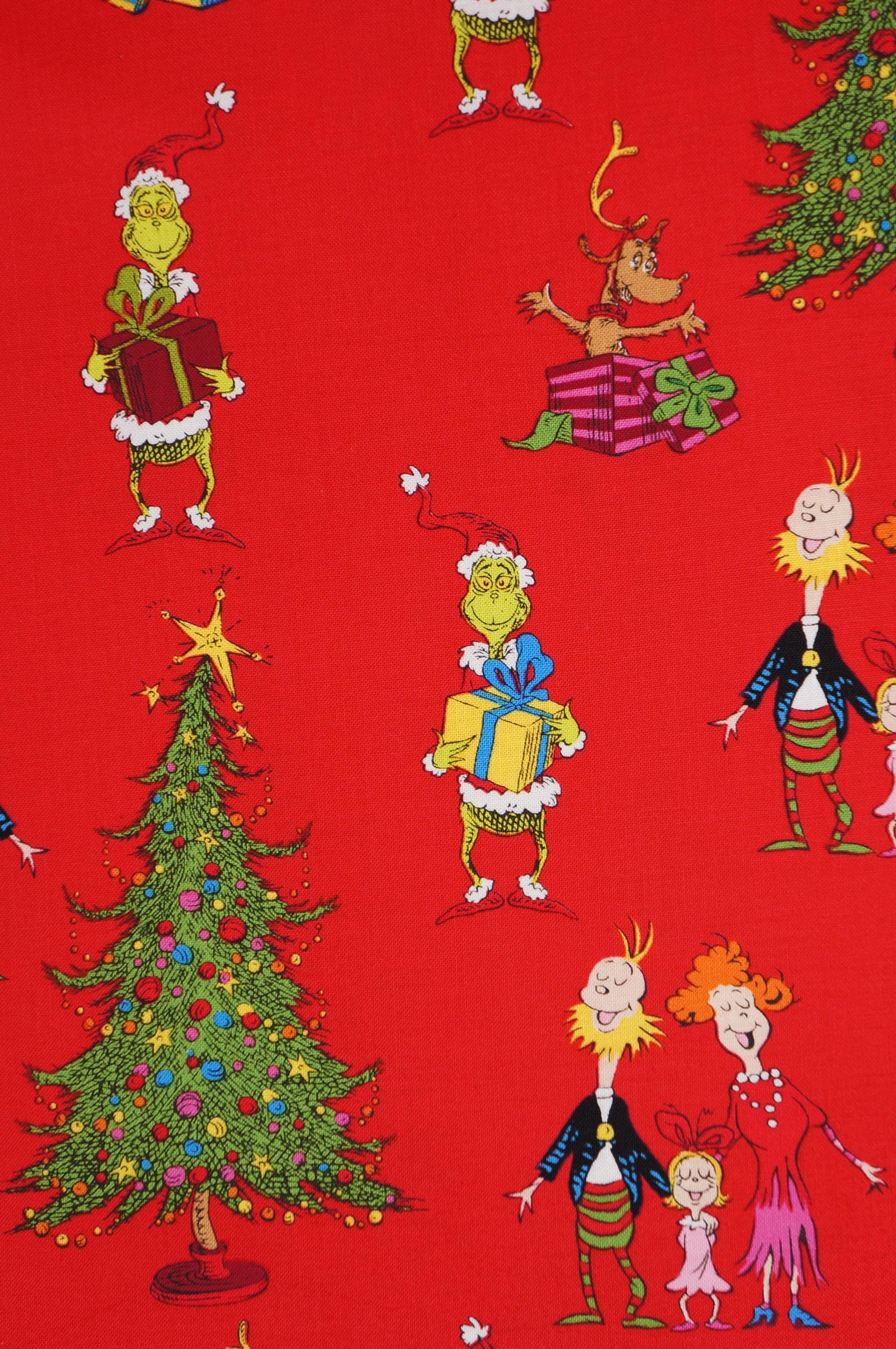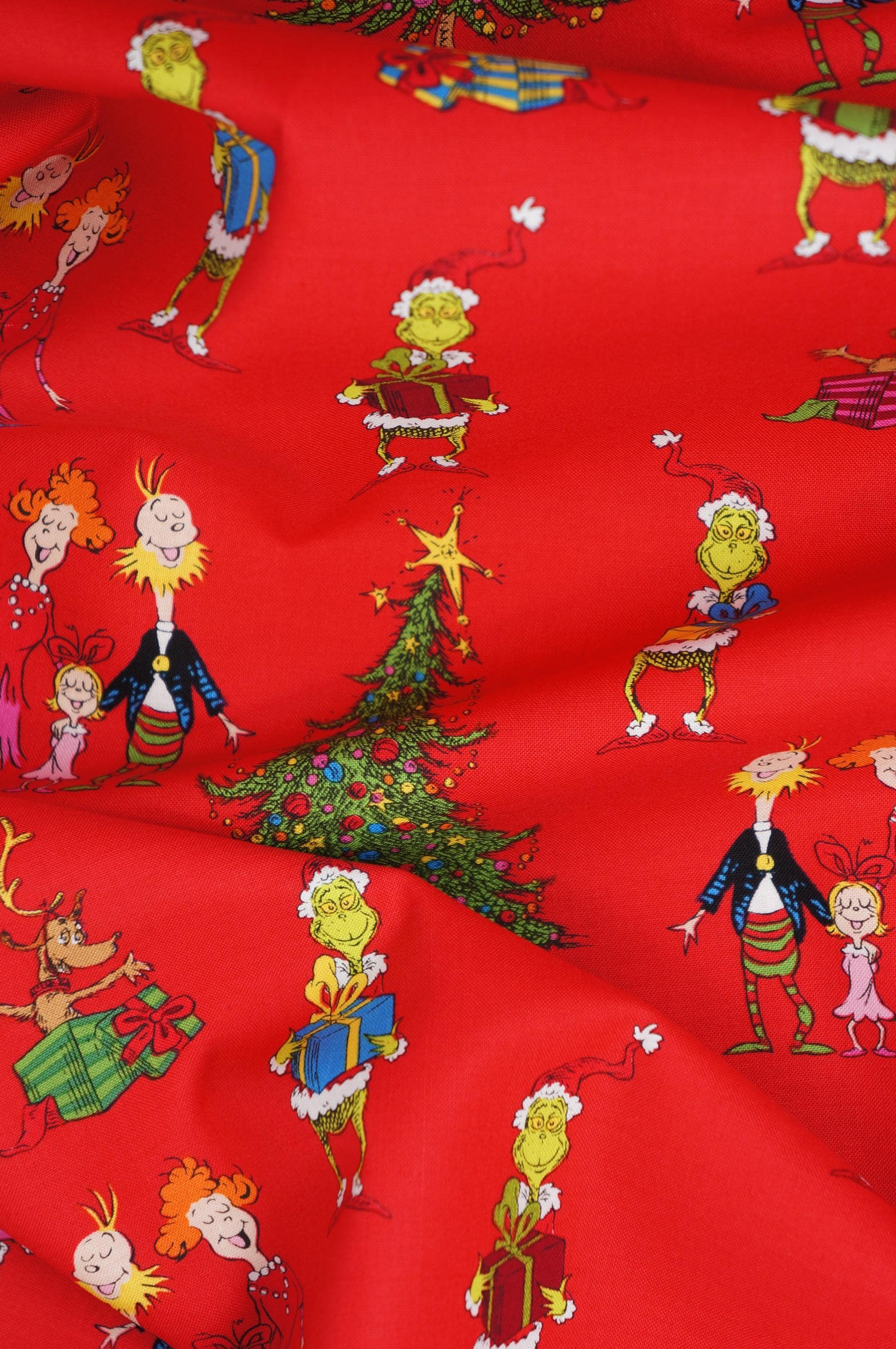Are you looking for a festive and fun fabric to make your holiday crafts? Look no further than this Red Grinch Quilting Cotton Fabric from How the Grinch Stole Christmas Collection Licensed by Robert Kaufman. This fabric is soft, high quality, durable, and colorful, with Whos from Whoville, the Grinch and Max from the classic Dr. Seuss story featured on it on a bright red background. You can use it to make quilts, pillows, stockings and more! The Grinch Fabric is sure to bring a smile to your face and a touch of whimsy to your home. Order yours today and have a Merry Grinchmas!