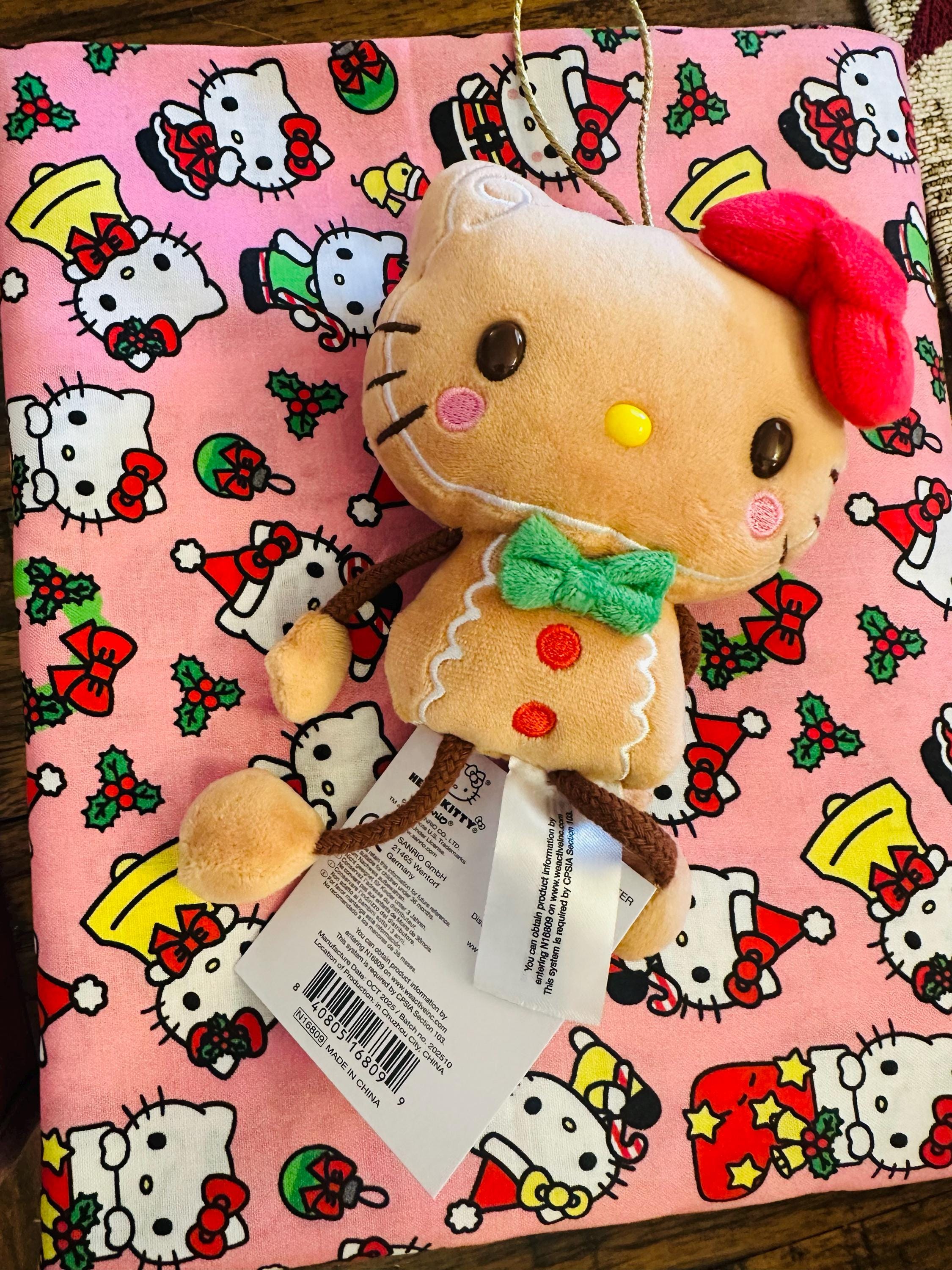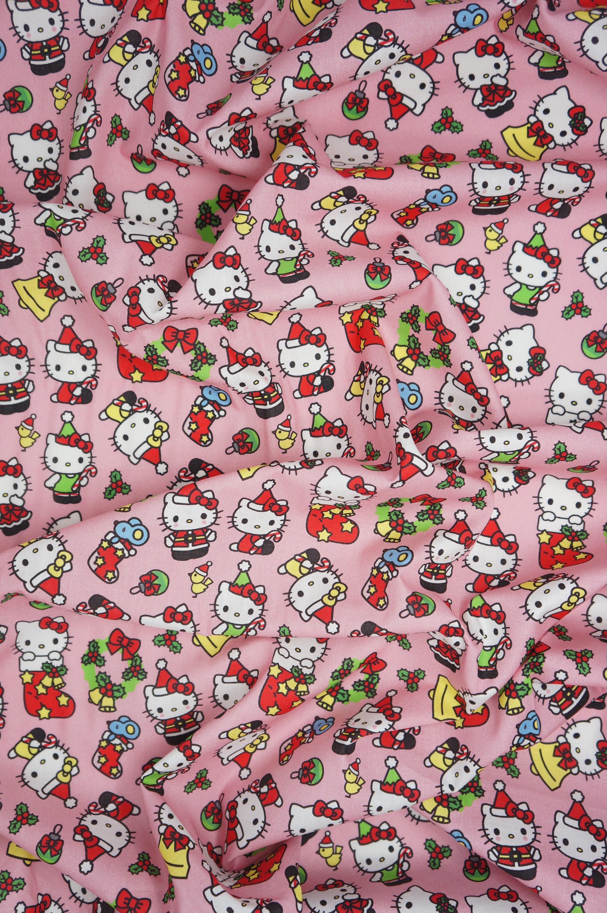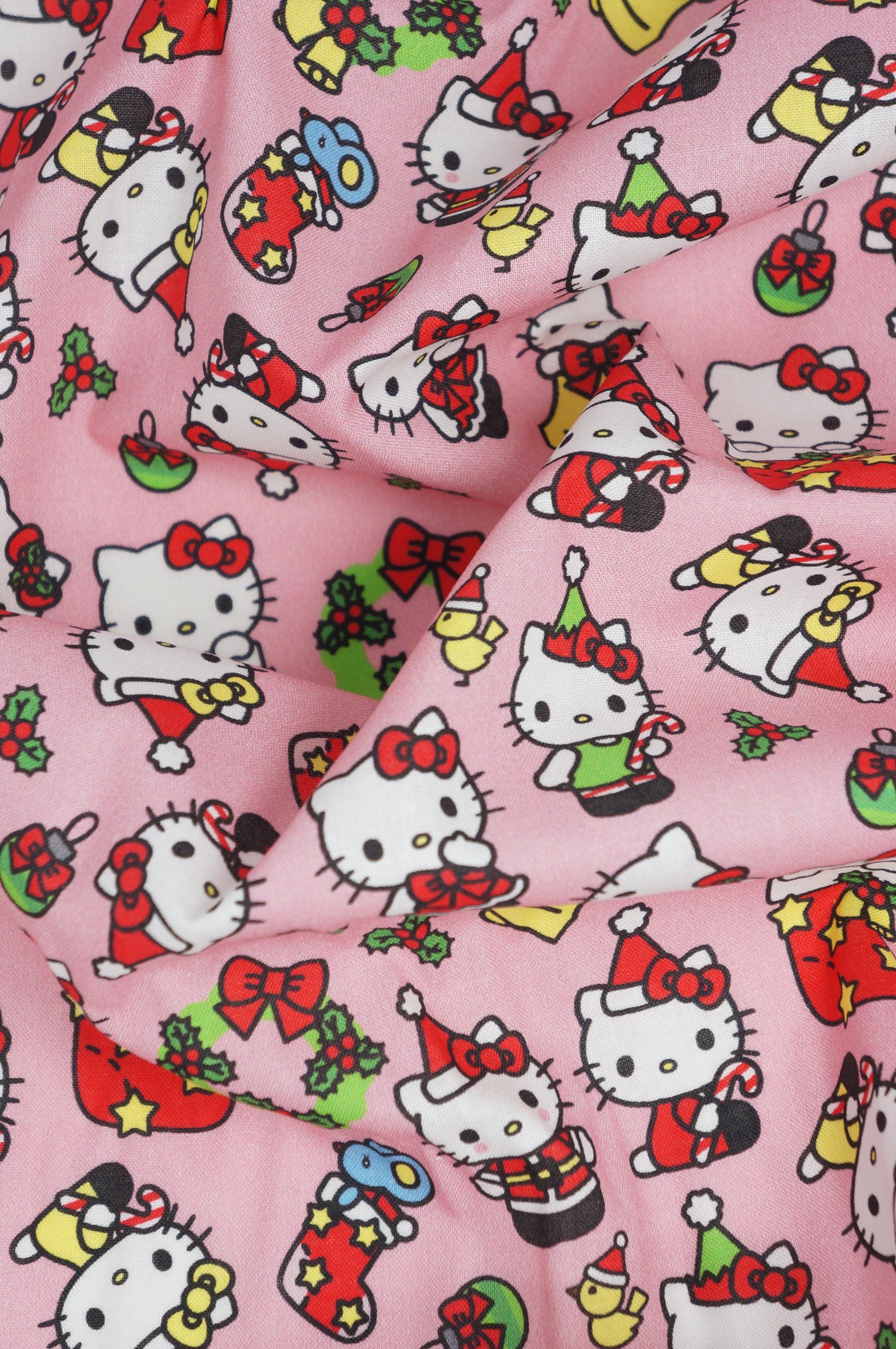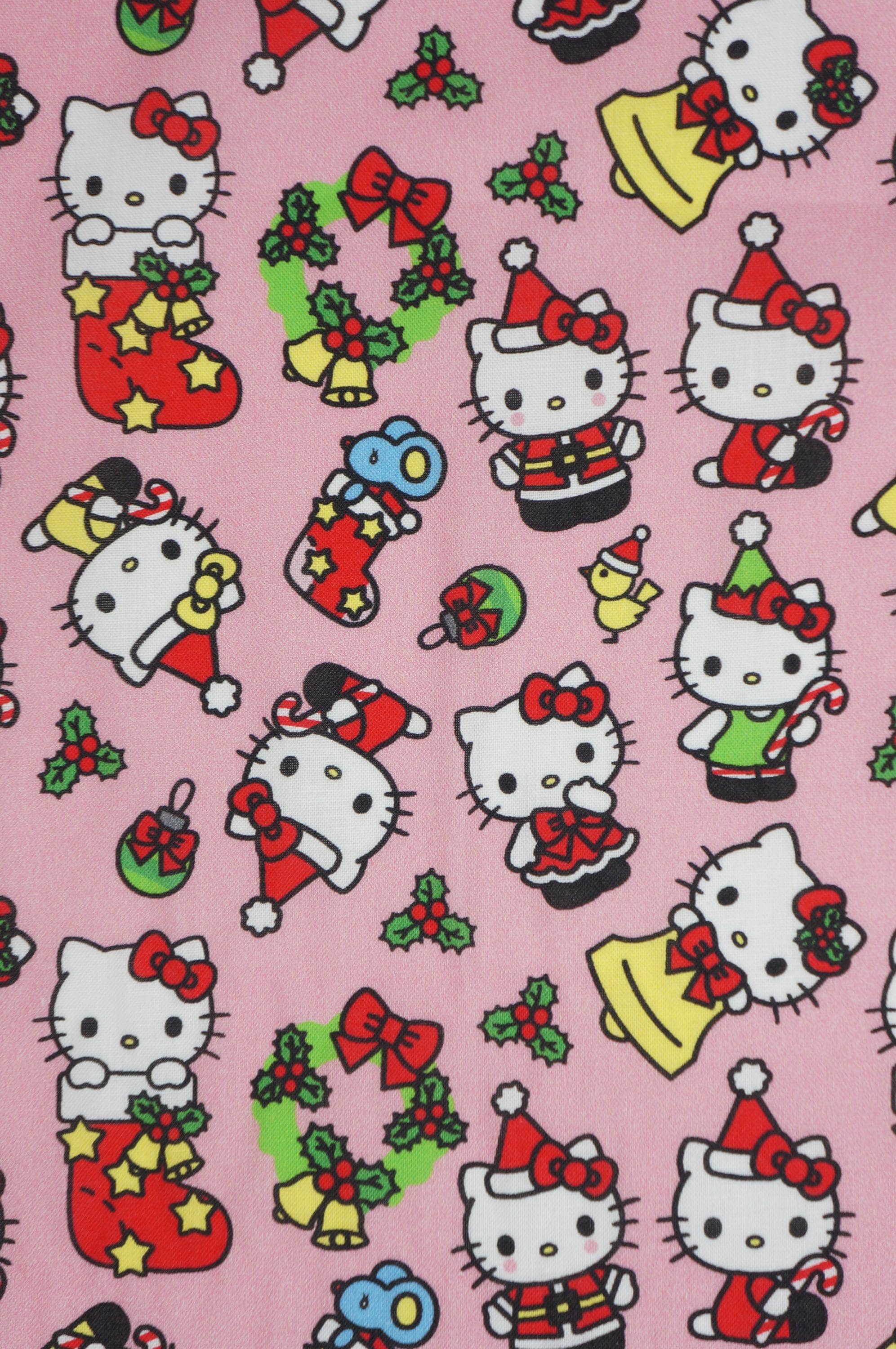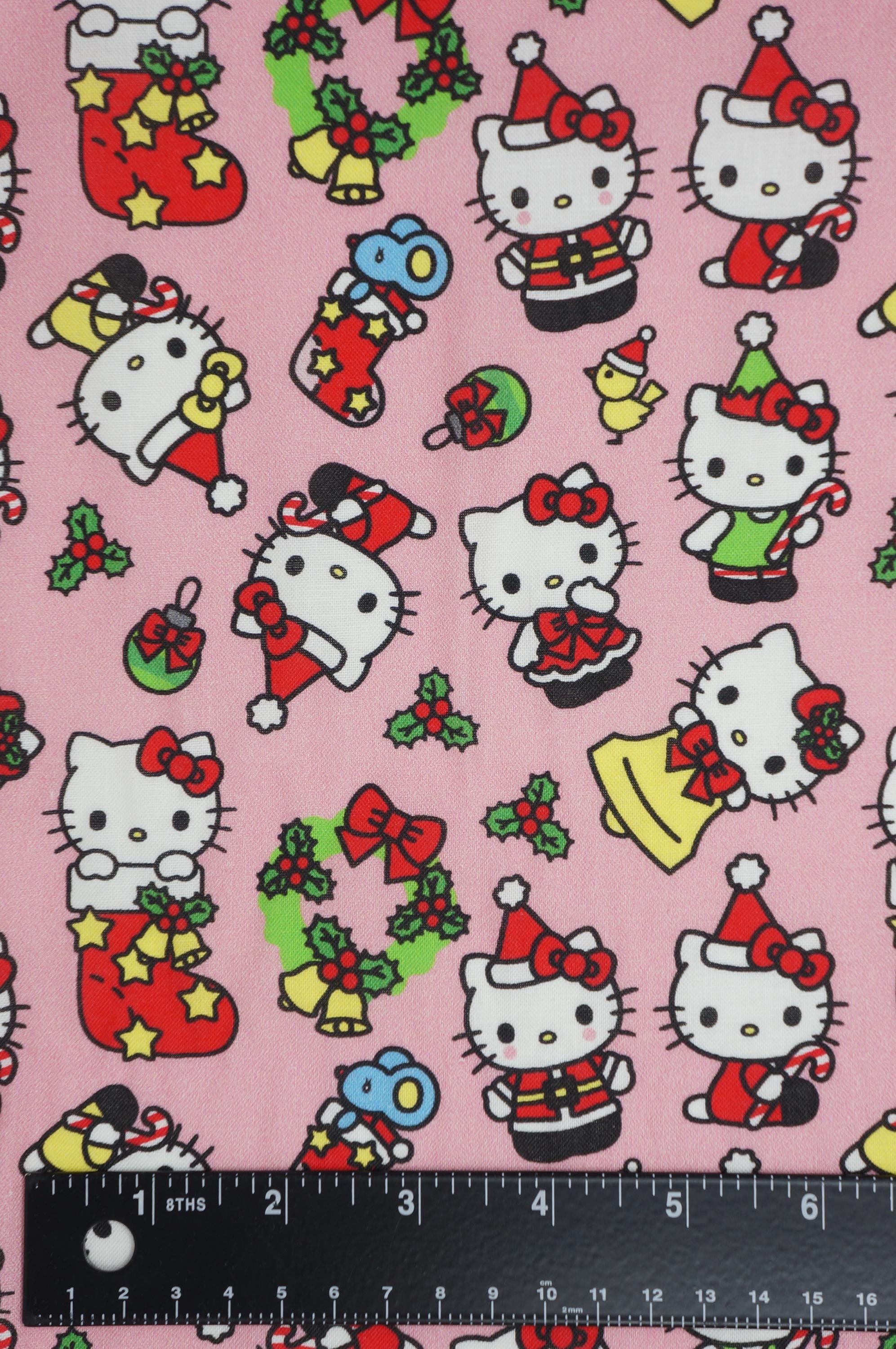 This is a fun and adorable fabric for Christmas! It's the Hello Kitty and Friends Christmas on Pink Novelty Cotton Fabric licensed by Sanrio for Springs Creative. You'll love the cute design of a tossed Hello Kitty dressed in her Christmas dress, as an elf, as Santa, and as a bell. She's surrounded by Christmas wreaths, holly and a couple of her animal friends on a pink background. This fabric is perfect for making stockings, decorations, quilts, and more. It's soft and durable, and it has the official Sanrio license. Don't miss this amazing fabric for your Christmas projects!