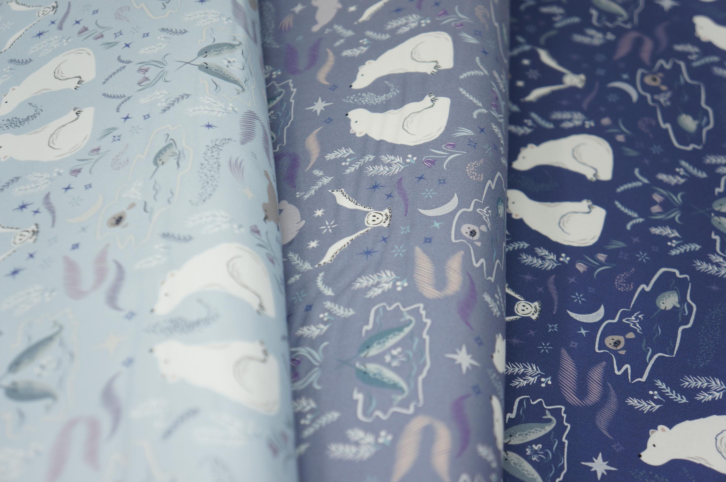 *This fabric features silver metallic accents in the stars, moon and the ice around the narwhals and seals.