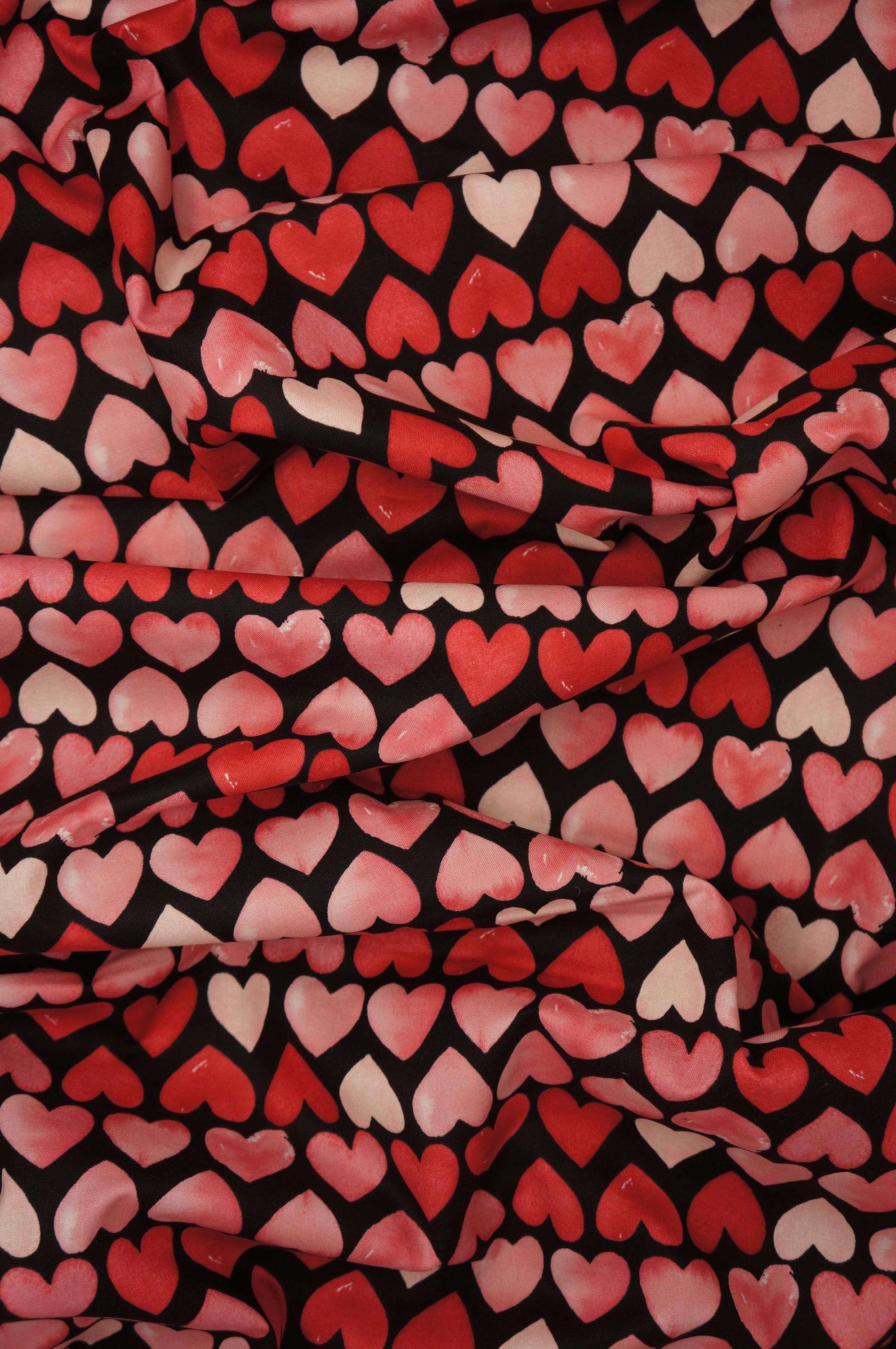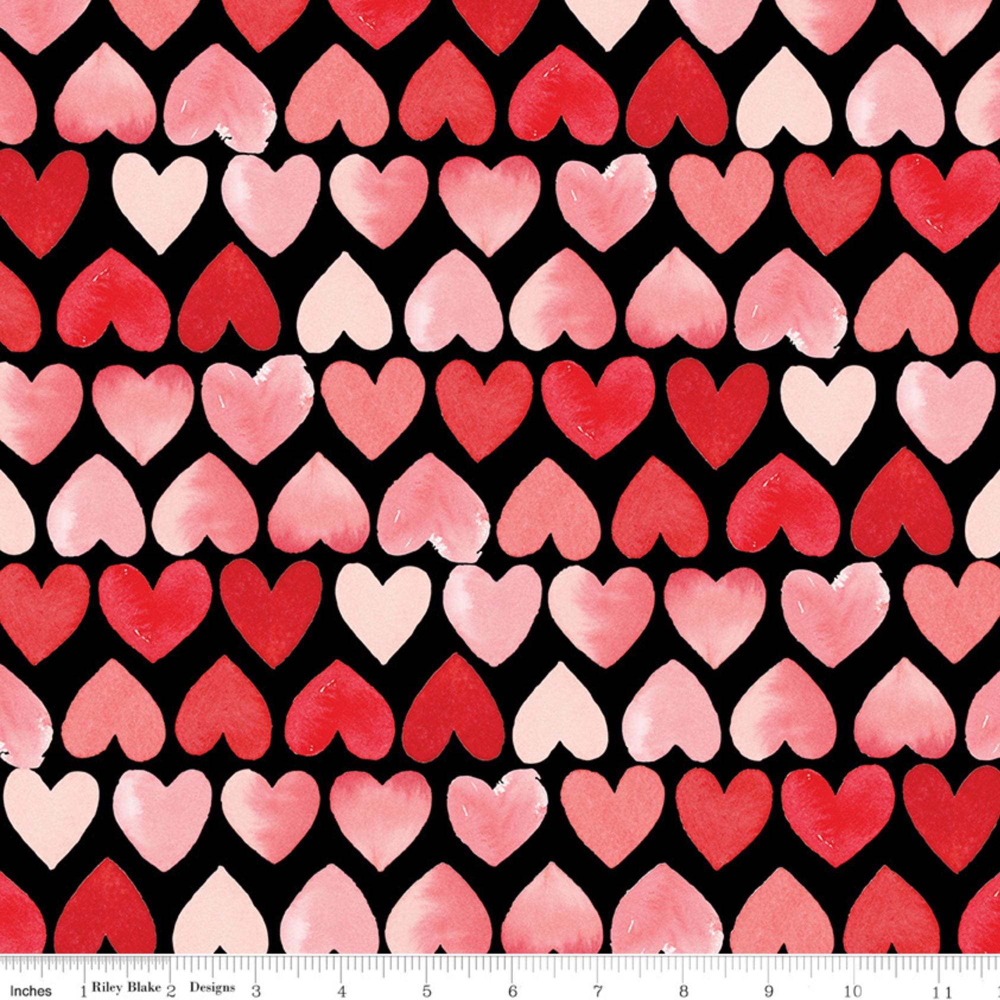 Fall in love with this stunning Watercolor Hearts Quilting Cotton from Riley Blake Designs, featuring a whimsical creation by Echo Park Paper Co.! Perfect for adding a romantic flair to your next project, this high-quality fabric showcases vibrant red and pink watercolor hearts floating horizontally across the width of a rich black background. Whether you're creating something special for Valentine's Day, a sweet gift, or a lovely accent piece, this fabric is guaranteed to steal hearts! Soft, durable, and perfect for quilting, crafting, and more, let your creativity bloom with this delightful fabric. Don’t miss out—your next masterpiece awaits!