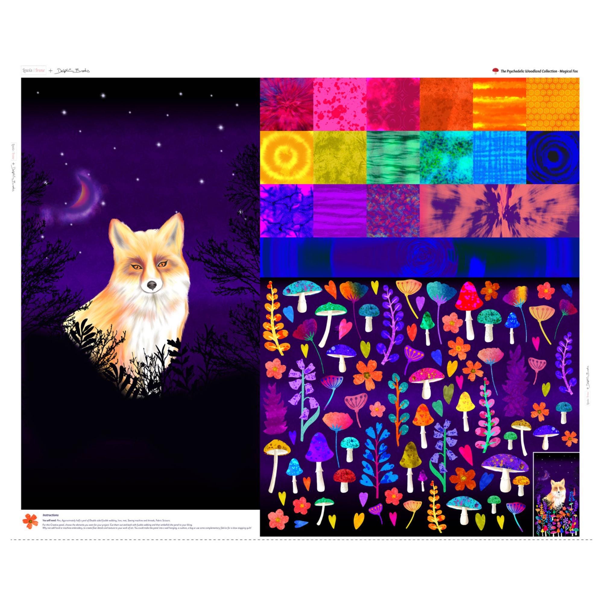 Create this colorful Magical Fox applique using an innovative panel created by Delphine Brooks for Lewis & Irene. The digitally printed panel is approximately 36"x43" and creates a 17.5" by 32.5" finished piece. Each panel has a selection of elements - abstract squares and flora motifs, for you to choose. Cut them out, back them with fusible webbing and embellish the panel to your liking. The panels can be further enhanced with hand or machine embroidery. All of the fabric required is printed on each individual panel as well as the main piece to ‘fill’ with the fabric as desired. Comprehensive instructions are also written on each of the panels along with an image showing a suggested finish.