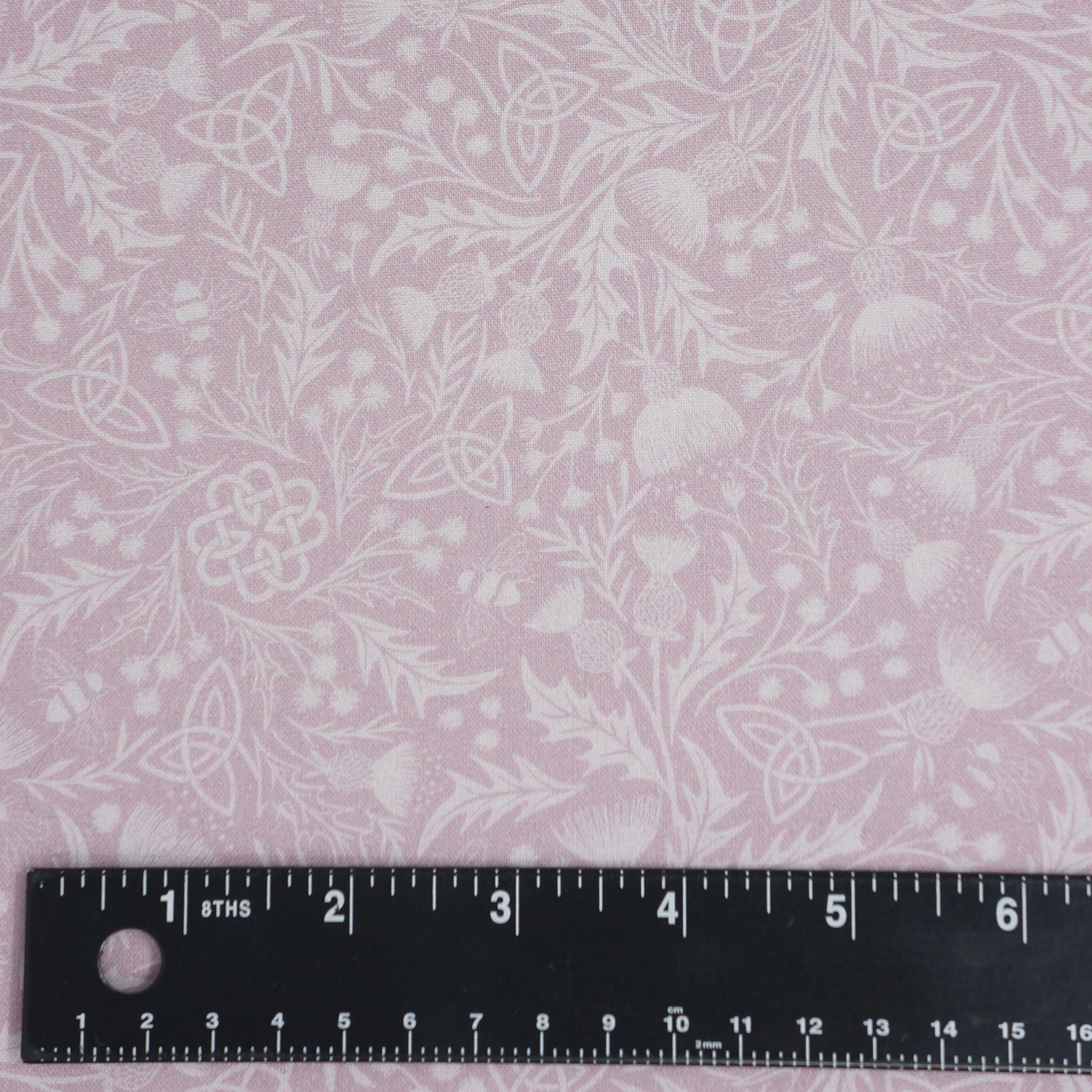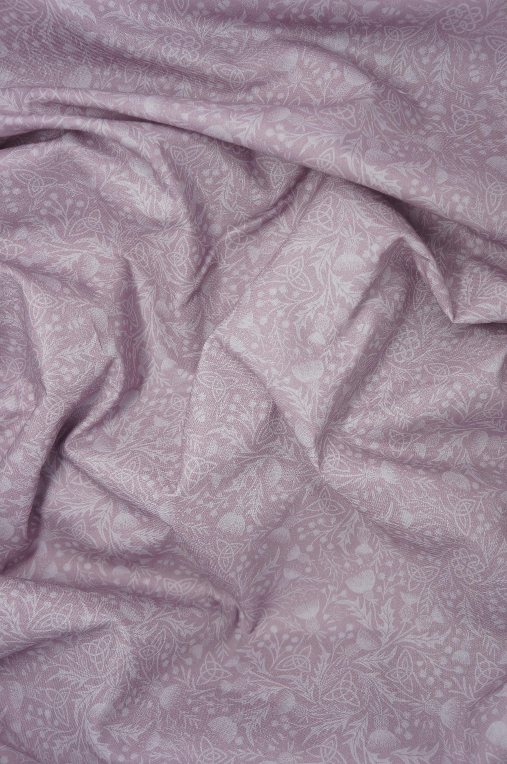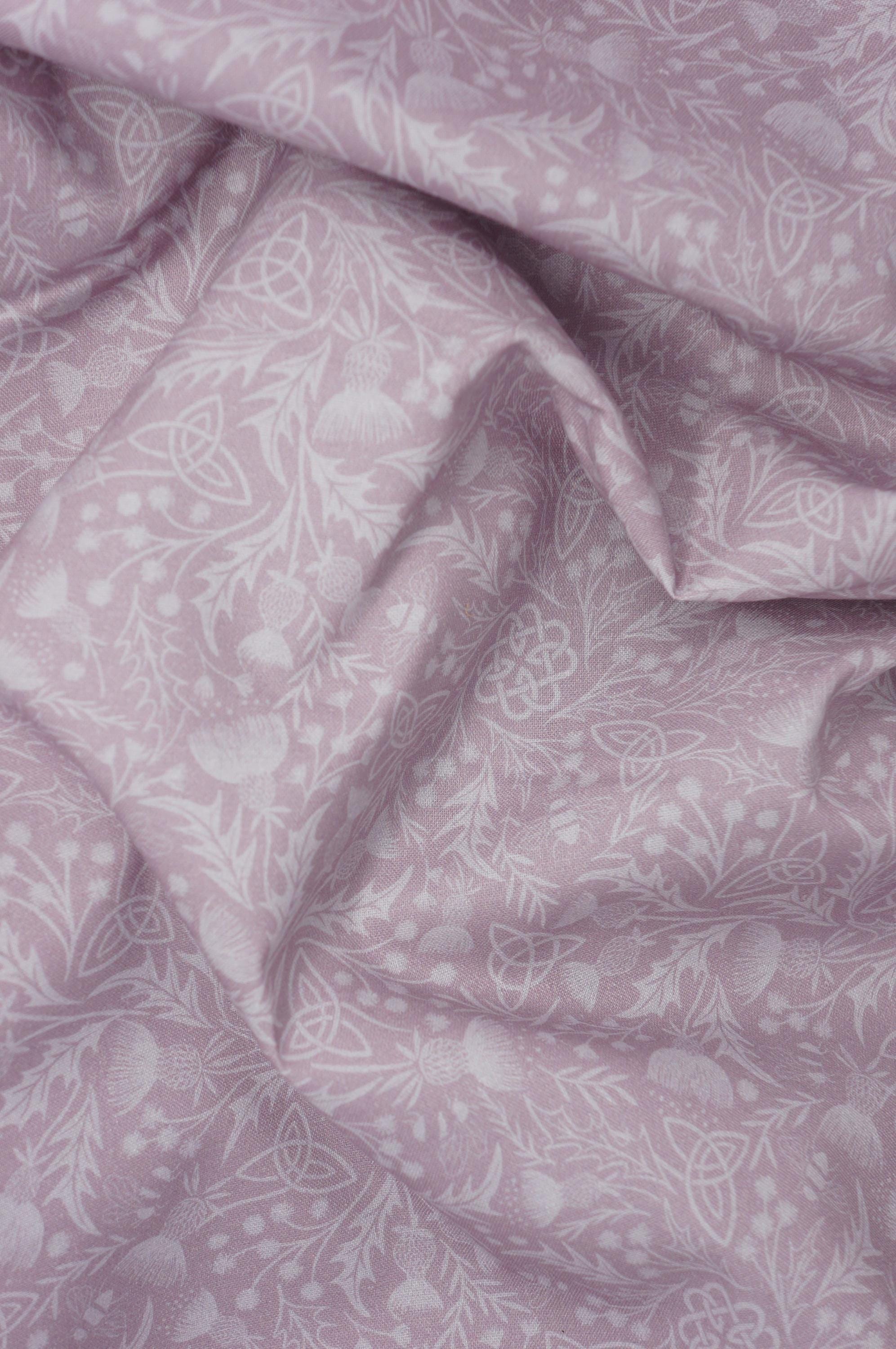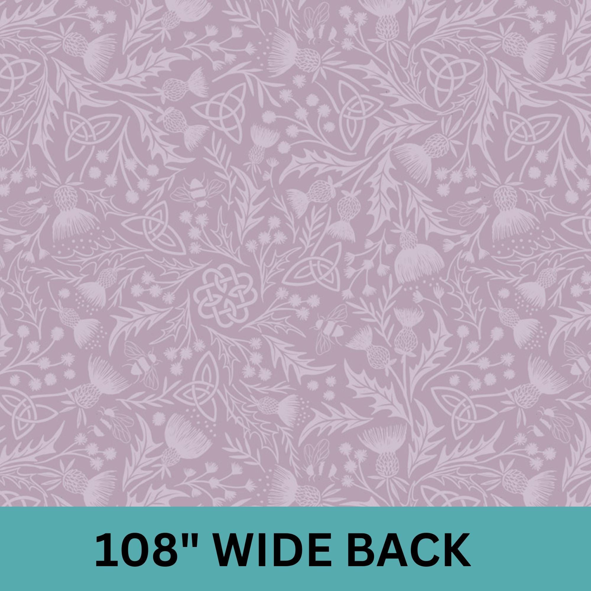 Introducing the stunning "Mono Thistle on Light Lavender" by Lewis and Irene—a must-have for any quilter or home decor enthusiast! This 108" wide quilting cotton fabric boasts a dreamy tone-on-tone design, featuring intricate Celtic symbols, thistles, wildflowers, and charming bees on a soft lilac background. Perfectly suited for quilt backings or adding a touch of elegance to your home projects, this high-quality cotton is as versatile as it is beautiful. Whether you’re crafting heirloom-quality quilts or refreshing your living space, this fabric brings a magical, Celtic-inspired touch to any creation!