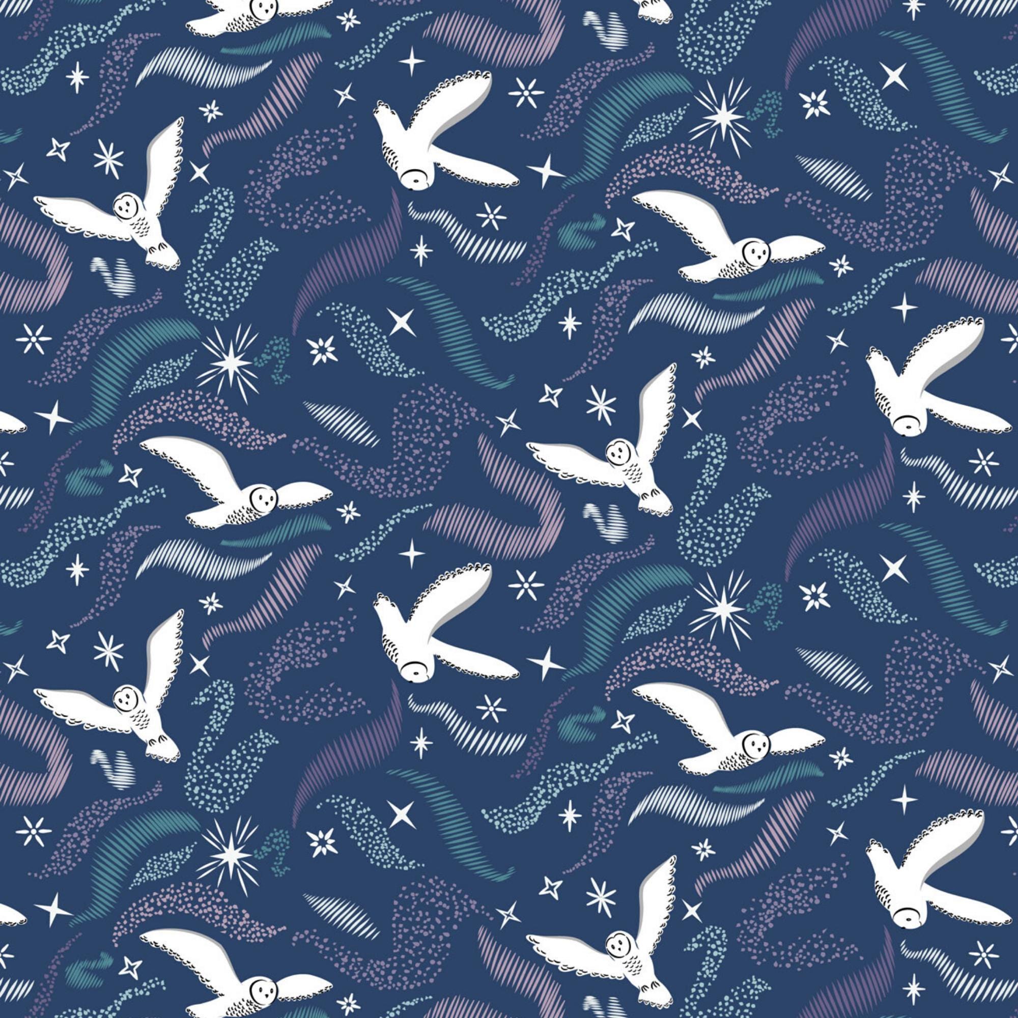 Introducing the Arctic Animal Quilting Cotton Fabric from the True North Collection by Cassandra Connolly – a whimsical, nature-inspired masterpiece perfect for your next quilting project! This enchanting fabric captures the beauty of the Arctic, featuring flying owls all set against a serene light midnight blue background. Delight in the magical northern light flourishes and twinkling stars that bring the sky to life. Crafted from high-quality cotton, this fabric is not only soft and durable but also an absolute dream for quilting, crafting, and more. Add a touch of Arctic charm to your creations today!