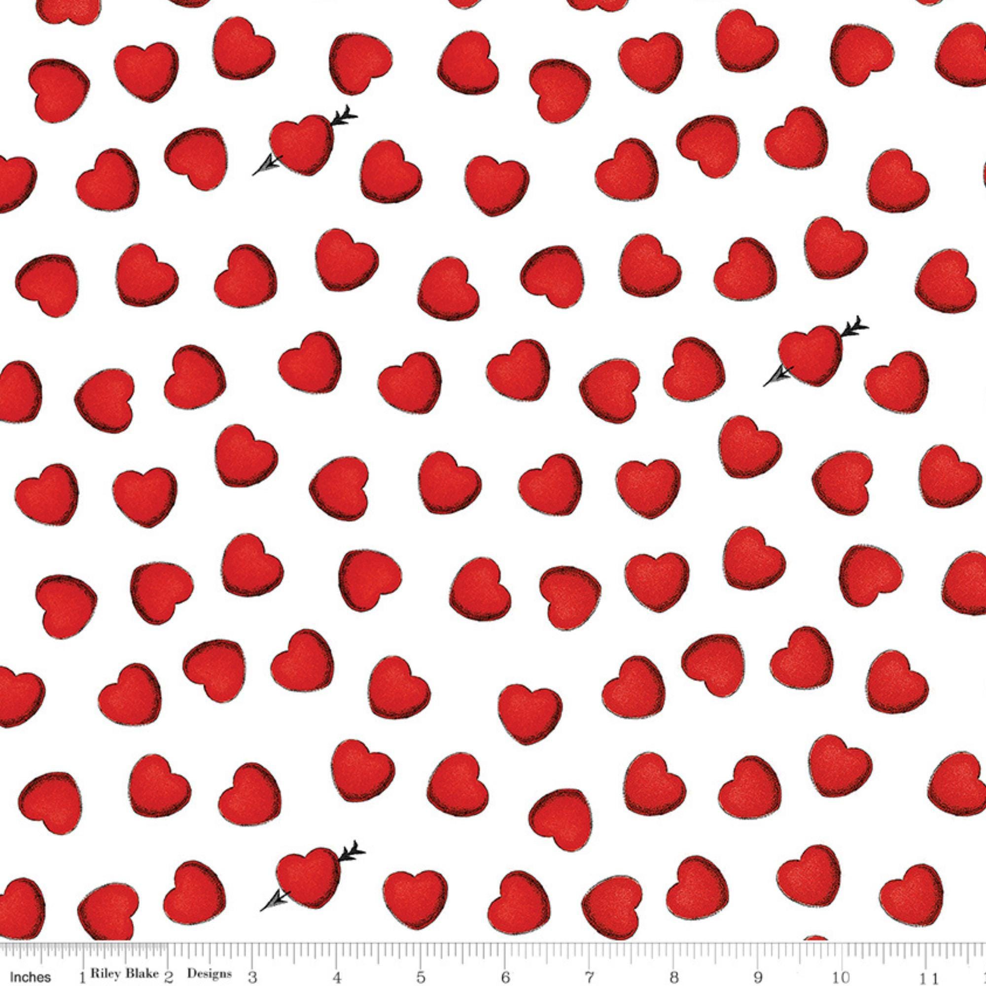 Elevate your creativity with our Heart Toss on White fabric from the All My Heart collection by J. Wecker Frisch for Riley Blake Designs. This versatile quilting cotton is perfect for quilting, apparel, and home decor. The design features tossed hearts on a white background. Some of the hearts even have thin arrows through them. Ideal for Valentine's Day projects and beyond, this high-quality fabric ensures durability and a soft feel. Sparkle and shine with Riley Blake – order now and let your imagination soar!