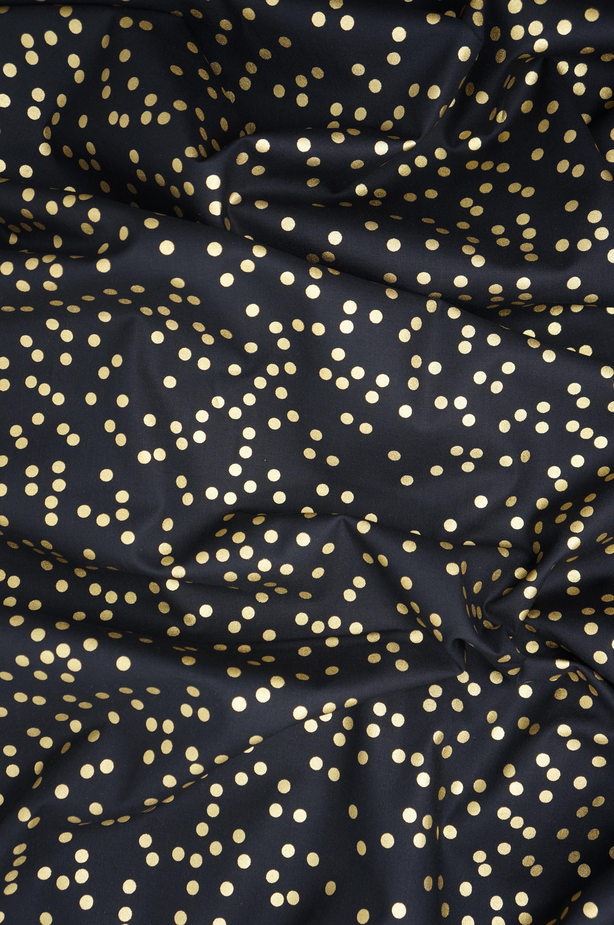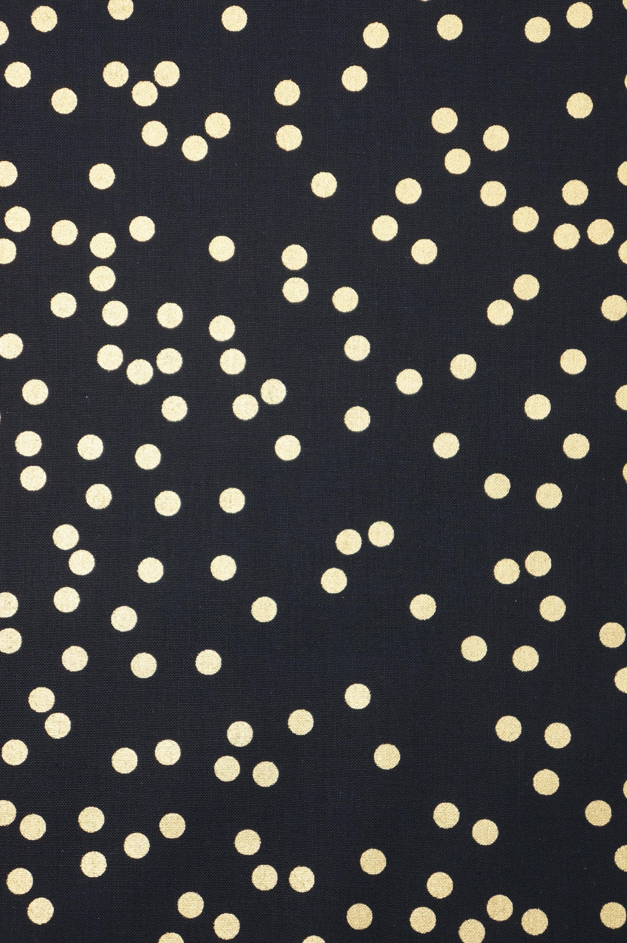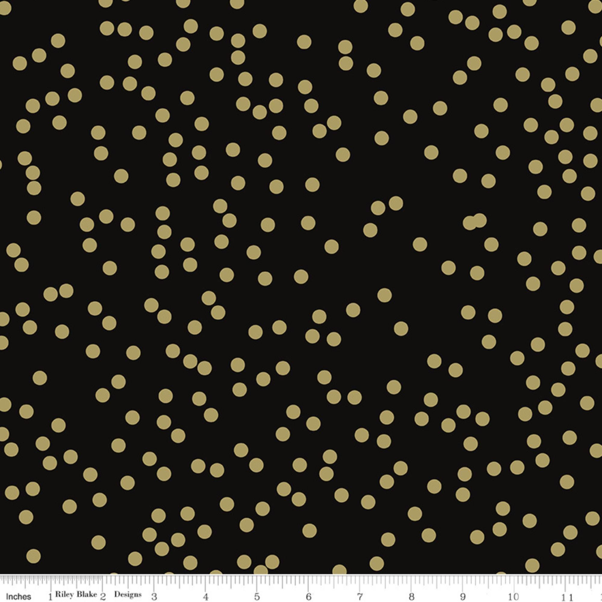 If you're looking for a festive and cheerful blender fabric to brighten up your holiday projects, look no further than the Gold Dots on Black by Riley Blake Designs. This fabric features random gold metallic dots on a bold black background, a perfect blender for quilting projects, sewing, crafting and more. this quilting cotton fabric is made of 100% cotton and has a soft and smooth feel. It's also easy to care for and durable, making it ideal for everyday use. Whether you want to make a cozy quilt, a cute pillow, a festive table runner, or a charming gift, the gold dots on black will add some whimsy and joy to your creations. Order yours today and get ready to celebrate the season with this lovely fabric!