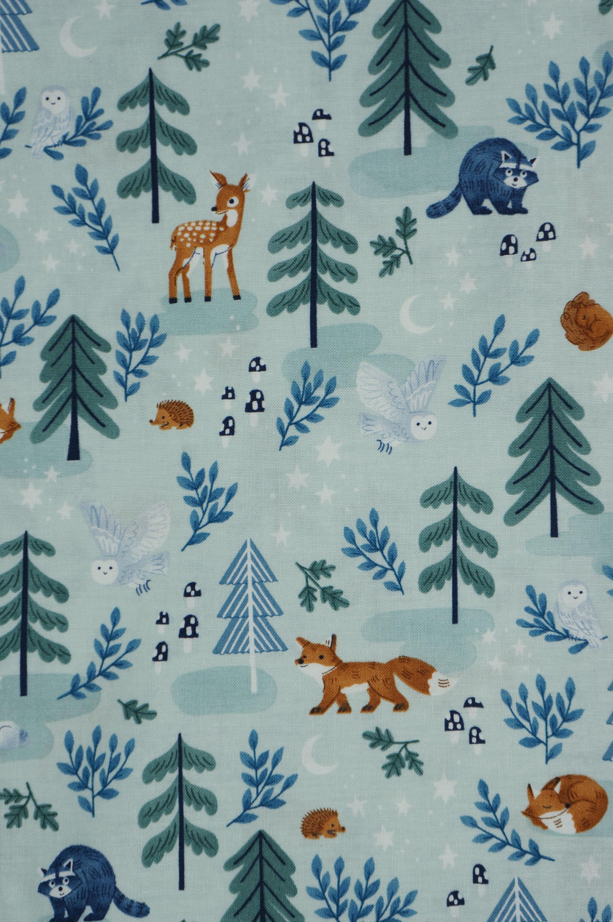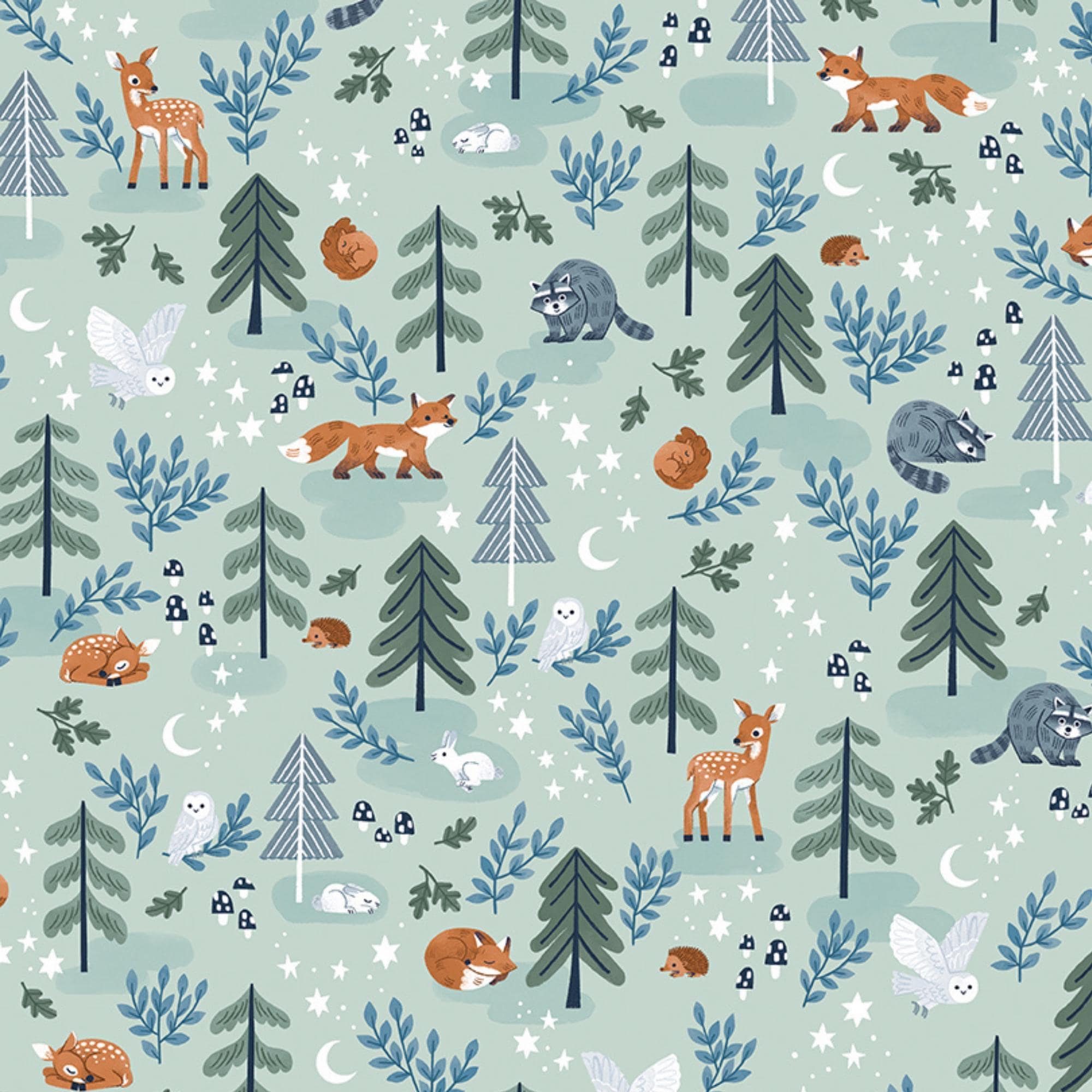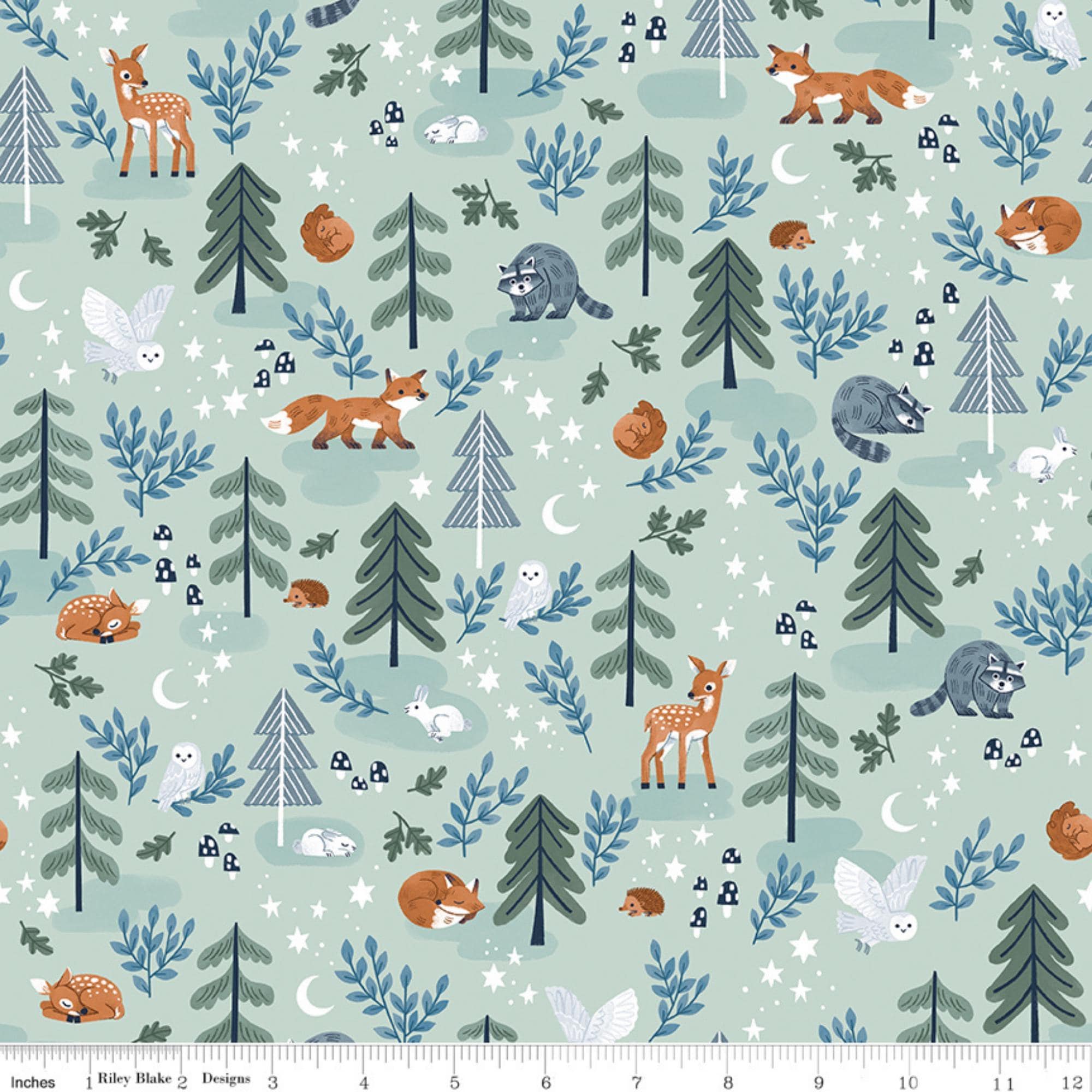 If you love woodland animals and forest adventures, you will adore this fabric from the Twilight Creatures Collection by Natàlia Juan Abelló This fabric features cute and whimsical illustrations of foxes, raccoon, deer, hedgehogs, squirrels, rabbits and owls on a mint green background. The fabric is made of 100% cotton and is perfect for quilting, apparel, home decor, and more. You can create beautiful projects with this fabric that will bring joy and warmth to your home or as a gift. This fabric is made by Riley Blake Designs, which offers high-quality fabrics with vibrant colors and designs. The Twilight Creatures Collection are fabrics that will make you smile and inspire you to create beautiful projects!