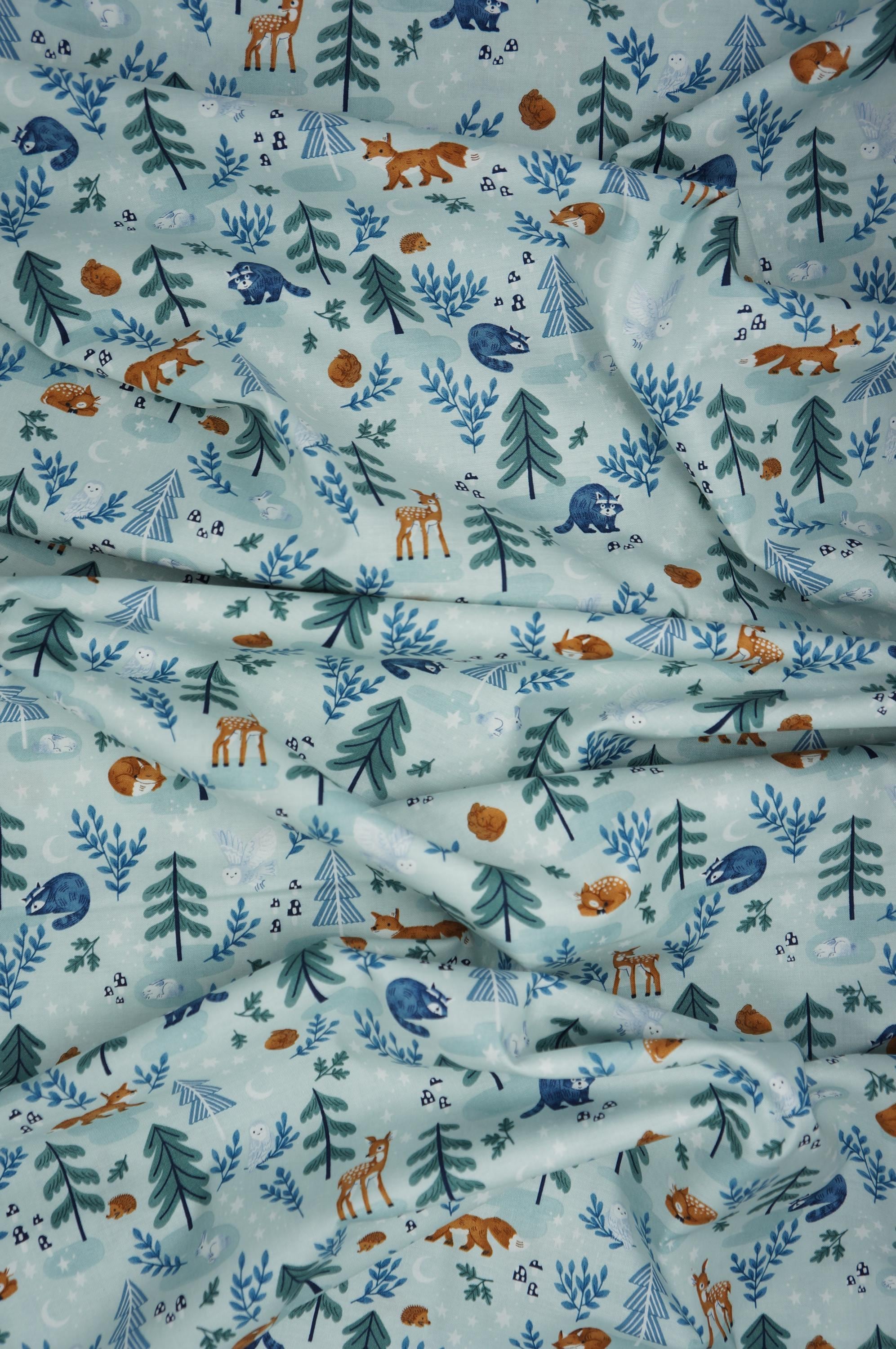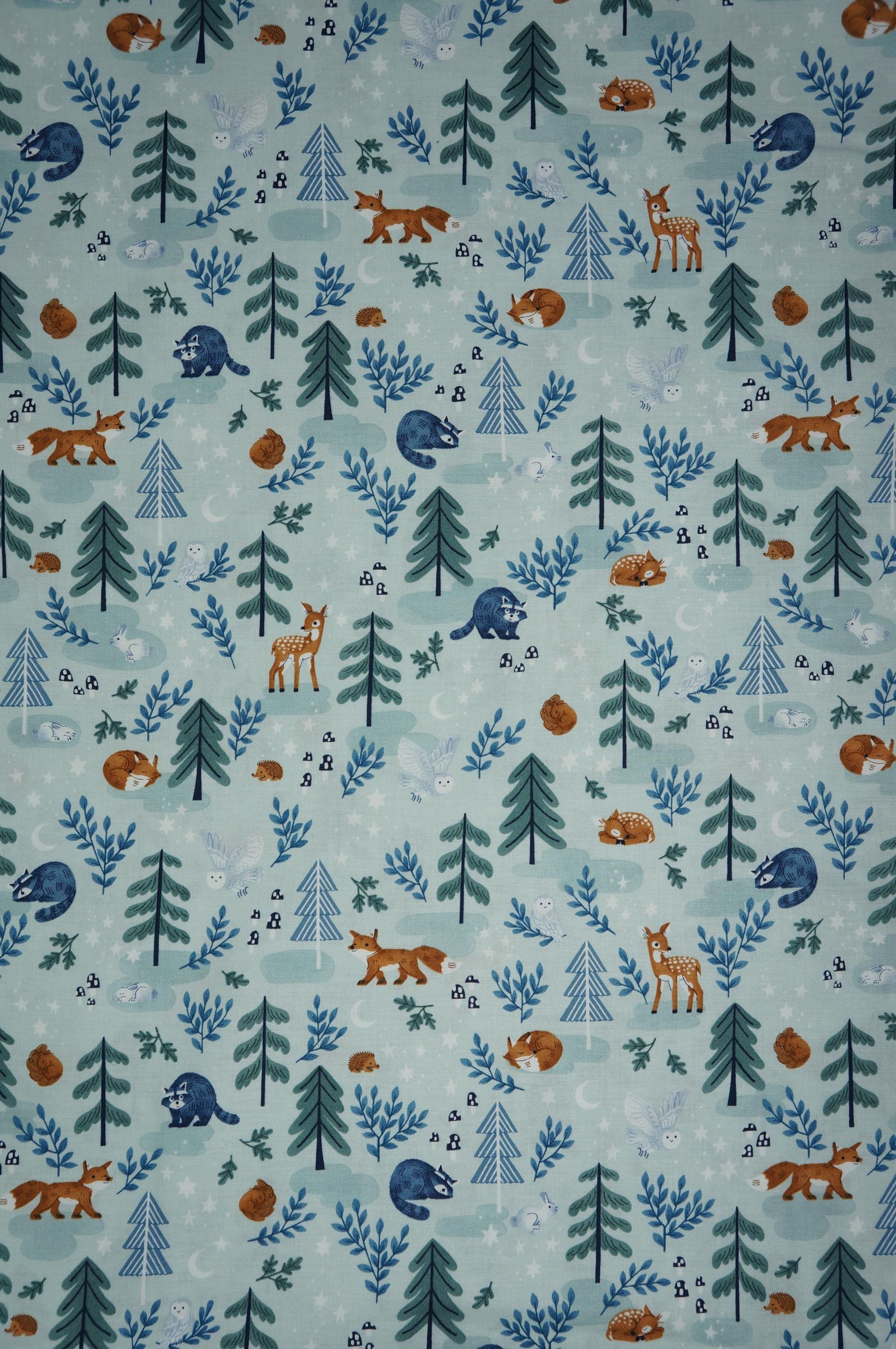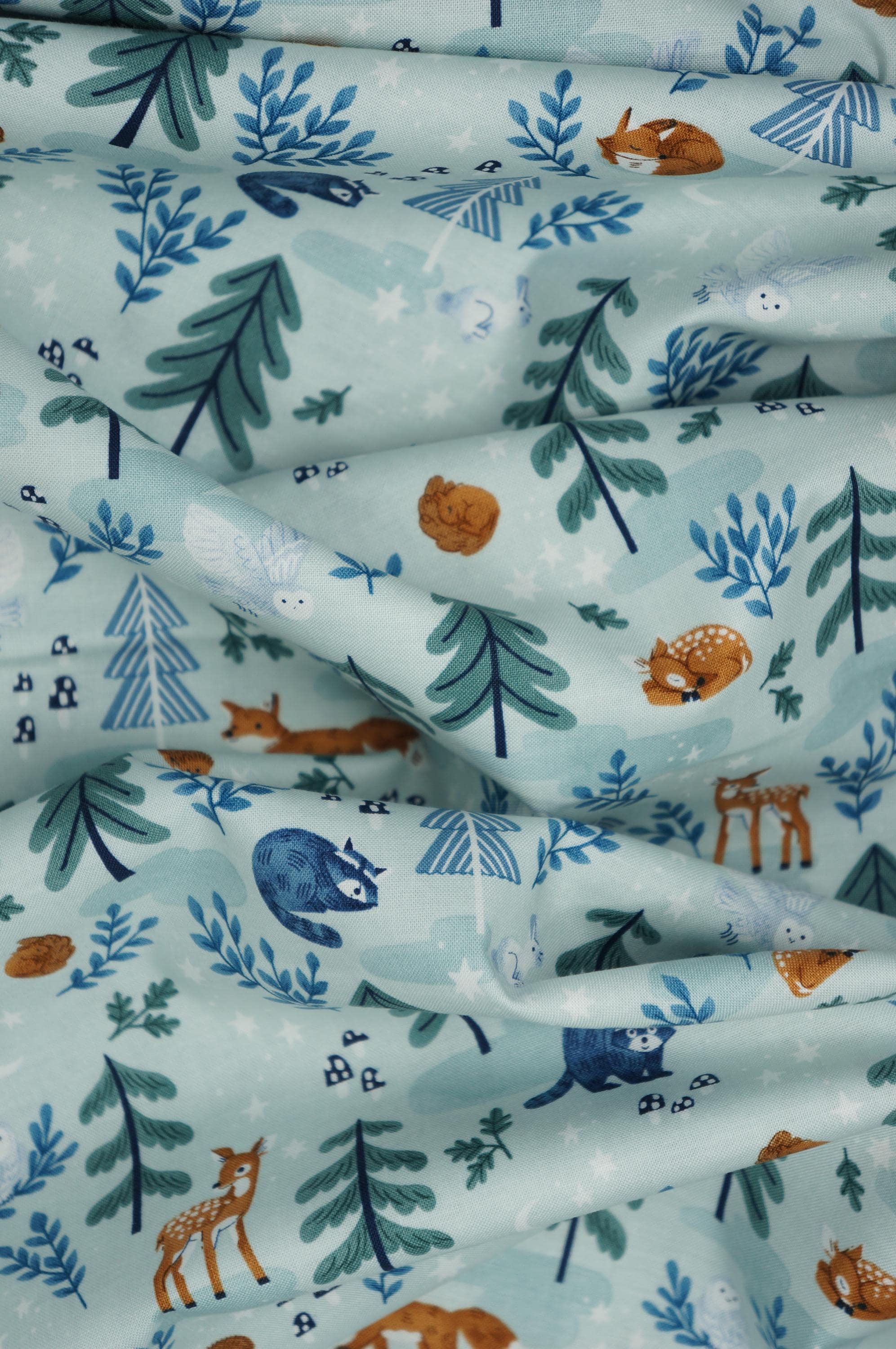 If you love woodland animals and forest adventures, you will adore this fabric from the Twilight Creatures Collection by Natàlia Juan Abelló This fabric features cute and whimsical illustrations of foxes, raccoon, deer, hedgehogs, squirrels, rabbits and owls on a mint green background. The fabric is made of 100% cotton and is perfect for quilting, apparel, home decor, and more. You can create beautiful projects with this fabric that will bring joy and warmth to your home or as a gift. This fabric is made by Riley Blake Designs, which offers high-quality fabrics with vibrant colors and designs. The Twilight Creatures Collection are fabrics that will make you smile and inspire you to create beautiful projects!
