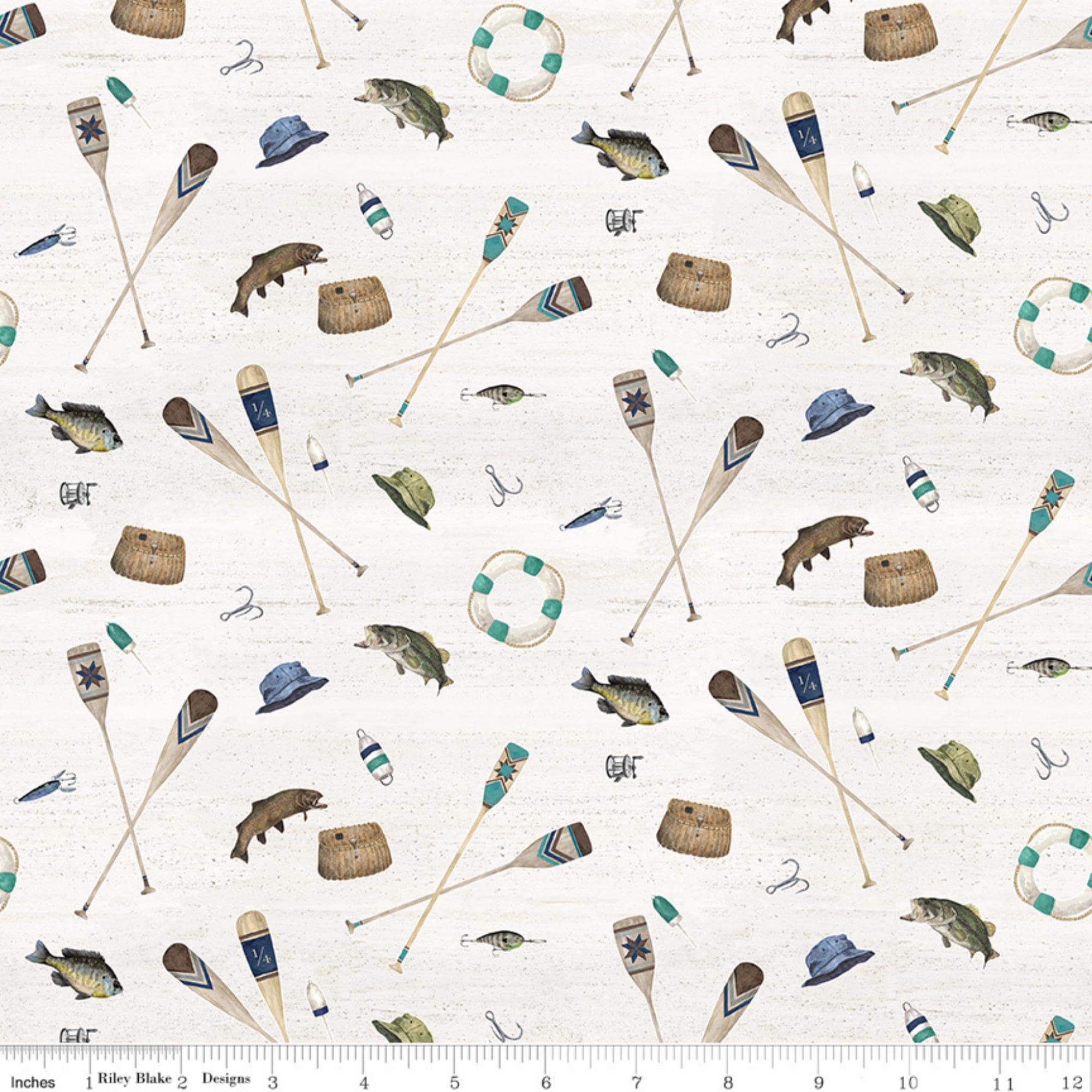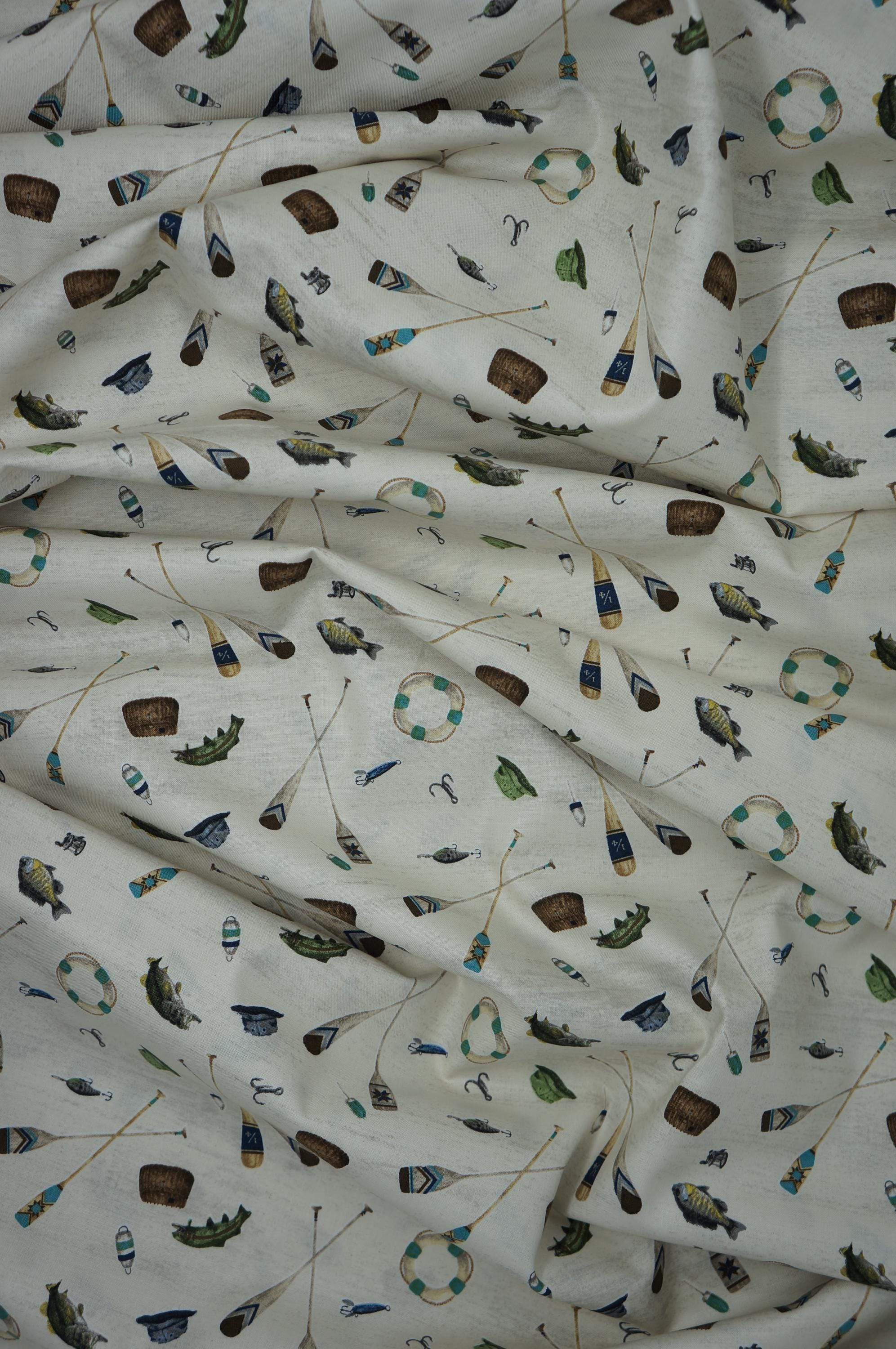 Transform your lake haven into a cozy retreat with our enchanting Parchment Fishing Icons Toss Wake by the Lake Quilting Cotton fabric. Designed by Tara Reed for Riley Blake Designs, this delightful design features a variety of lake fish, canoe paddles, fishing lures, bobbers tossed on a Parchment Beige background in a color palette of blues, teals, browns, and beige. Whether you're stitching up cushions, quilts, or tote bags, this fabric embodies the essence of Lake Life bliss. Dive into creativity and infuse your space with the tranquil vibes of Wake at the Lake, making every day feel like a lake getaway.