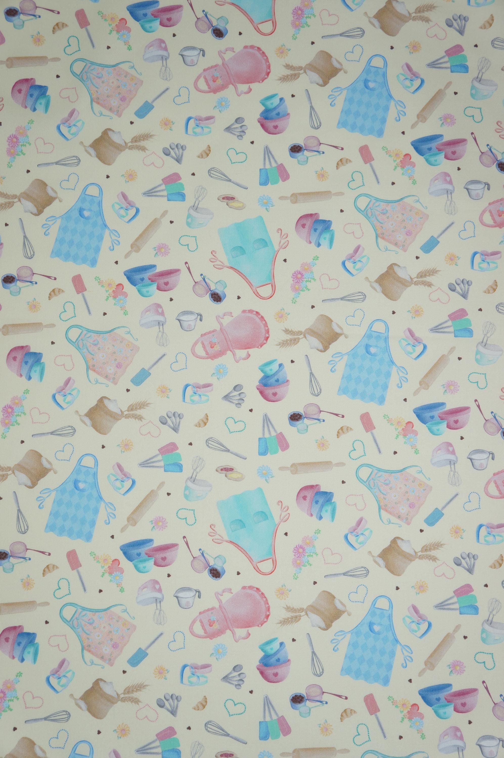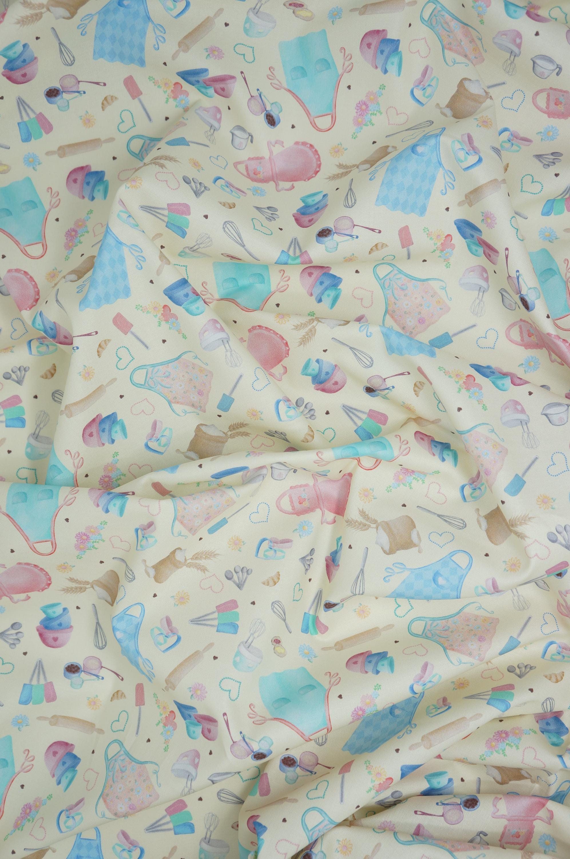 If you love cooking and baking, you will adore this quilting cotton fabric from the Gnomebody Bakes it Better Collection designed by Andi Metz for Kanvas Studio Benartex! It features colorful prints of kitchen utensils, aprons, ingredients, hearts and flowers on a yellow background. This fabric is perfect for making aprons, oven mitts, table runners, placemats, and more. This fabric high quality, 100% cotton, soft, durable, and easy to sew with. Whether you are a professional chef or a home cook, you will find endless ways to use this cooking and baking fabric in your projects.