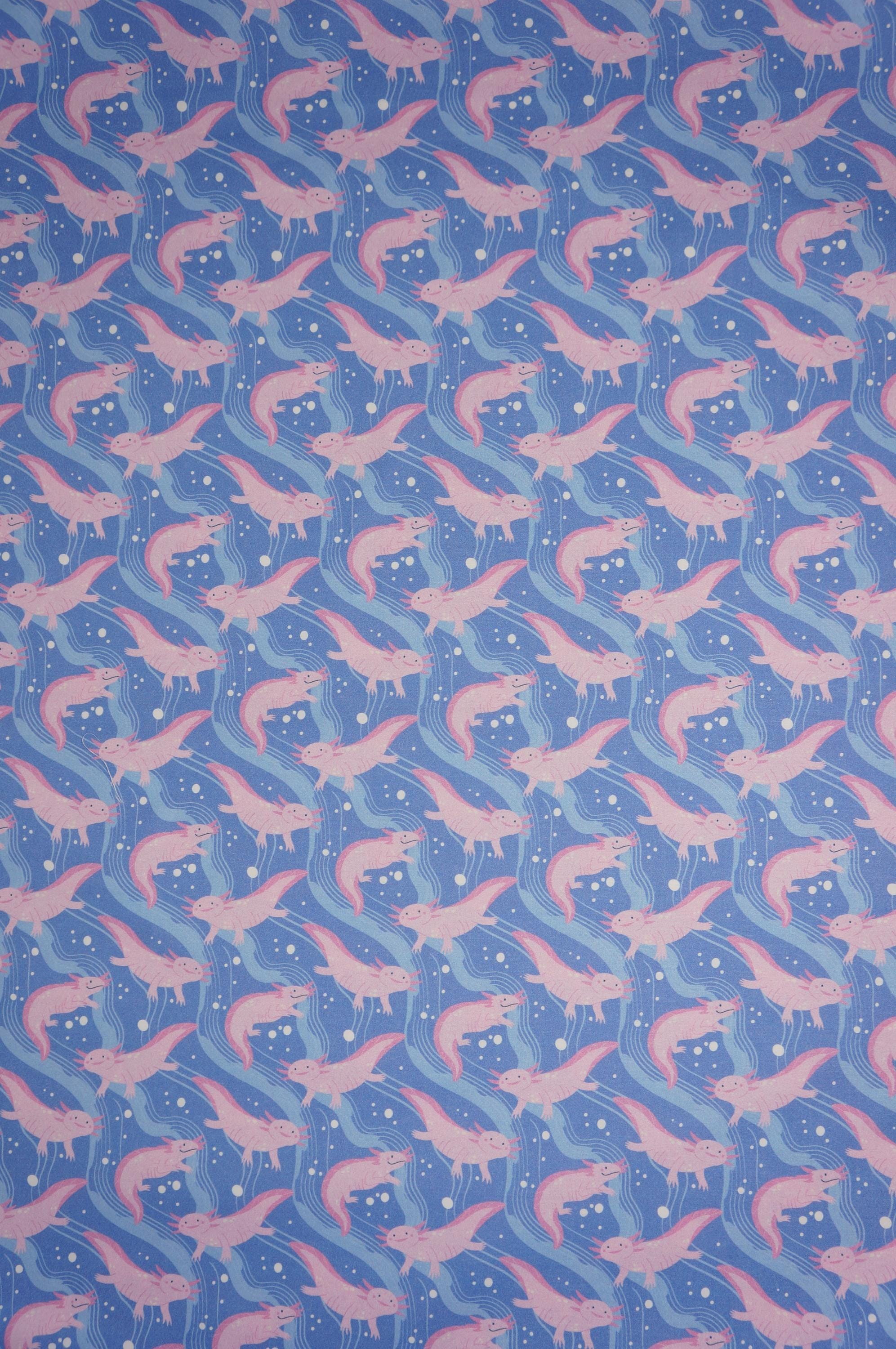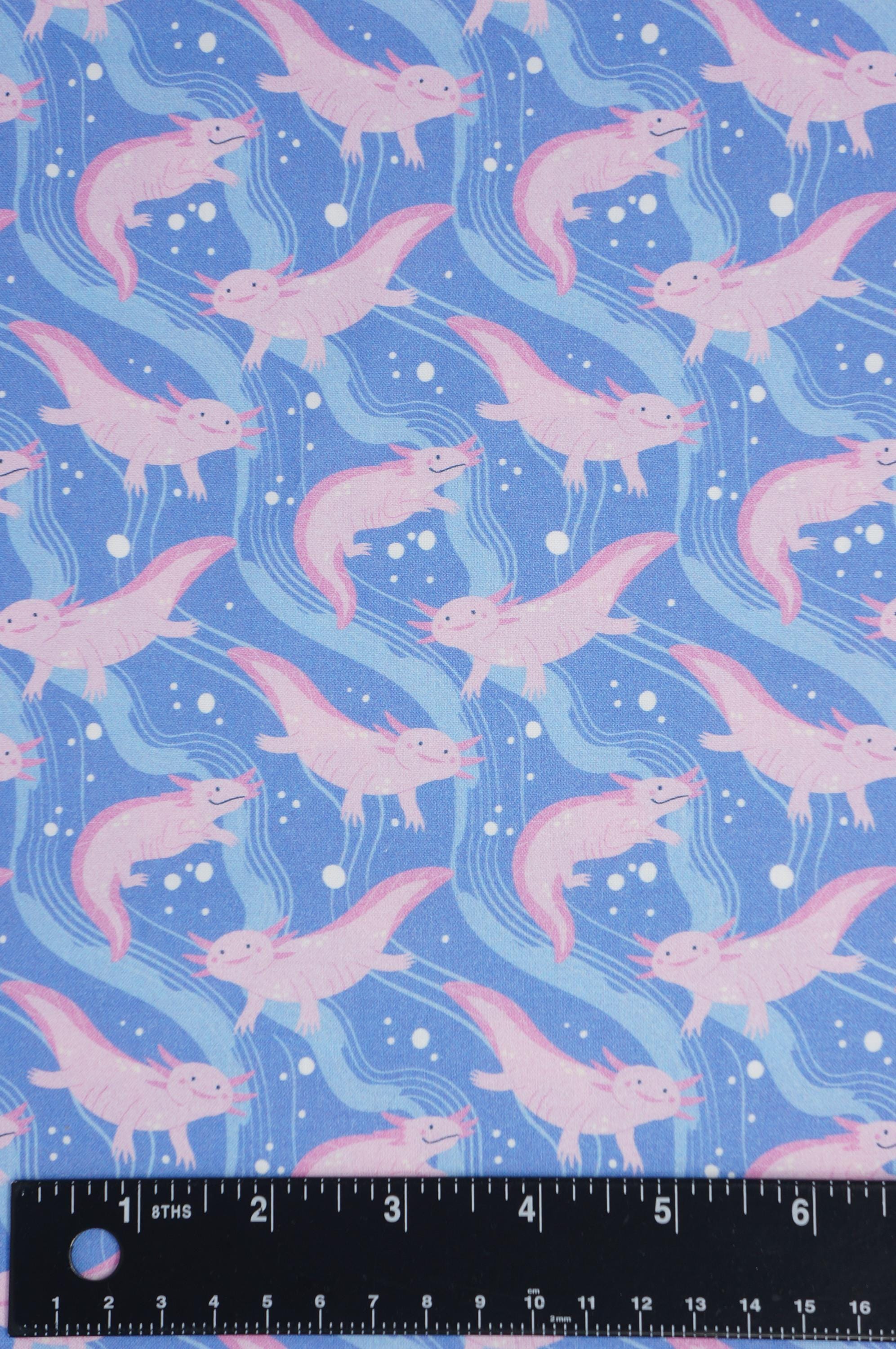 Introducing the Cute Axolotl Salamanders—a delightful creation by the designers at Paintbrush Studios Cotton. Cute Pink Axolotl Salamanders are swimming across a purplish blue background, bringing whimsy and charm to your sewing projects. The digitally printed design bursts with vibrant colors and is made in the USA. Whether you’re crafting quilts, apparel, or home decor, this fabric promises to elevate your creations to a whole new level of cuteness! So, dive into the world of axolotls, where imagination meets craftsmanship. Let your creativity flourish with this enchanting fabric—it’s time to stitch magic!