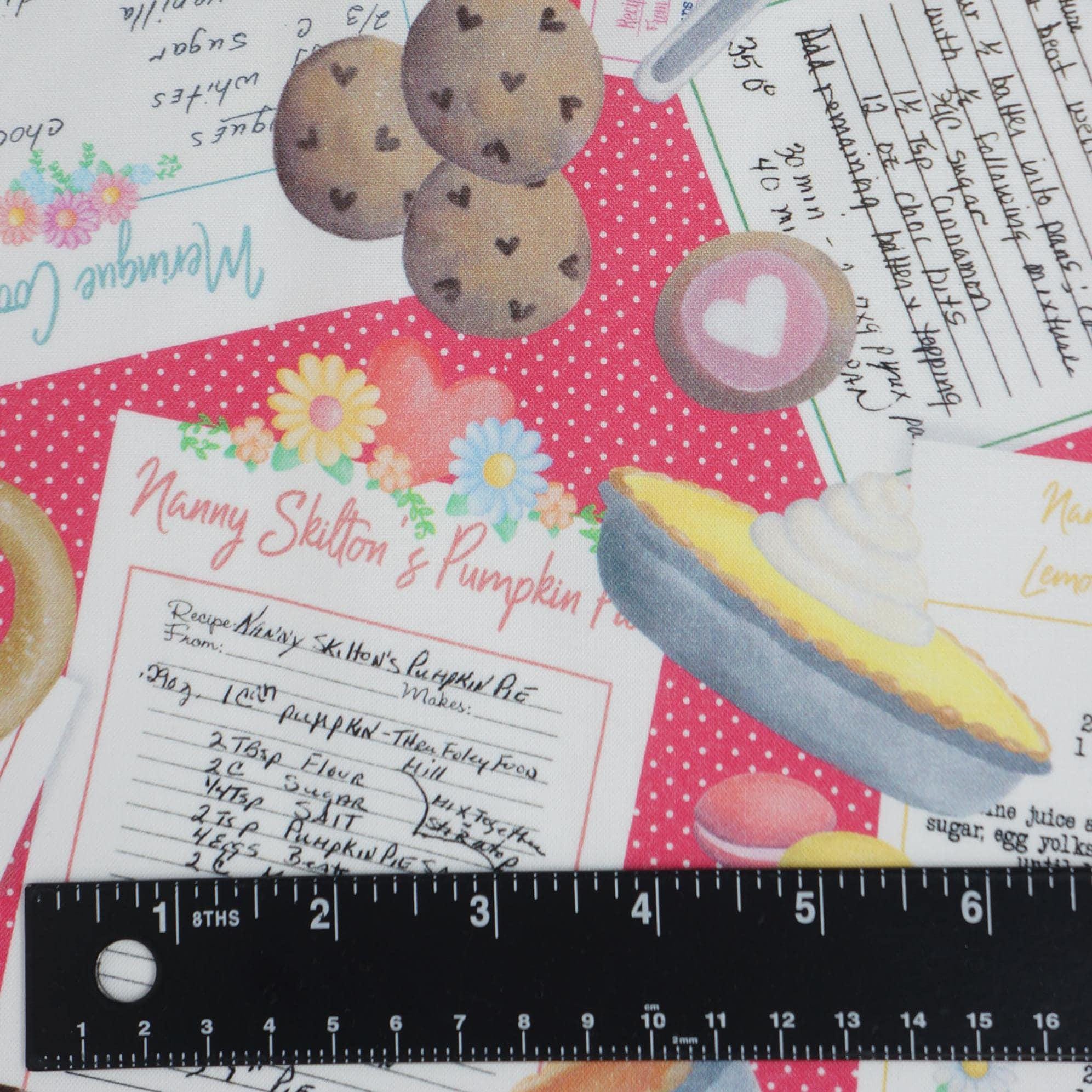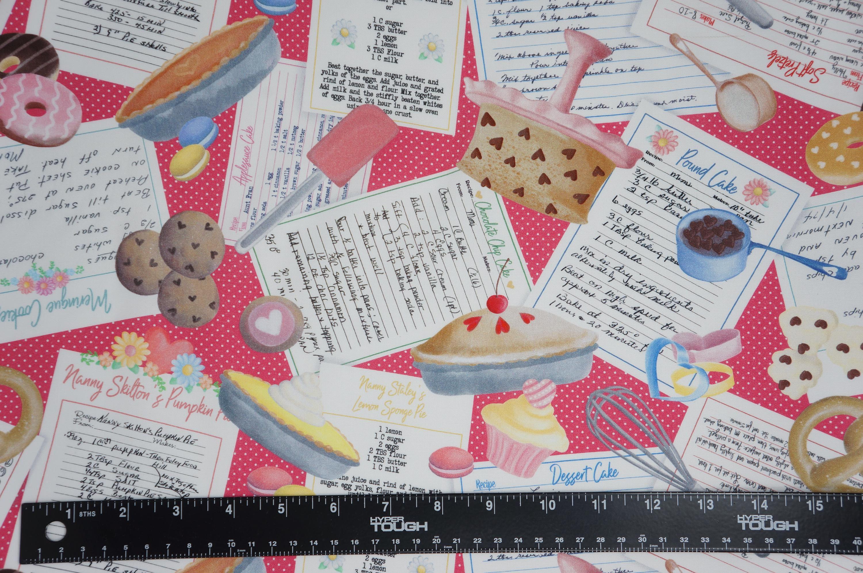 If you love cooking and baking, you will adore this quilting cotton fabric from the Gnomebody Bakes it Better Collection designed by Andi Metz for Kanvas Studio Benartex! It features colorful recipes from Nana, baked goods and kitchen utensils on a white polka dot pink background. This fabric is perfect for making aprons, oven mitts, table runners, placemats, and more. This fabric high quality, 100% cotton, soft, durable, and easy to sew with. Whether you are a professional chef or a home cook, you will find endless ways to use this cooking and baking fabric in your projects.