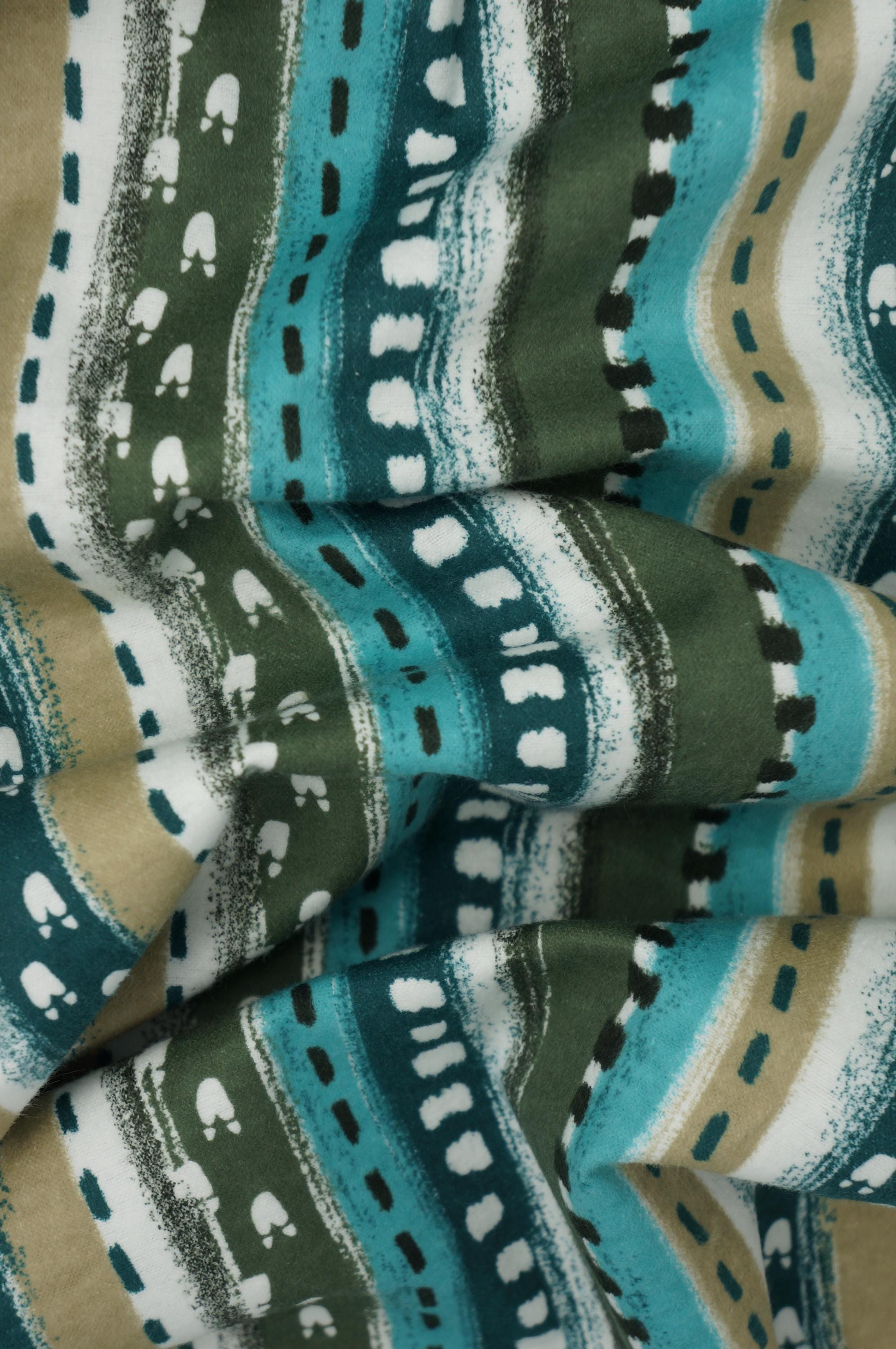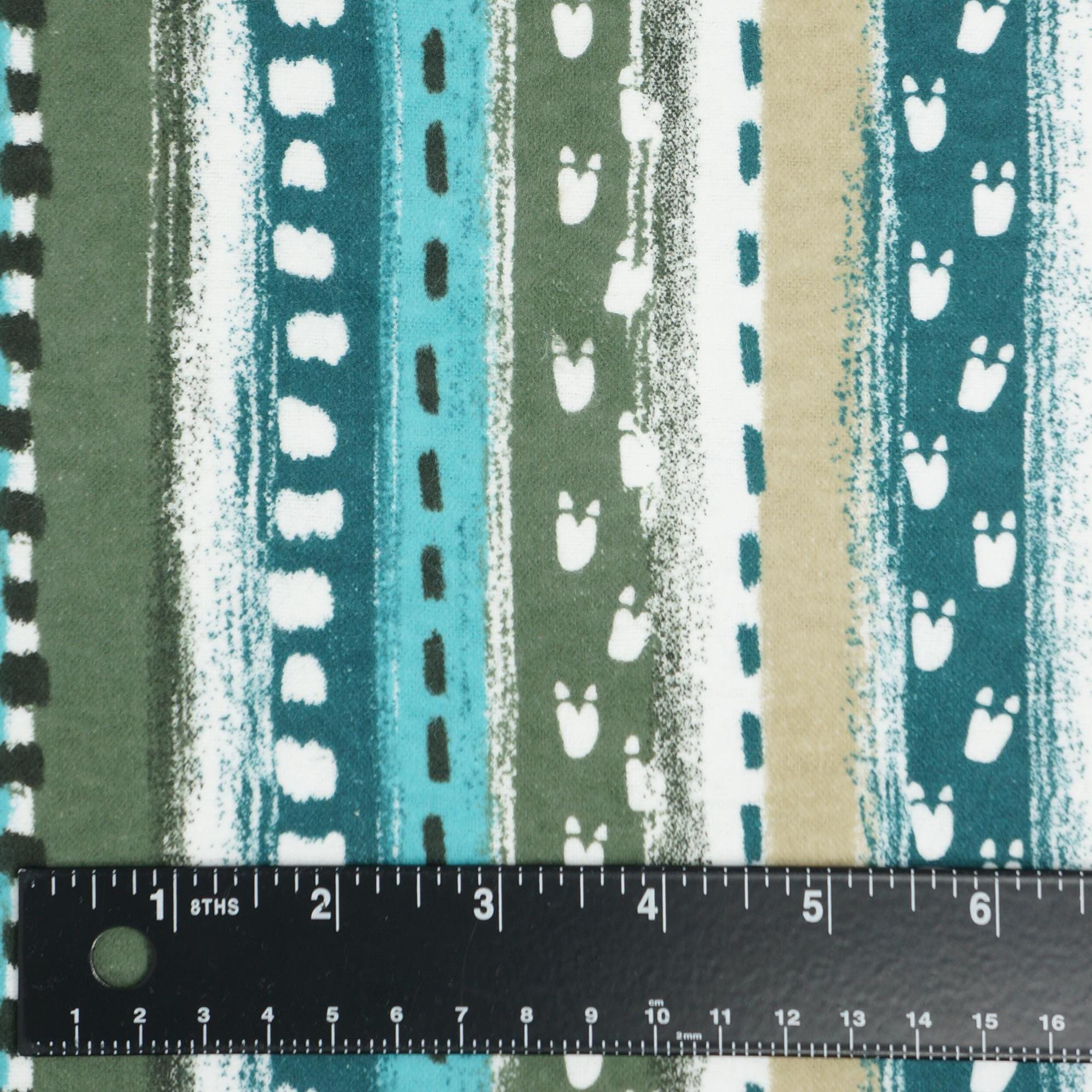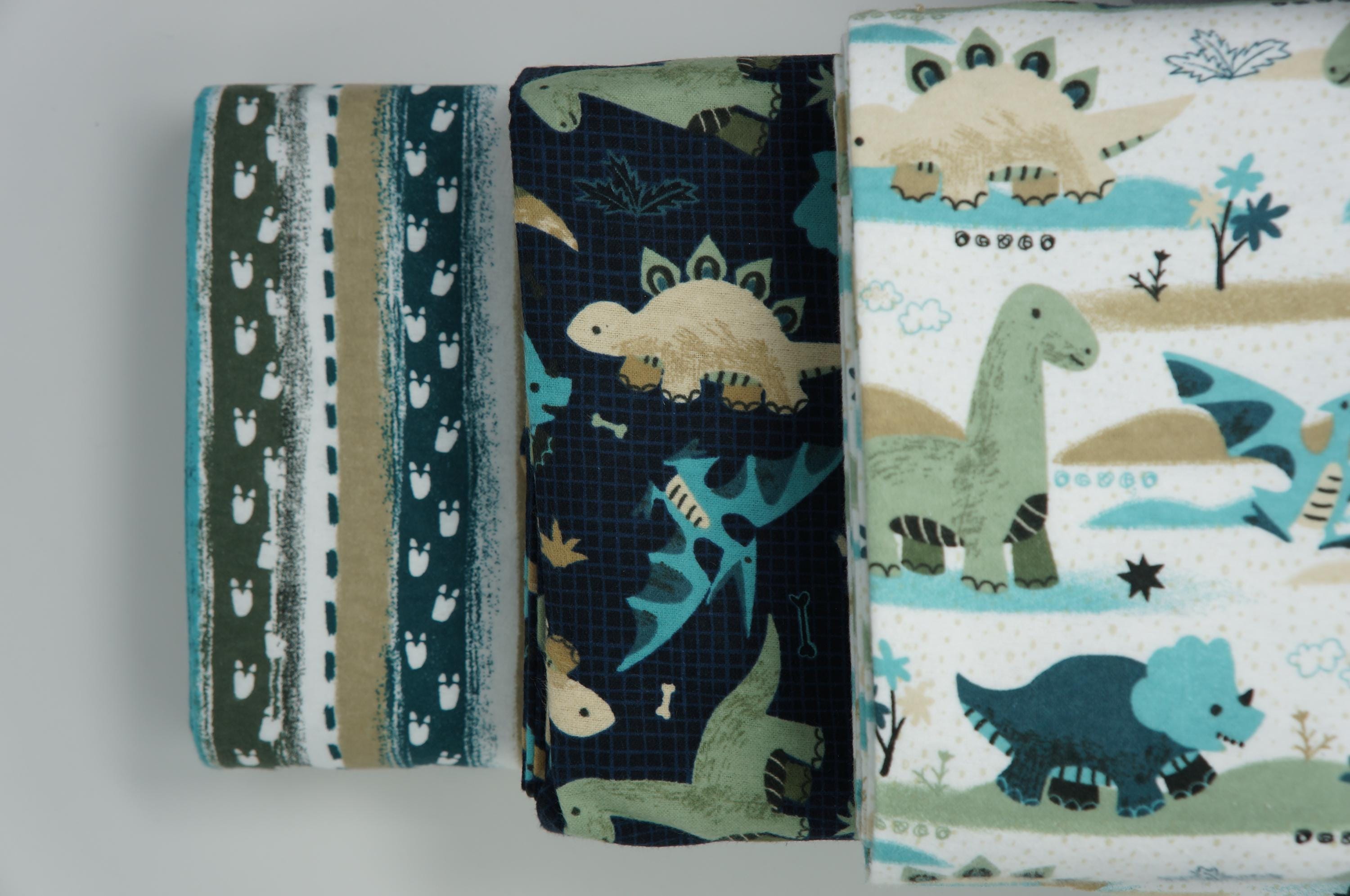 If you love dinosaurs and flannel, you'll adore this fabric! Going Dino Stripe Flannel Fabric by David Textiles is a fun and cozy novelty cotton flannel fabric that features dinosaur tracks on green, white and tan stripes. The stripes run the length of the fabric, horizontal to the selvedge. This fabric is perfect for swaddles, burp rags, reusable paper towels, reusable wipes, baby blankets or baby bibs. It's soft, snuggly and baby-friendly. Order yours today and make something roar-some!