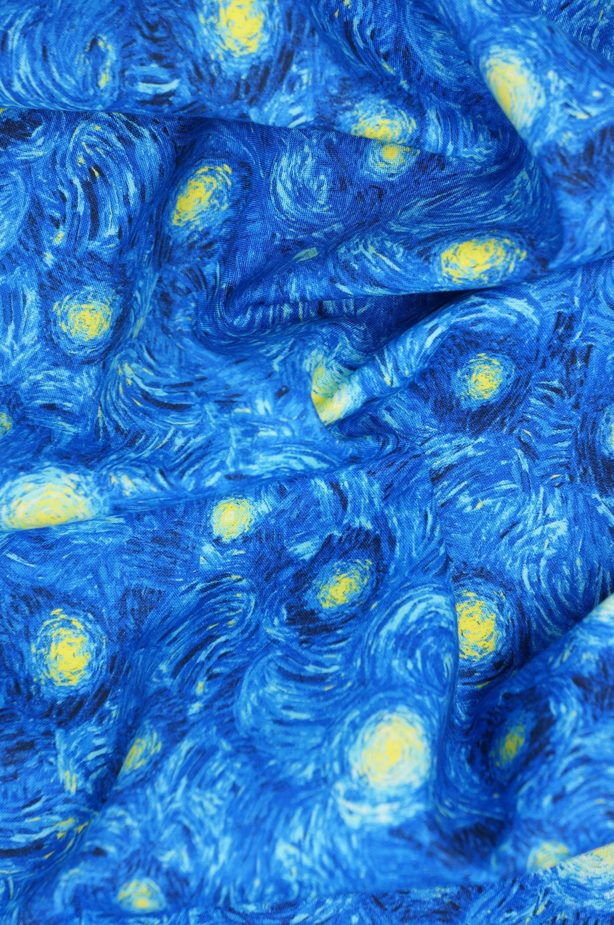If you love the night sky, you will adore this Starry Night inspired fabric by Timeless Treasures from the Poppy Dreams Collection! This beautiful fabric features a painted textured night sky scene digitally printed on 100% high quality quilting cotton. It is perfect for quilting, crafting, or decorating a celestial nursery. You can create stunning projects with this fabric that will shine like the moonlight. Don't miss this chance to get this amazing fabric from Timeless Treasures!