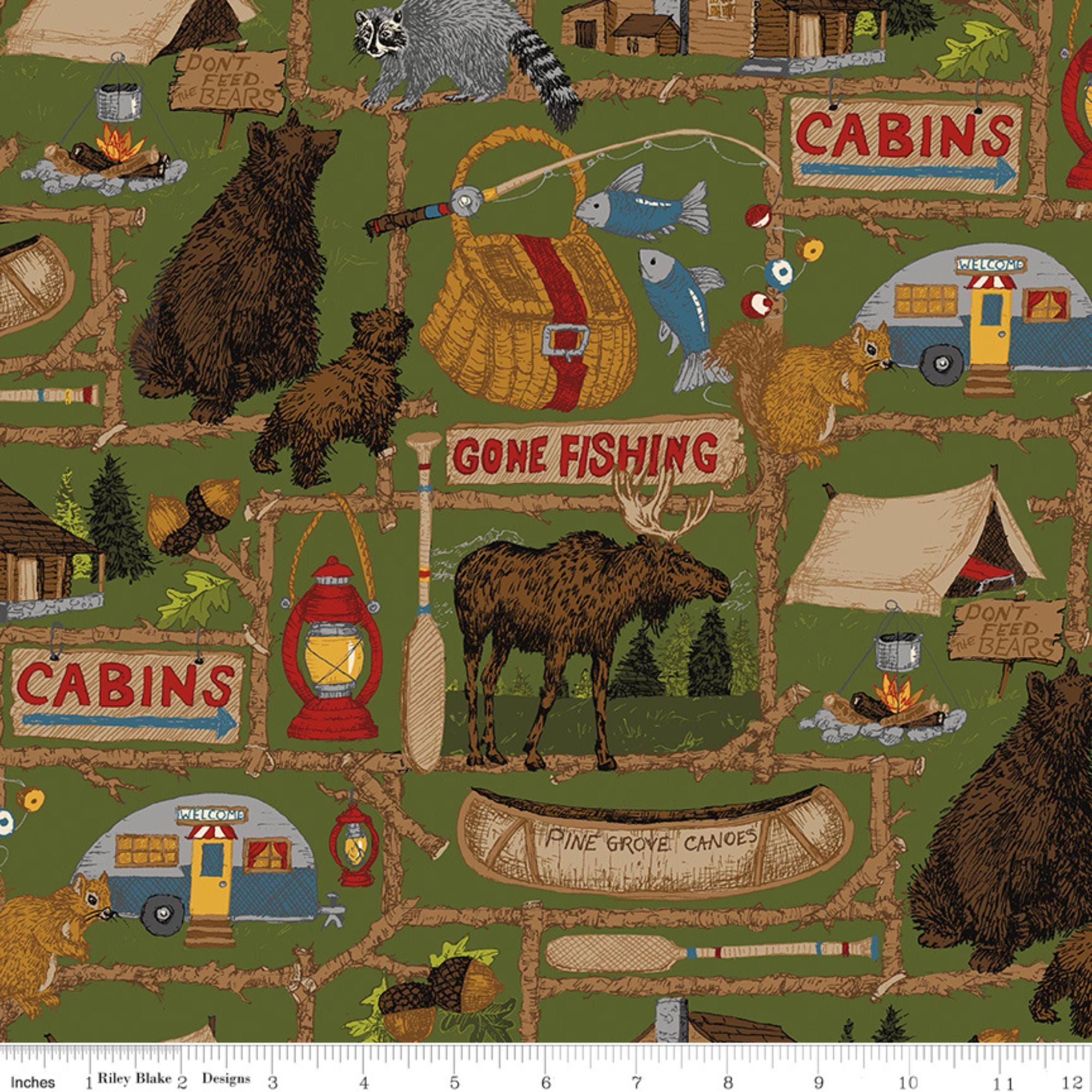 If you love camping and woodland animals, you'll adore this print from the Pine Grove Collection by Riley Blake Designs! It features outdoor-themed text and icons, such as moose, tents, bears, canoes, lanterns, cabins, racoons, and more on a putty cream background. This high-quality fabric is made of 100% cotton and is perfect for quilting, crafts, home decor, nurseries and more. You'll have so much fun creating projects with this whimsical and charming fabric. Order yours today and get ready for some woodland camping adventures!