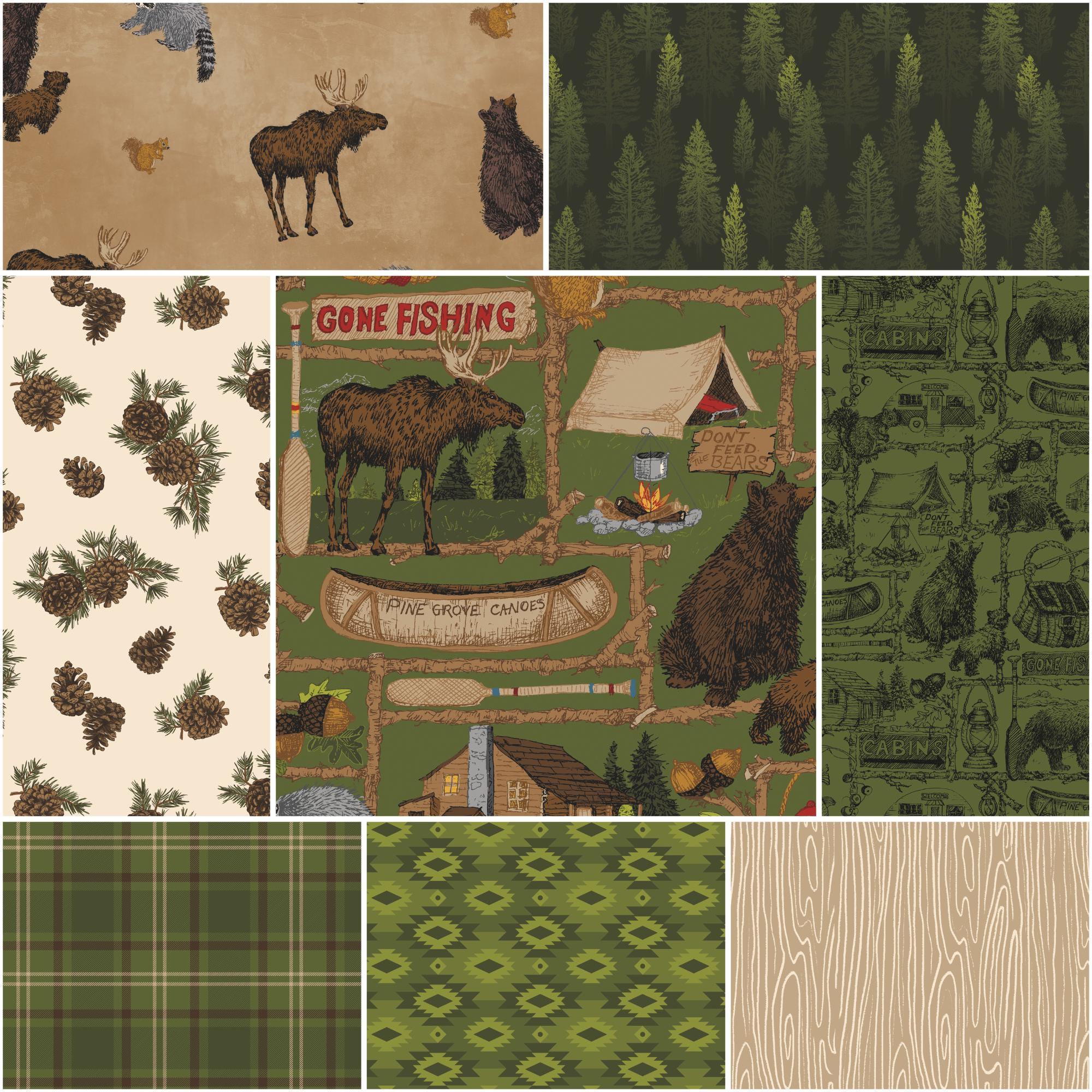 If you love camping and woodland animals, you'll adore these 10" or 5" quilting squares from the Pine Grove Collection by Riley Blake Designs! It features outdoor-themed text and icons, such as moose, tents, bears, canoes, lanterns, cabins, racoons, and more on a color palette of greens, cream and browns. This high-quality fabric is made of 100% cotton and is perfect for quilting, crafts, home decor, nurseries and more. You'll have so much fun creating projects with this whimsical and charming fabric. Order yours today and get ready for some woodland camping adventures!