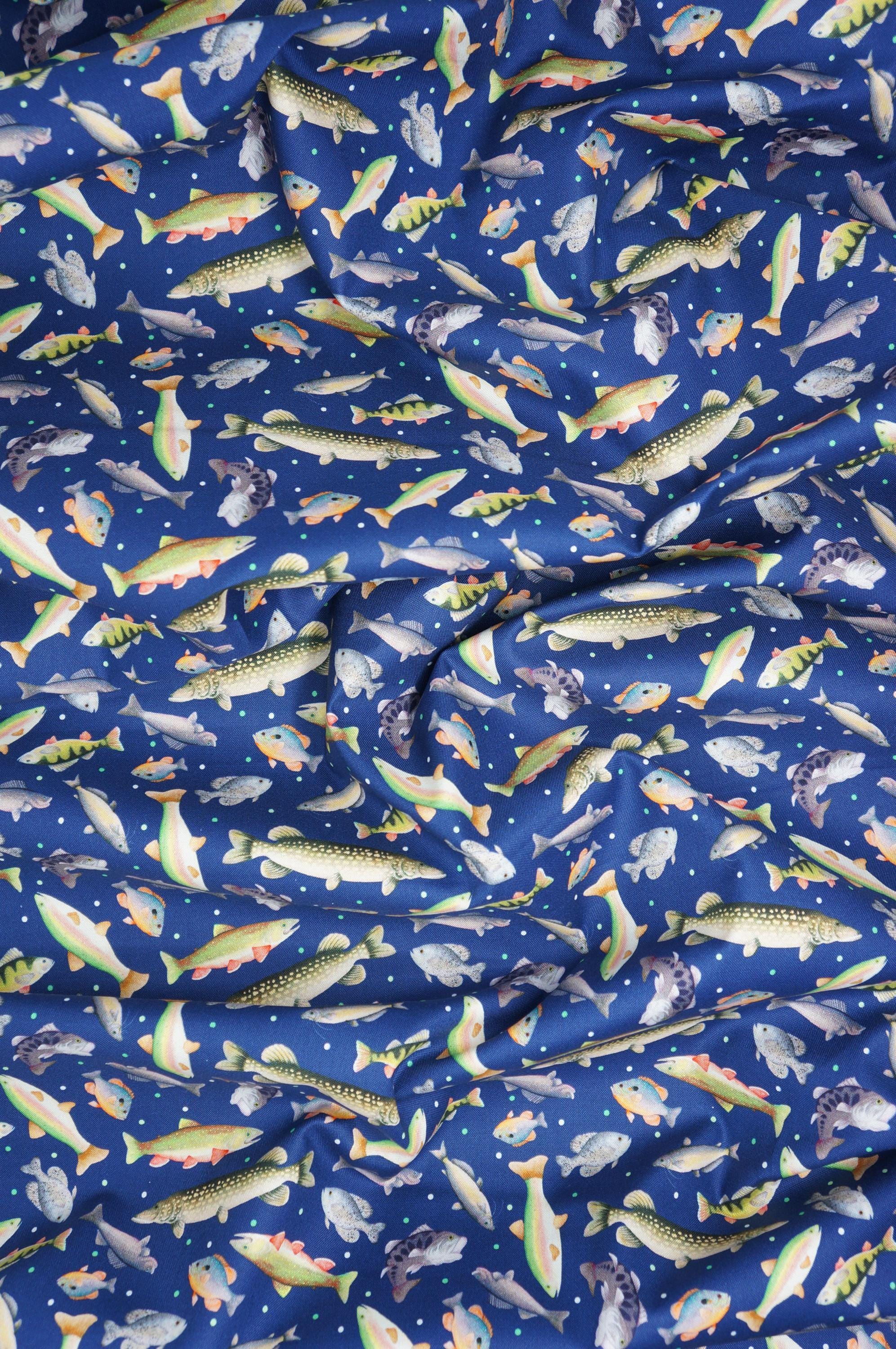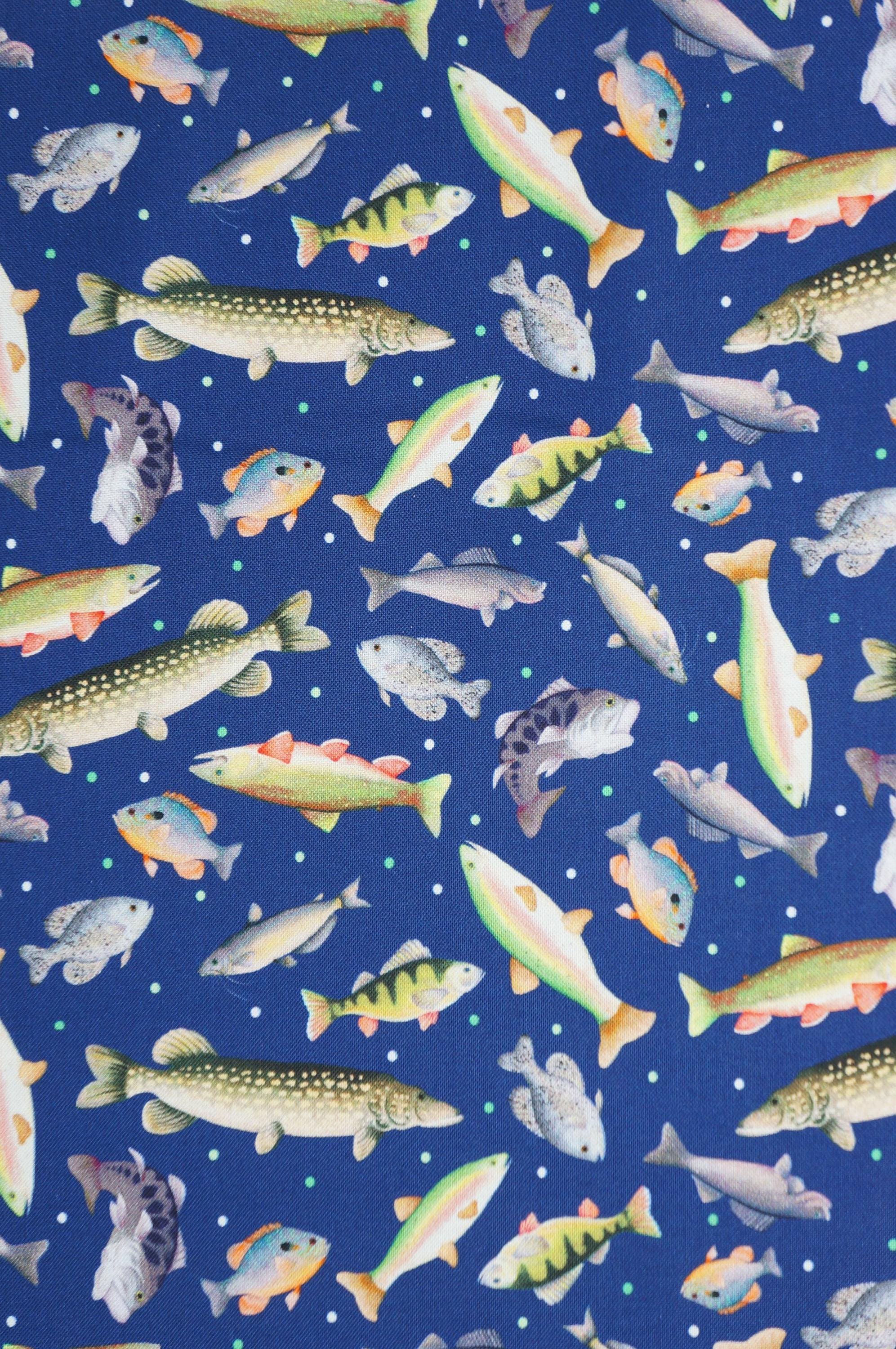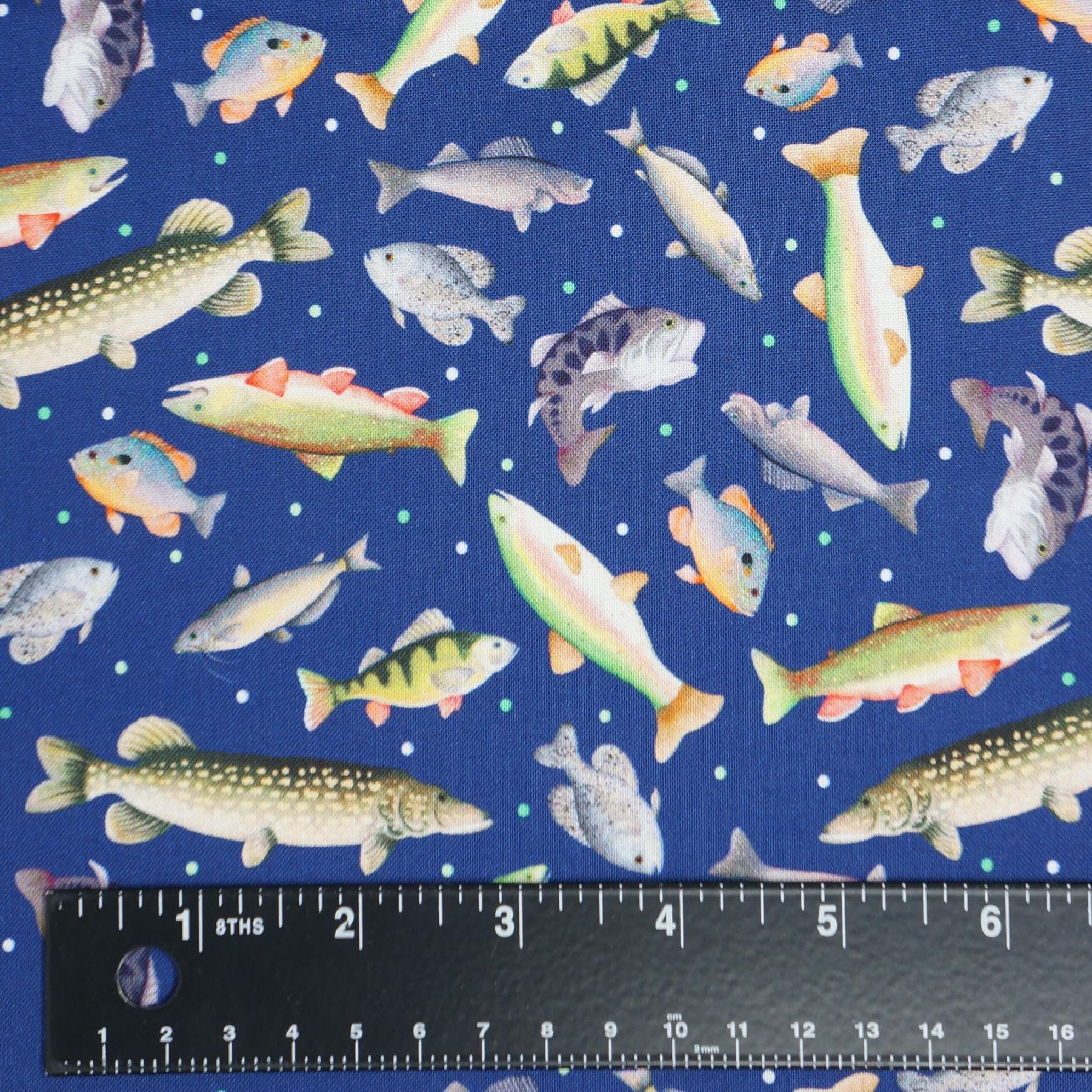 Transform your lake haven into a cozy retreat with our enchanting Navy Fish Toss Sail Away Quilting Cotton fabric. Designed by Andi Metz for Benartex Kanvas Studio, this delightful design features a variety of lake fish tossed on a navy-blue background. Whether you're stitching up cushions, quilts, or tote bags, this fabric embodies the essence of Lake Life bliss. Dive into creativity and infuse your space with the tranquil vibes of Sail Away, making every day feel like a lake getaway.