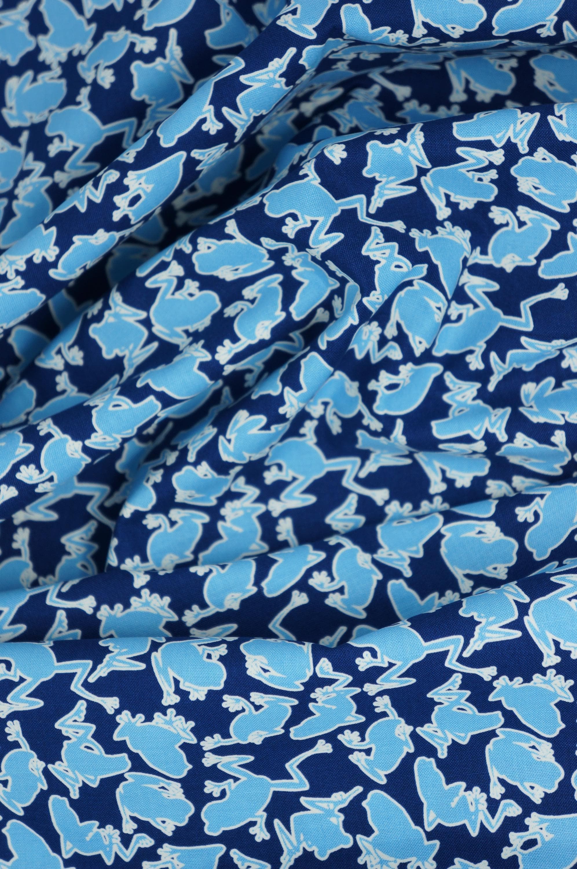Introducing the Camo Frogs Glow from the Rainforest Glow Collection—a delightful glow in the dark creation by the talented Kanvas Studio for Benartex Quilting Cotton Fabric. Outlines of rainforest tree frogs in light turquoise blue tossed across a royal blue background, bringing whimsy and charm to your sewing projects. The screen-printed design bursts with vibrant colors. Whether you’re crafting quilts, apparel, or home decor, this fabric promises to elevate your creations to a whole new level of cuteness! Made of high quality 100% quilting this fabric strikes the perfect balance between durability and comfort. So, dive into the world of frogs, where imagination meets craftsmanship. Let your creativity flourish with this enchanting fabric—it’s time to stitch magic!
