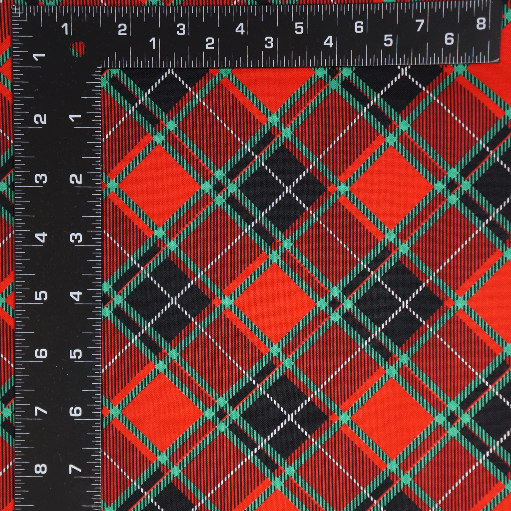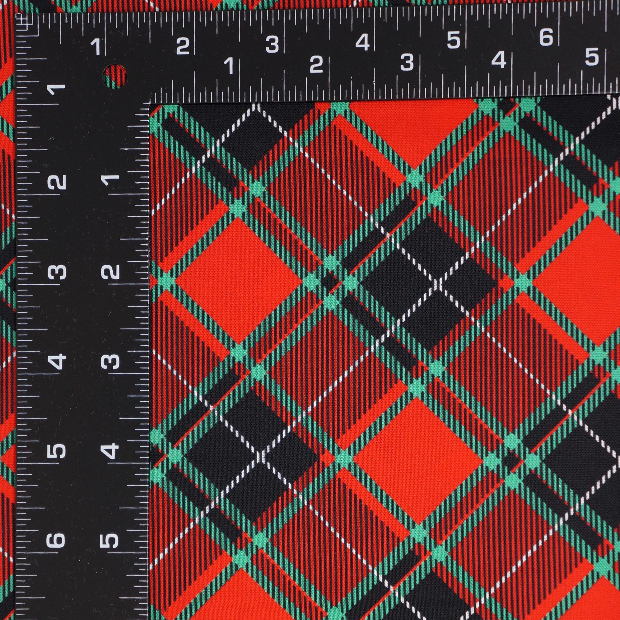 Get ready to infuse your holiday projects with festive flair with this Christmas Bias Plaid quilting cotton fabric designed by Nicole DeCamp's Sugar and Spice Collection by Benartex Kanvas Studio! Bursting with colors of red, green, and black, this screen-printed fabric exudes the timeless charm of classic Christmas plaid. The plaid crafted from 100% high quality quilting cotton, it offers both durability and comfort, making it perfect for a myriad of DIY projects including quilts, stockings, table runners, and more. Let your creativity run wild as you bring the spirit of the season to life with this delightful fabric. Whether you're a seasoned quilter or a crafting enthusiast, this Christmas plaid fabric is sure to add a touch of holiday magic to your creations!