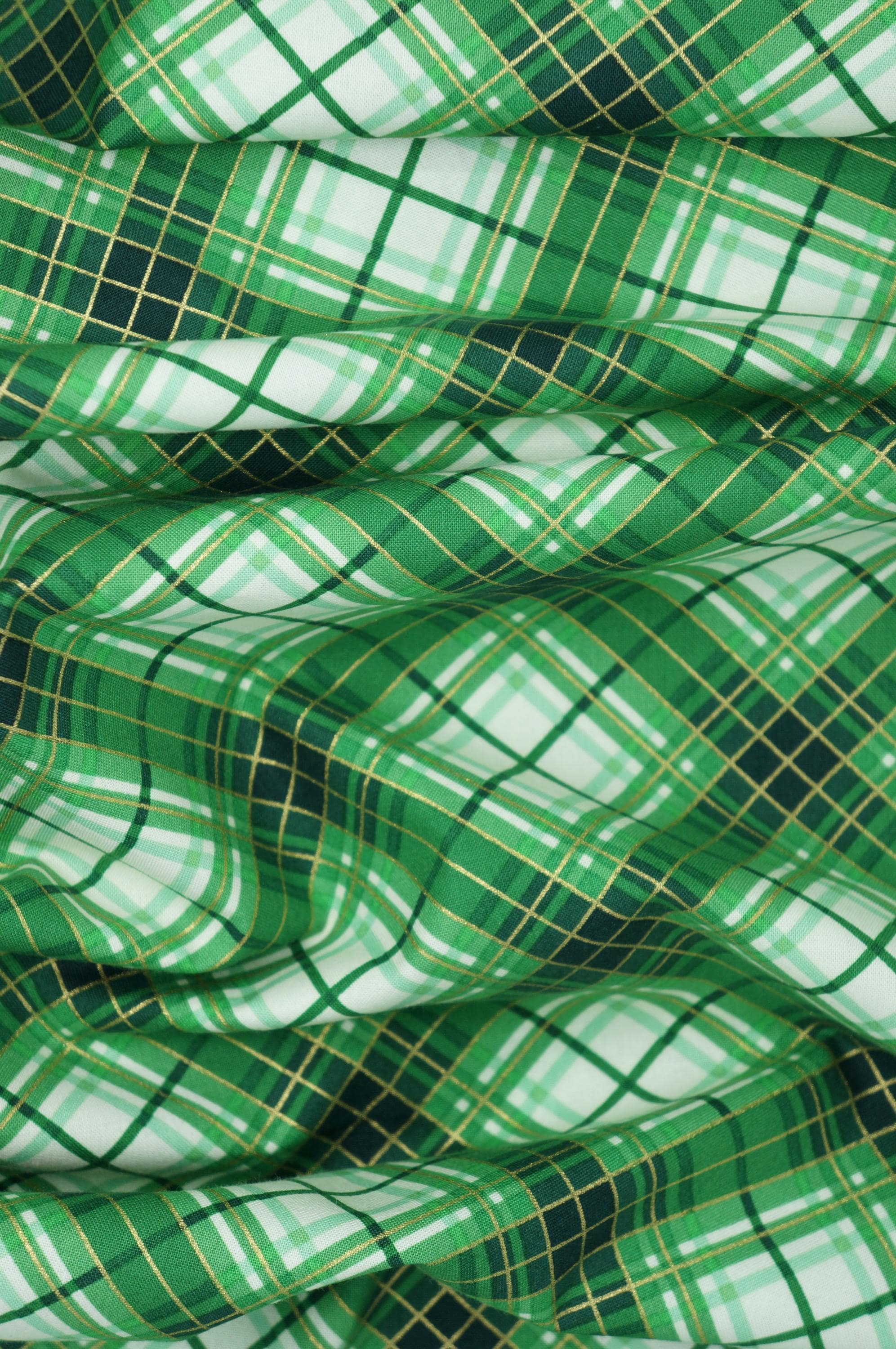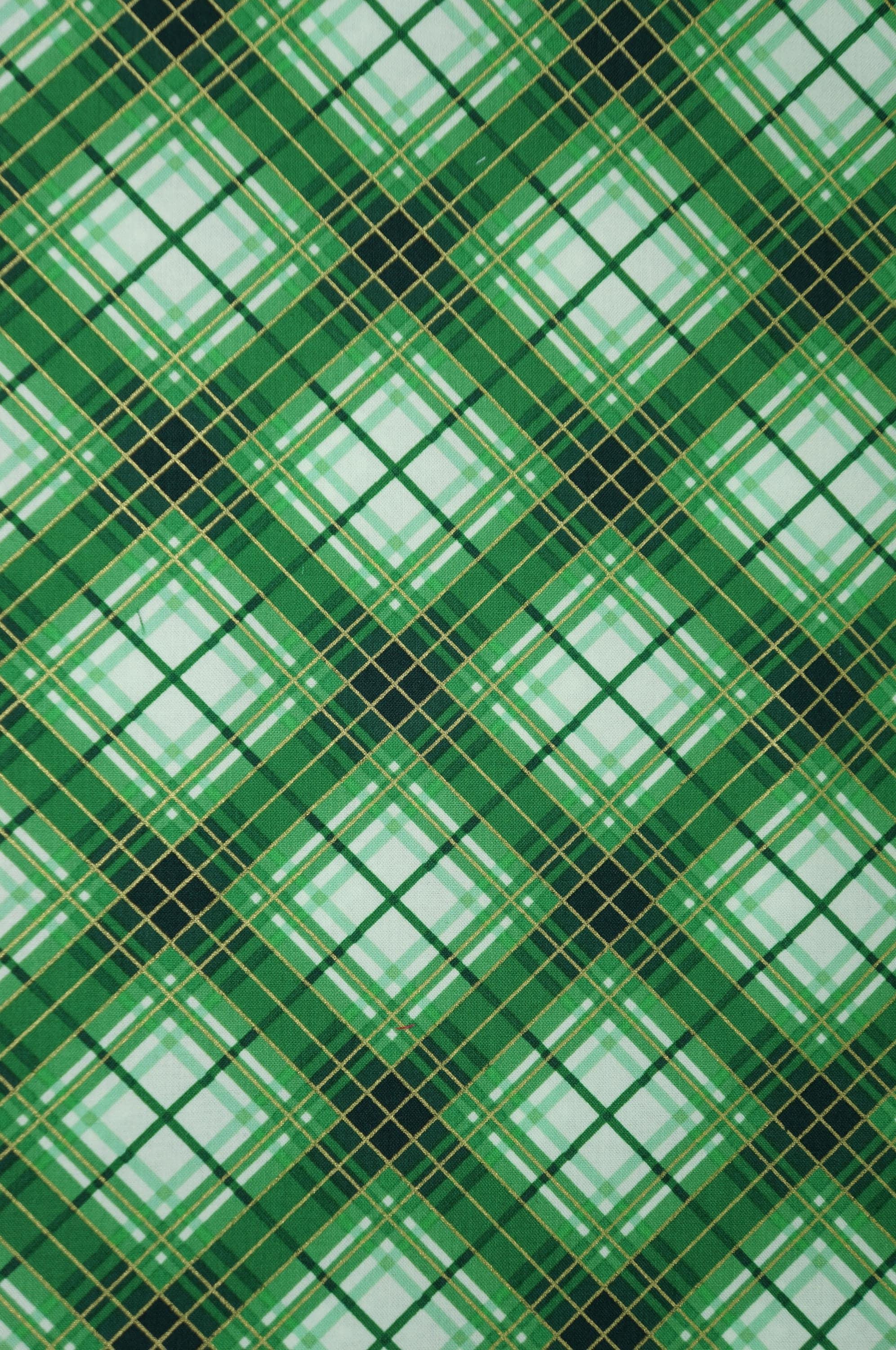 Get ready to infuse your holiday projects with festive flair with this Green Christmas Bias Plaid with gold metallic accents quilting cotton fabric designed by Kanvas Studio for the Christmas Musical Collection by Benartex! Bursting with colors of green, black, cream and metallic gold this screen-printed fabric exudes the timeless charm of classic Christmas plaid. The plaid crafted from 100% high quality quilting cotton, it offers both durability and comfort, making it perfect for a myriad of DIY projects including quilts, stockings, table runners, and more. Let your creativity run wild as you bring the spirit of the season to life with this delightful fabric. Whether you're a seasoned quilter or a crafting enthusiast, this Christmas plaid fabric is sure to add a touch of holiday magic to your creations!